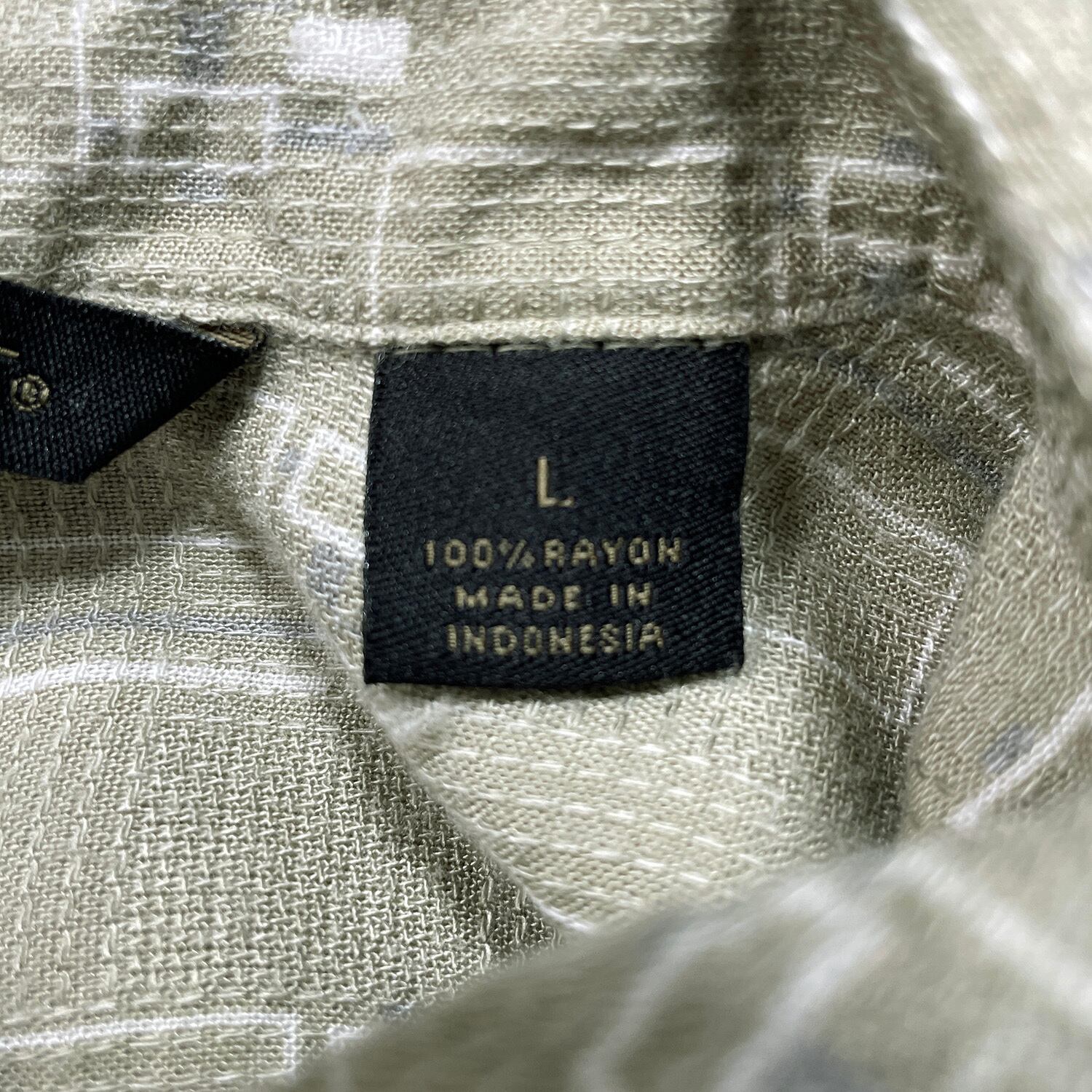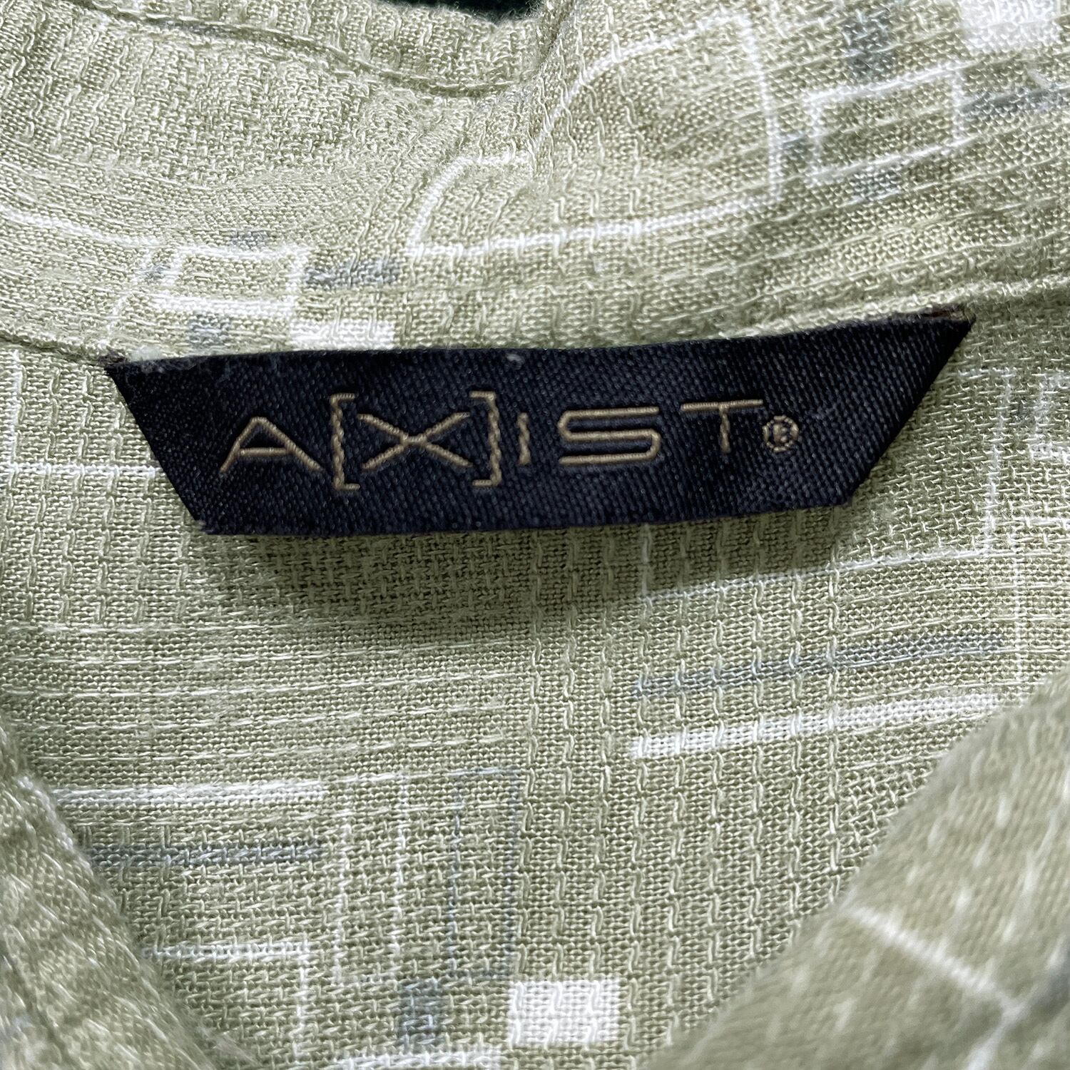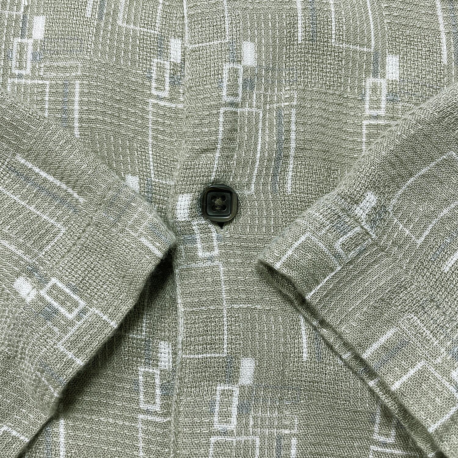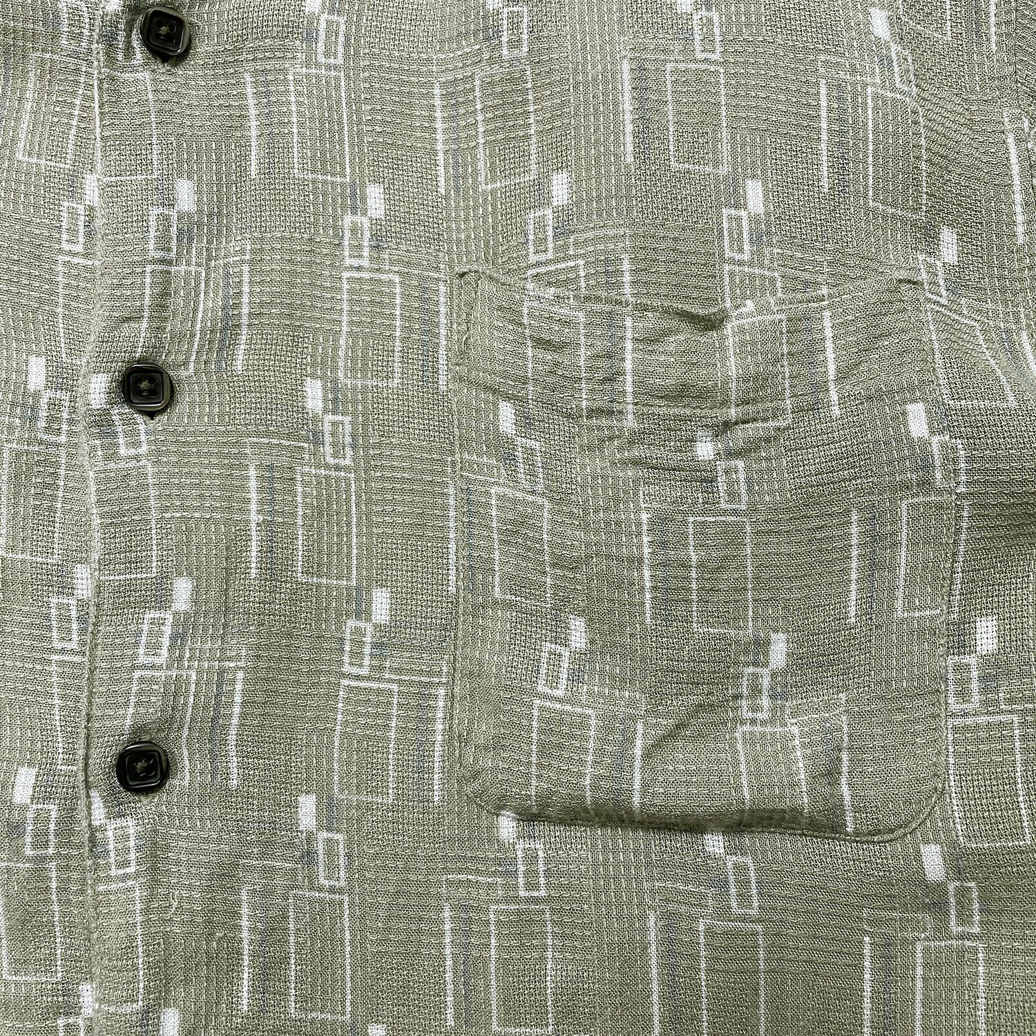 USA 古着 AXIST レーヨン アロハシャツ ハワイアンシャツ 幾何学柄 メンズL カーキ BF4039