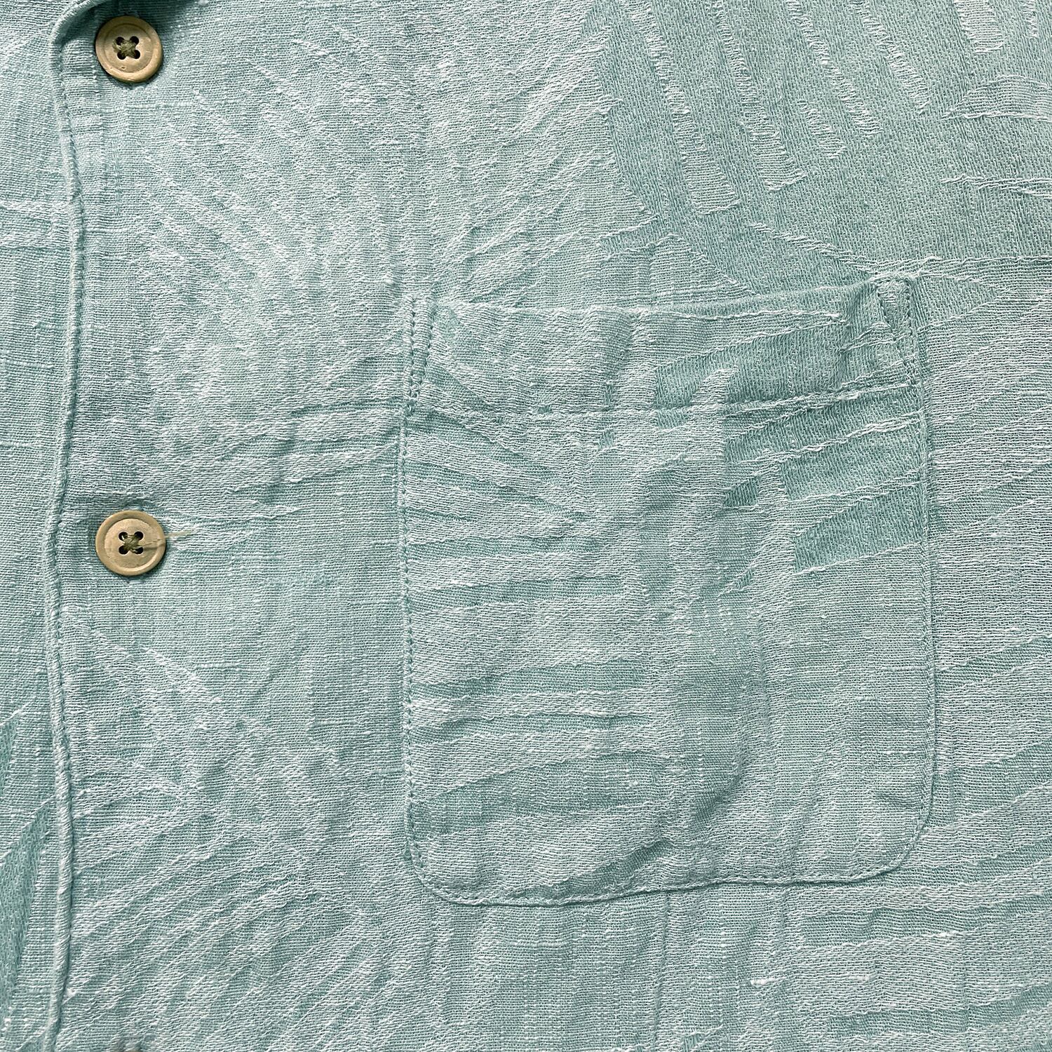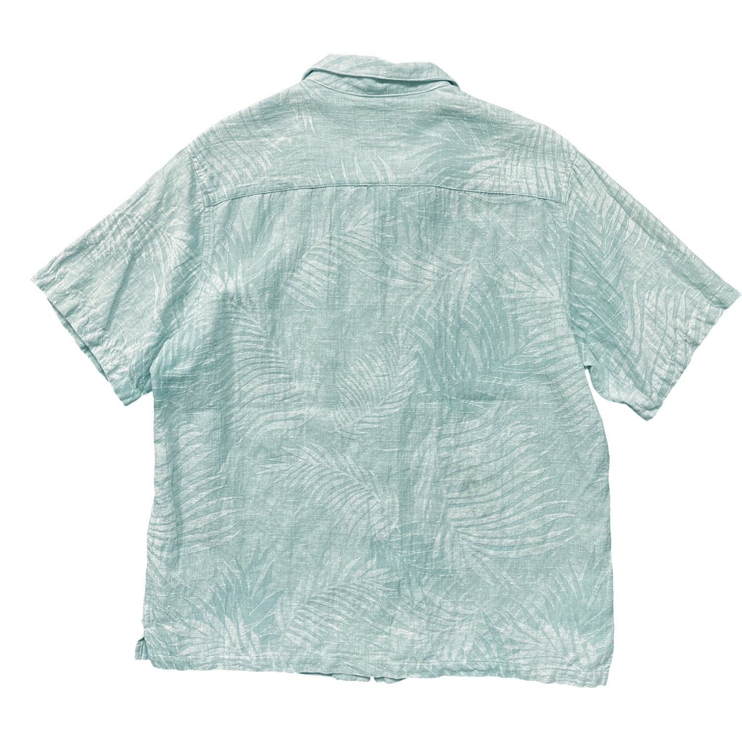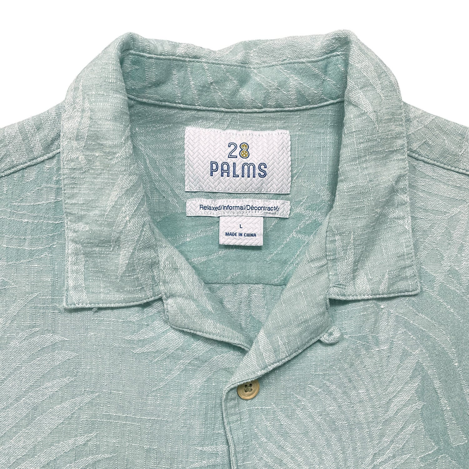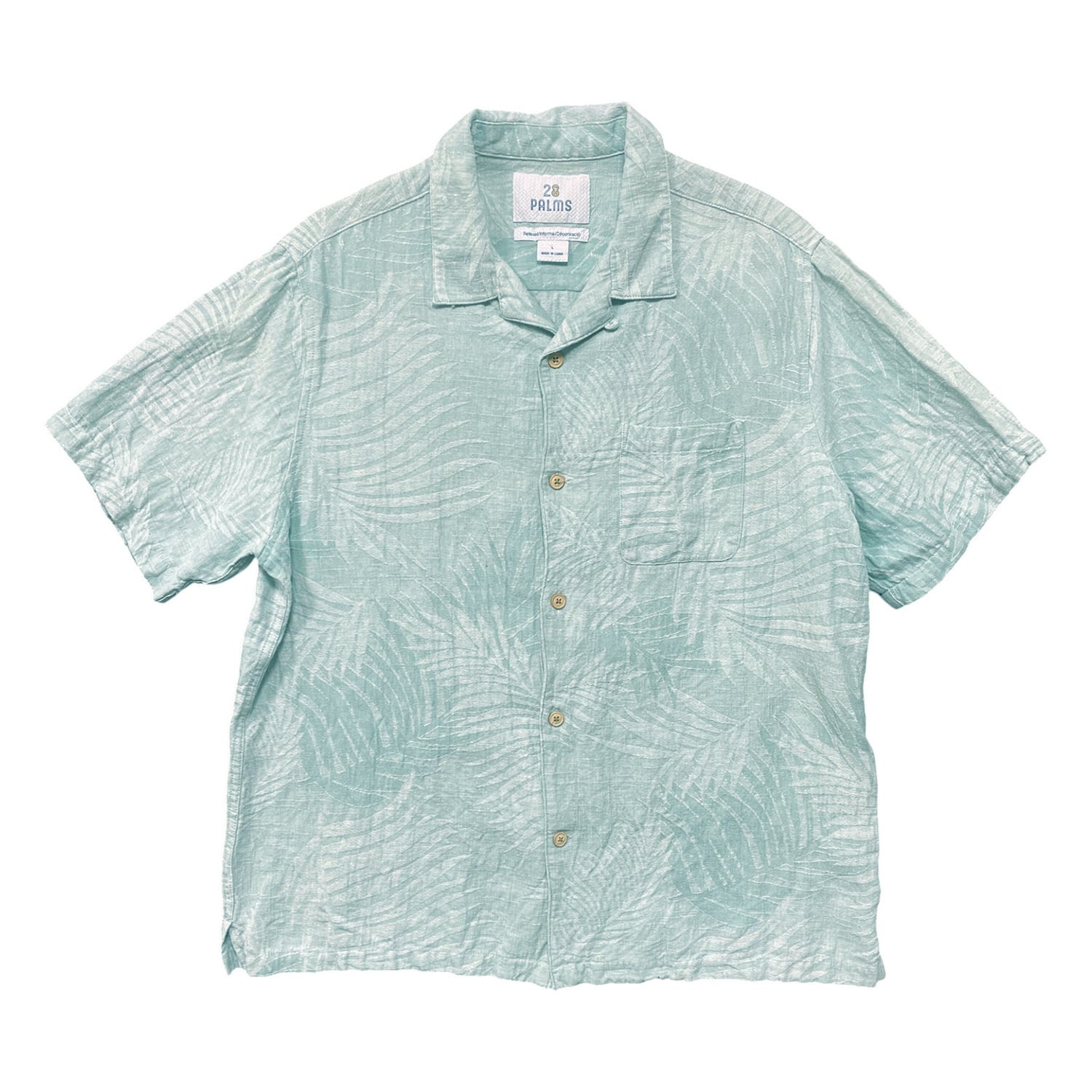USA 古着 28 PALMS 28パームズ リネン シルク 開襟 アロハシャツ ハワイアンシャツ パームツリー柄 メンズL ライトグリーン BF4044