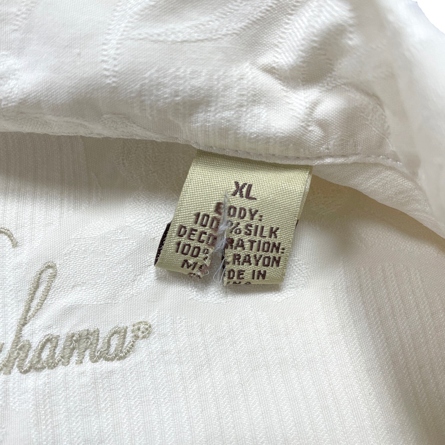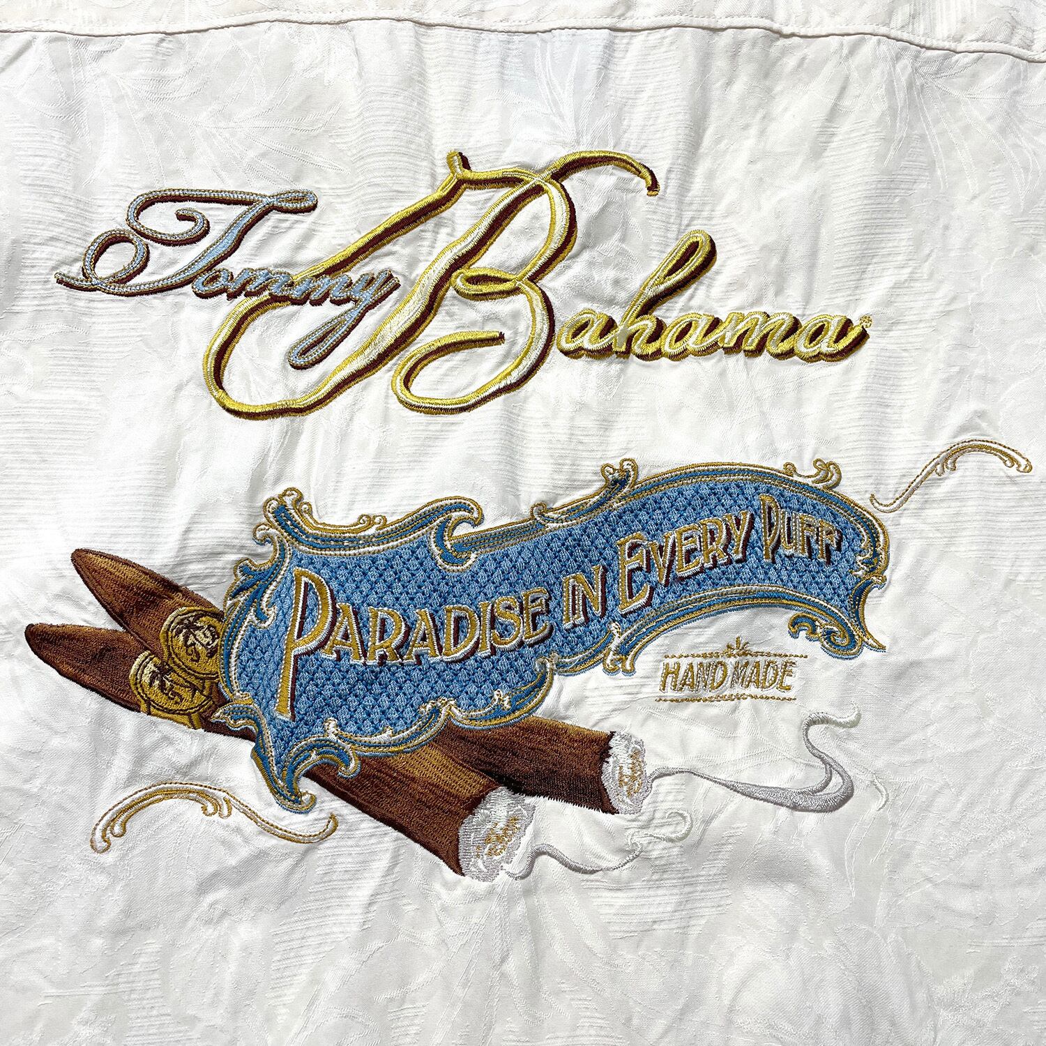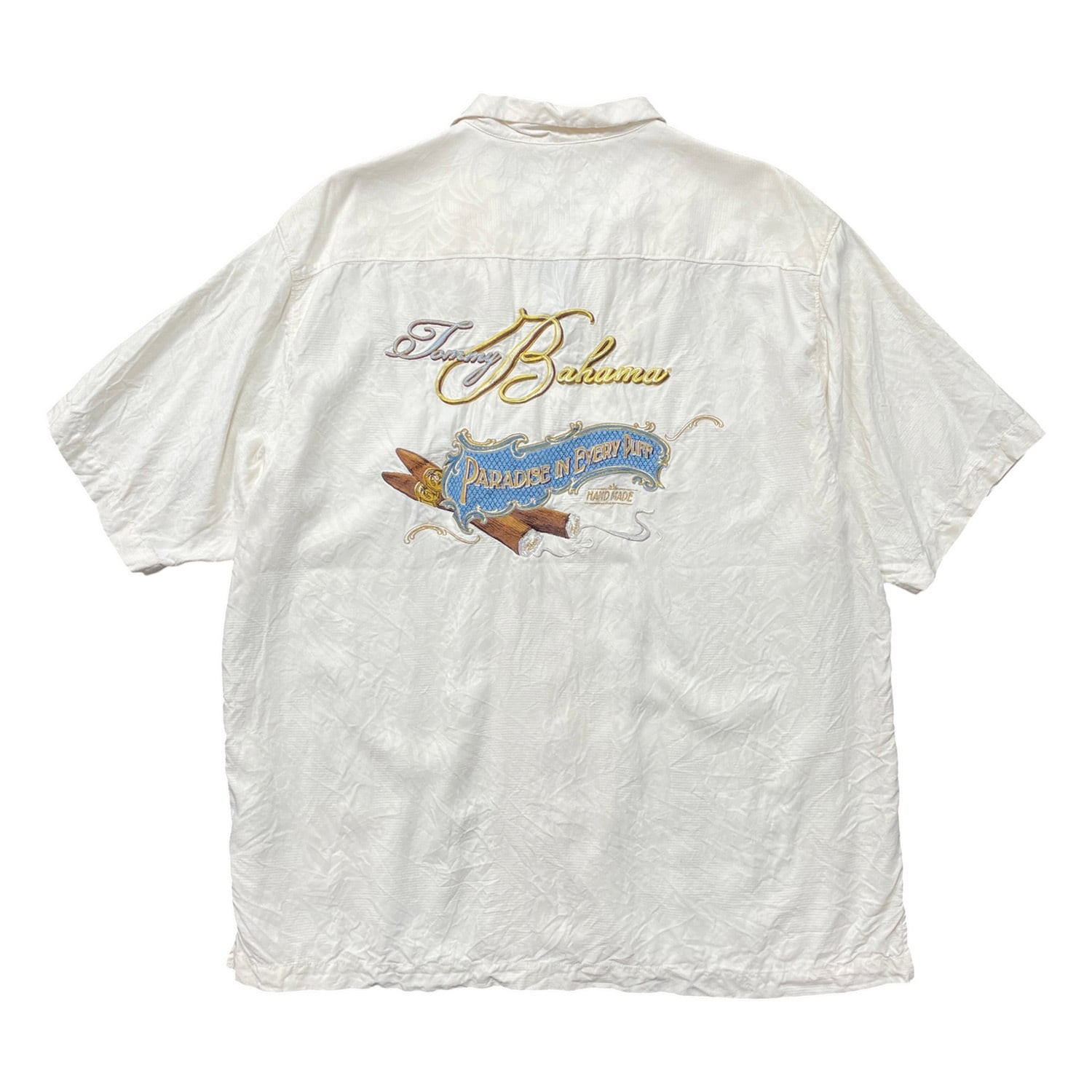 USA 古着 Tommy Bahama トミーバハマ シルク 開襟 アロハシャツ ハワイアンシャツ キャンプシャツ 葉巻 刺繍 メンズXL ホワイト BF4052