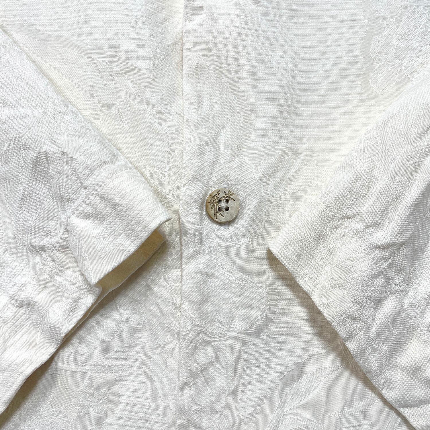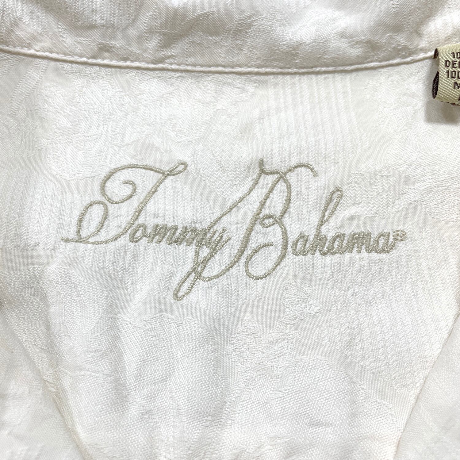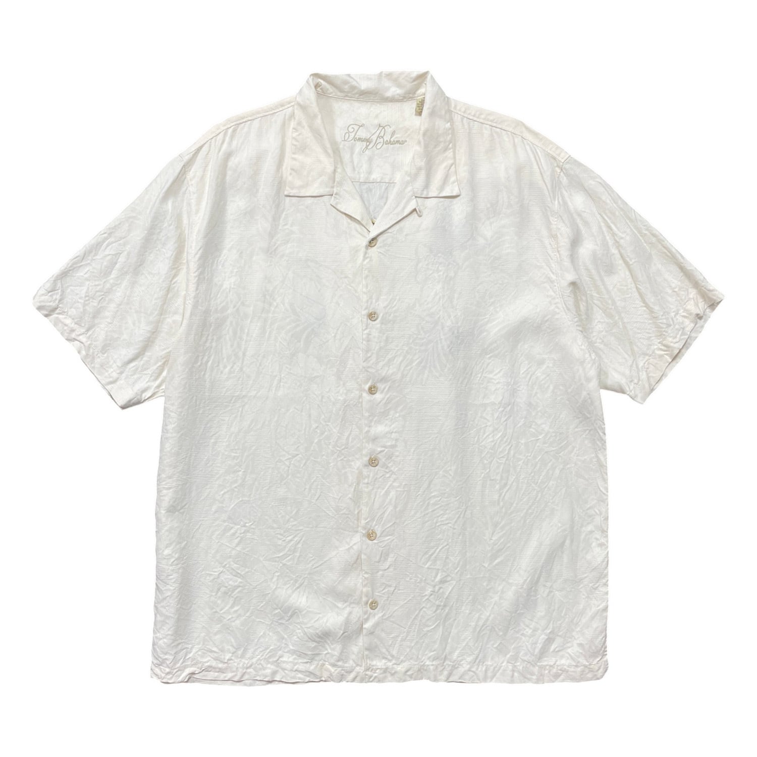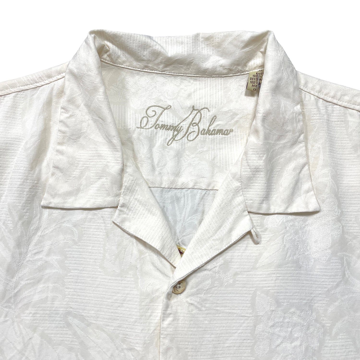 USA 古着 Tommy Bahama トミーバハマ シルク 開襟 アロハシャツ ハワイアンシャツ キャンプシャツ 葉巻 刺繍 メンズXL ホワイト BF4052