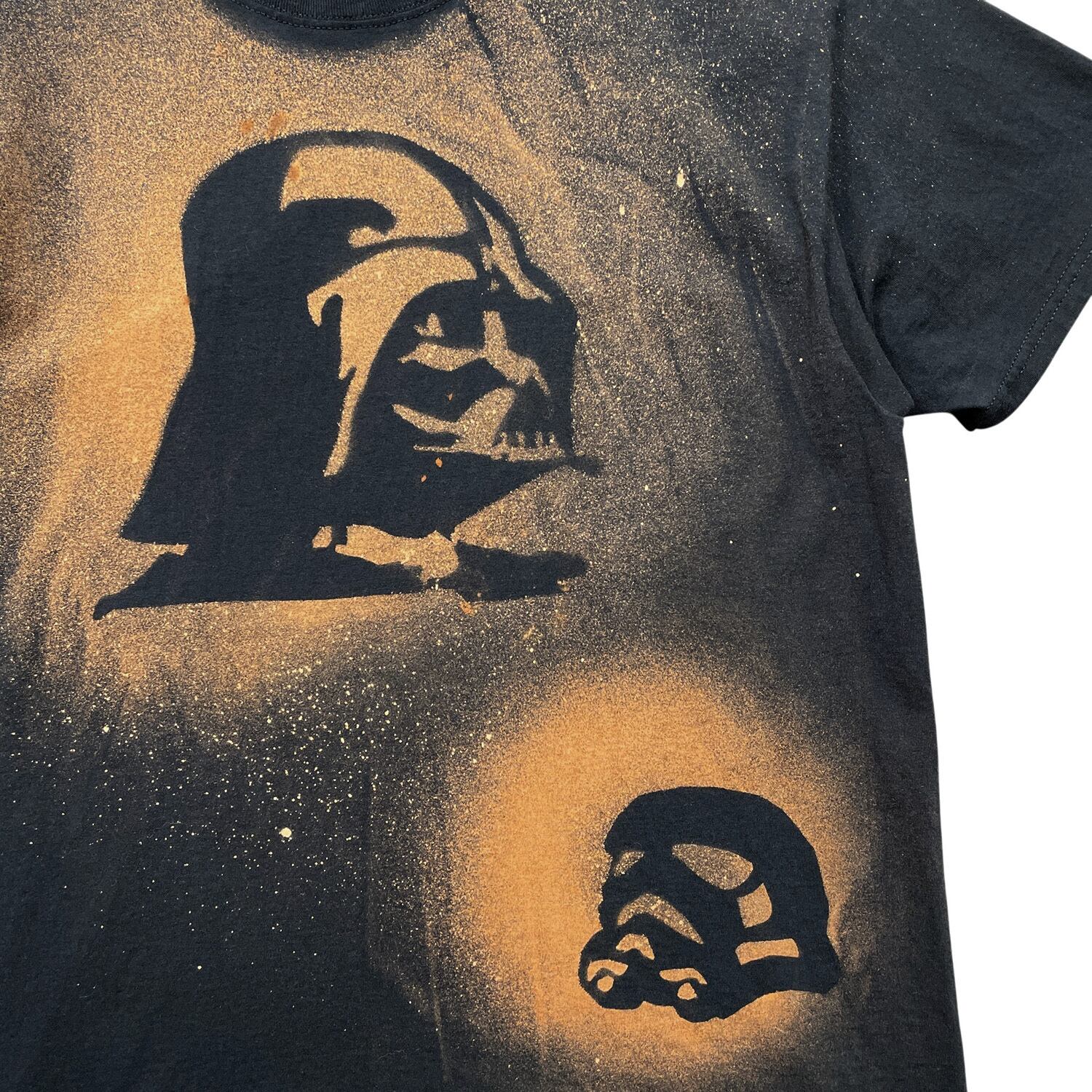 USA 古着 FRUIT OF THE LOOM スターウォーズ ダースベイダー ストームトルーパー クルーネック Tシャツ ブリーチ加工 メンズL ブラック BA4922