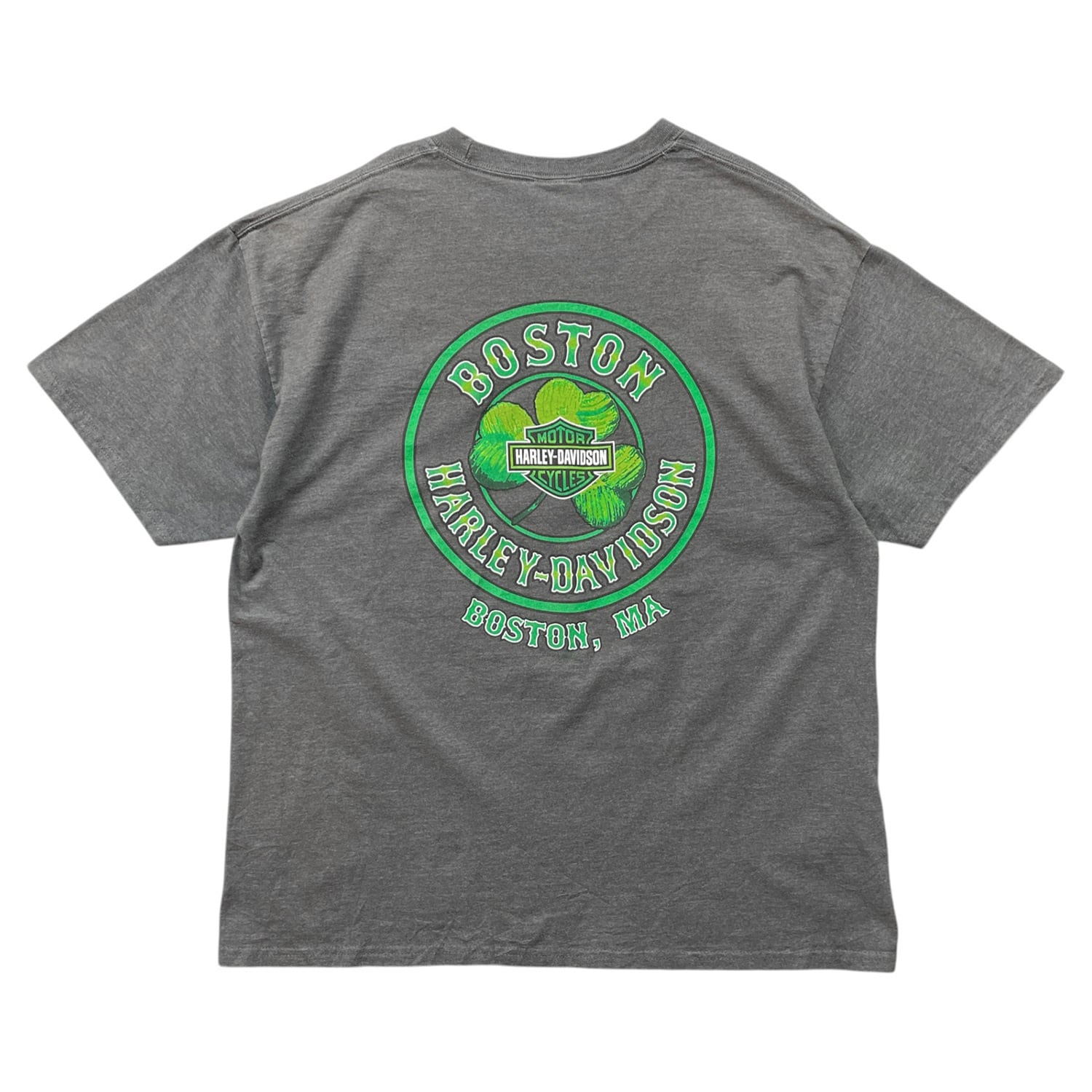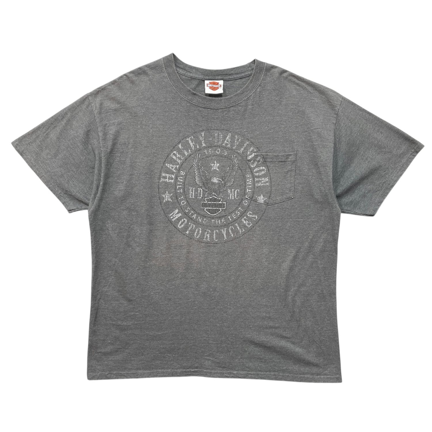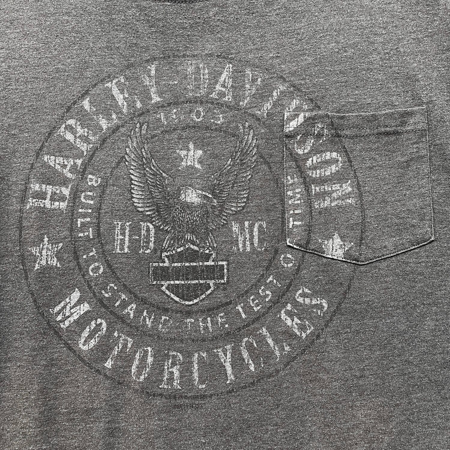 USA 古着 HARLEY DAVIDSON ハーレーダビッドソン ボストン クルーネック Tシャツ ポケT プリント メンズL 相当 チャコールグレー BA4928