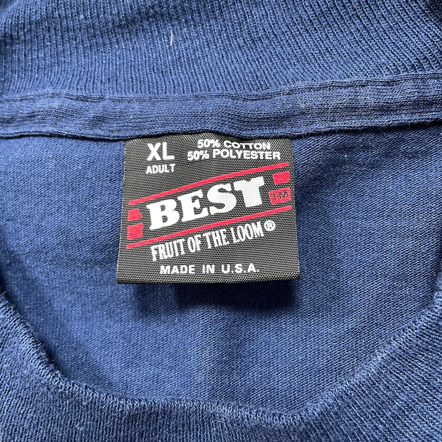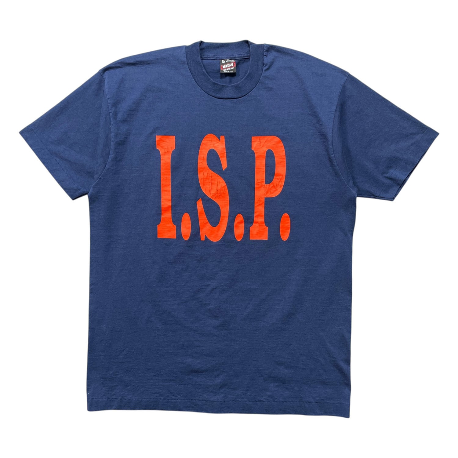 古着 USA製 90S FRUIT OF THE LOOM I.S.P. ヴィンテージ クルーネック Tシャツ プリント メンズXL ネイビー シングルステッチ BA4932