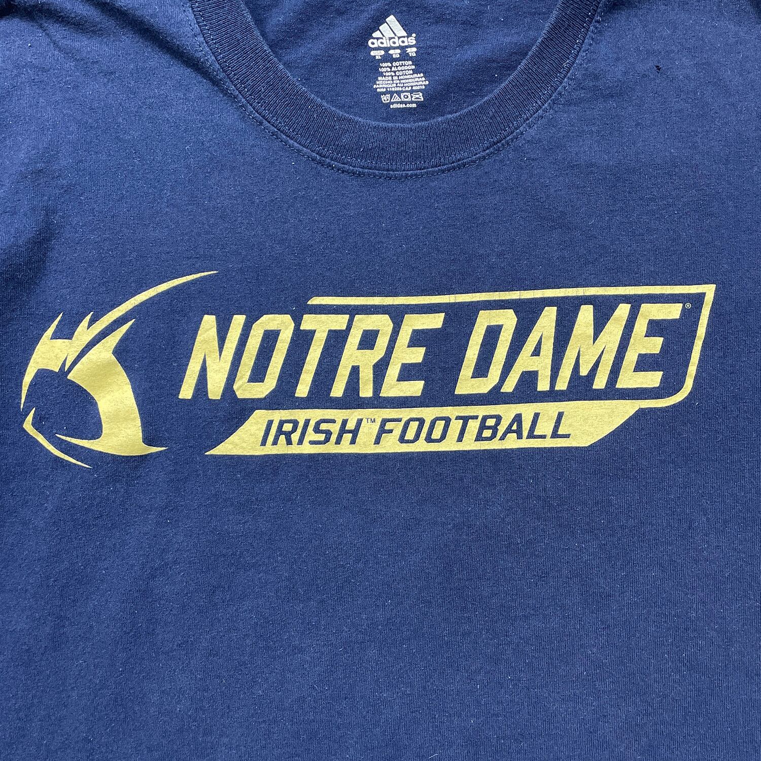 USA 古着 adidas アディダス ノートルダム大学 アイリッシュフットボール カレッジ クルーネック Tシャツ プリント メンズXL ネイビー BA4934