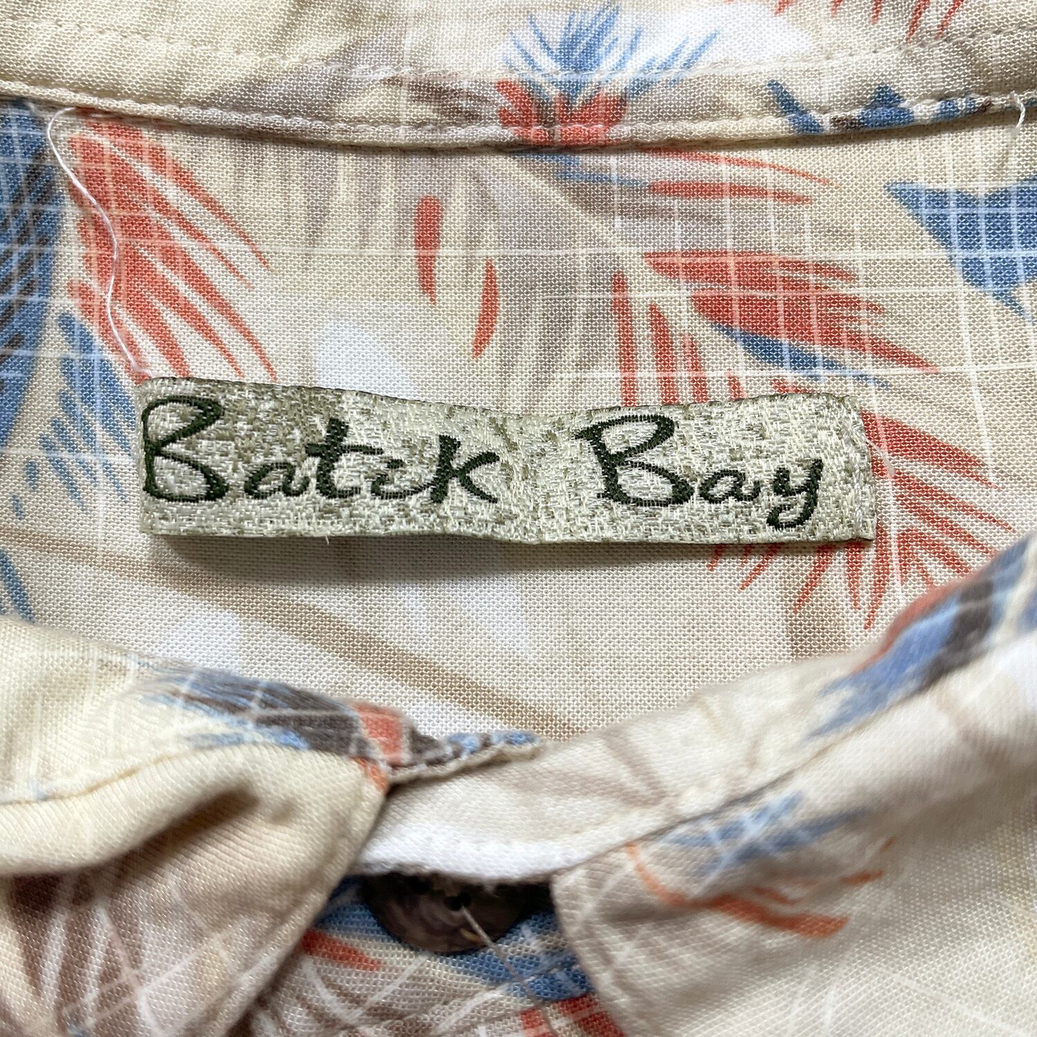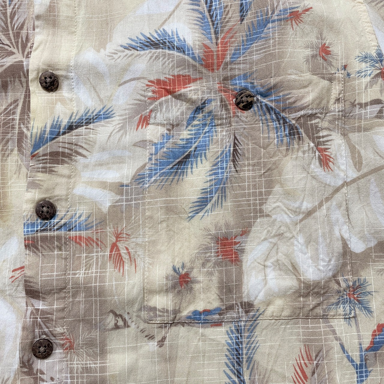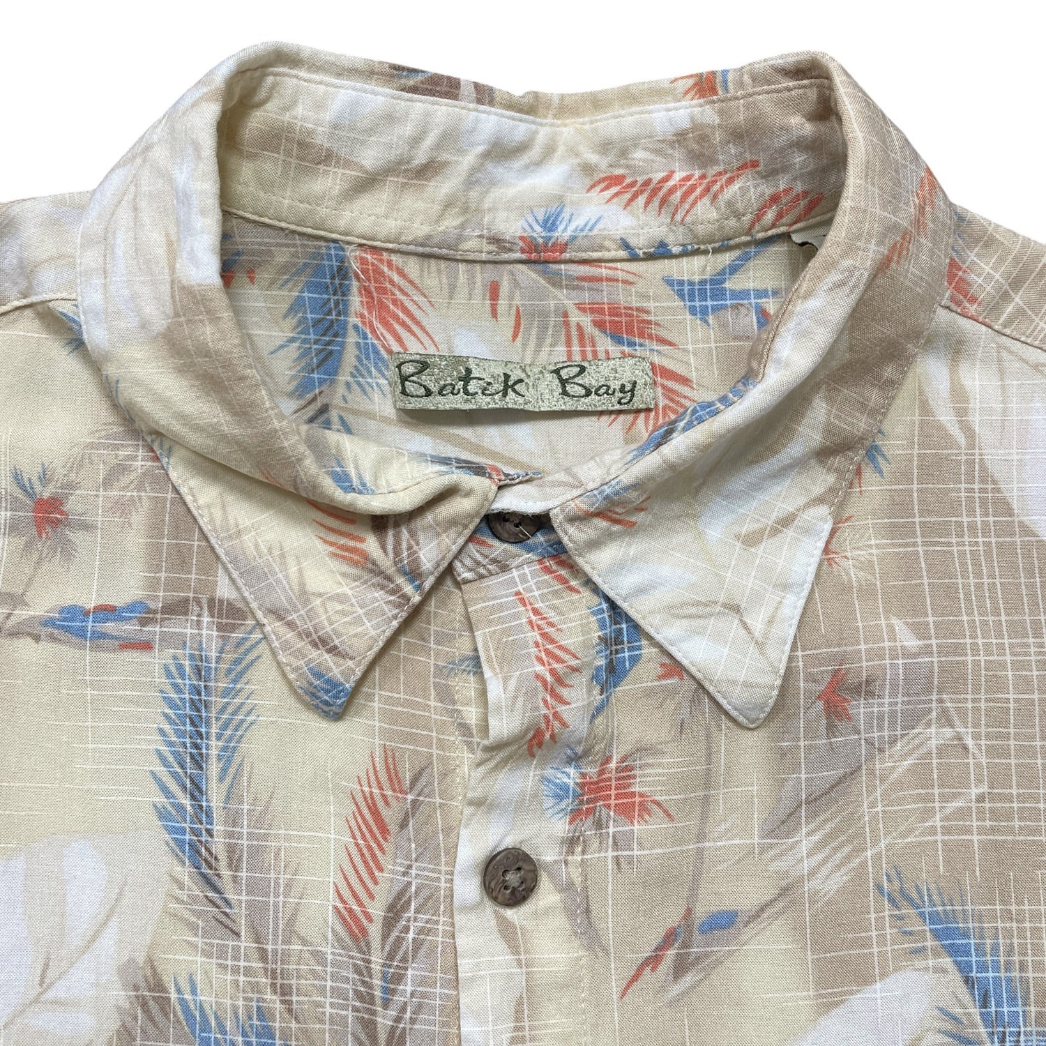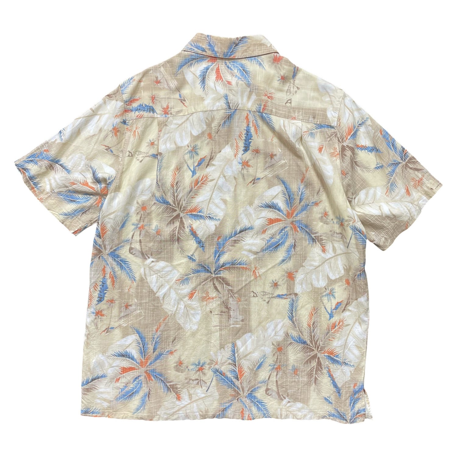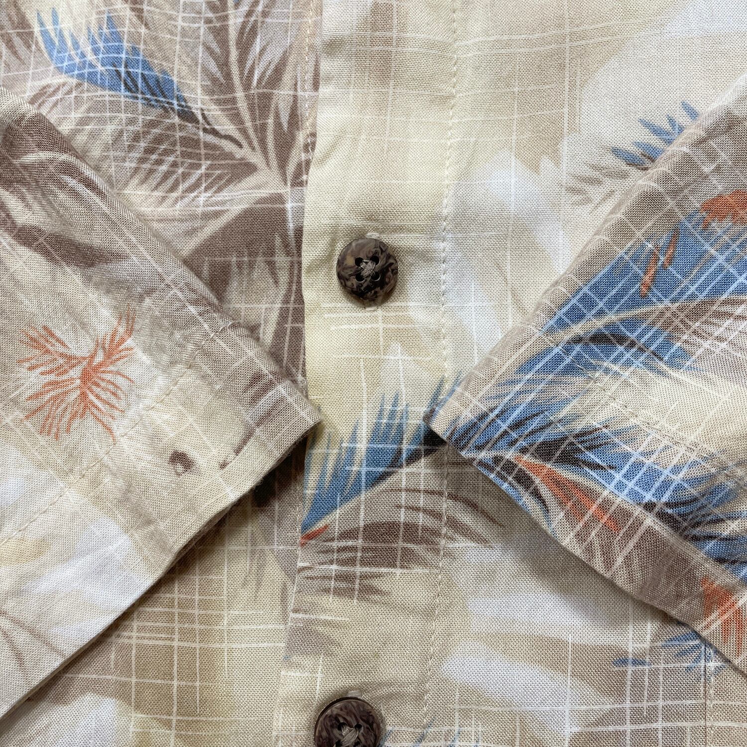 USA 古着 Batik Bay バティックベイ レーヨン アロハシャツ ハワイアンシャツ パームツリー柄 ヤシの木 メンズL ベージュ BF4096