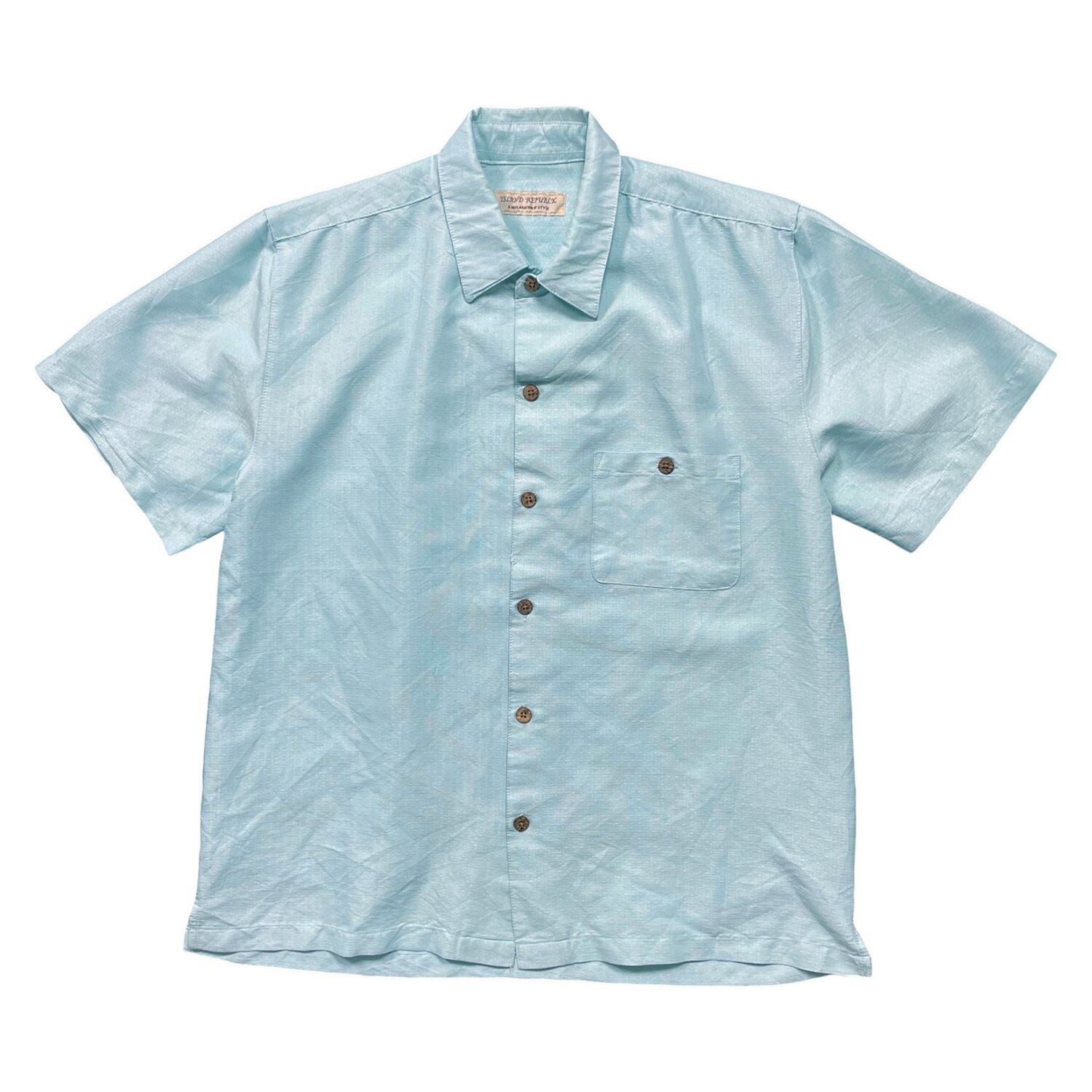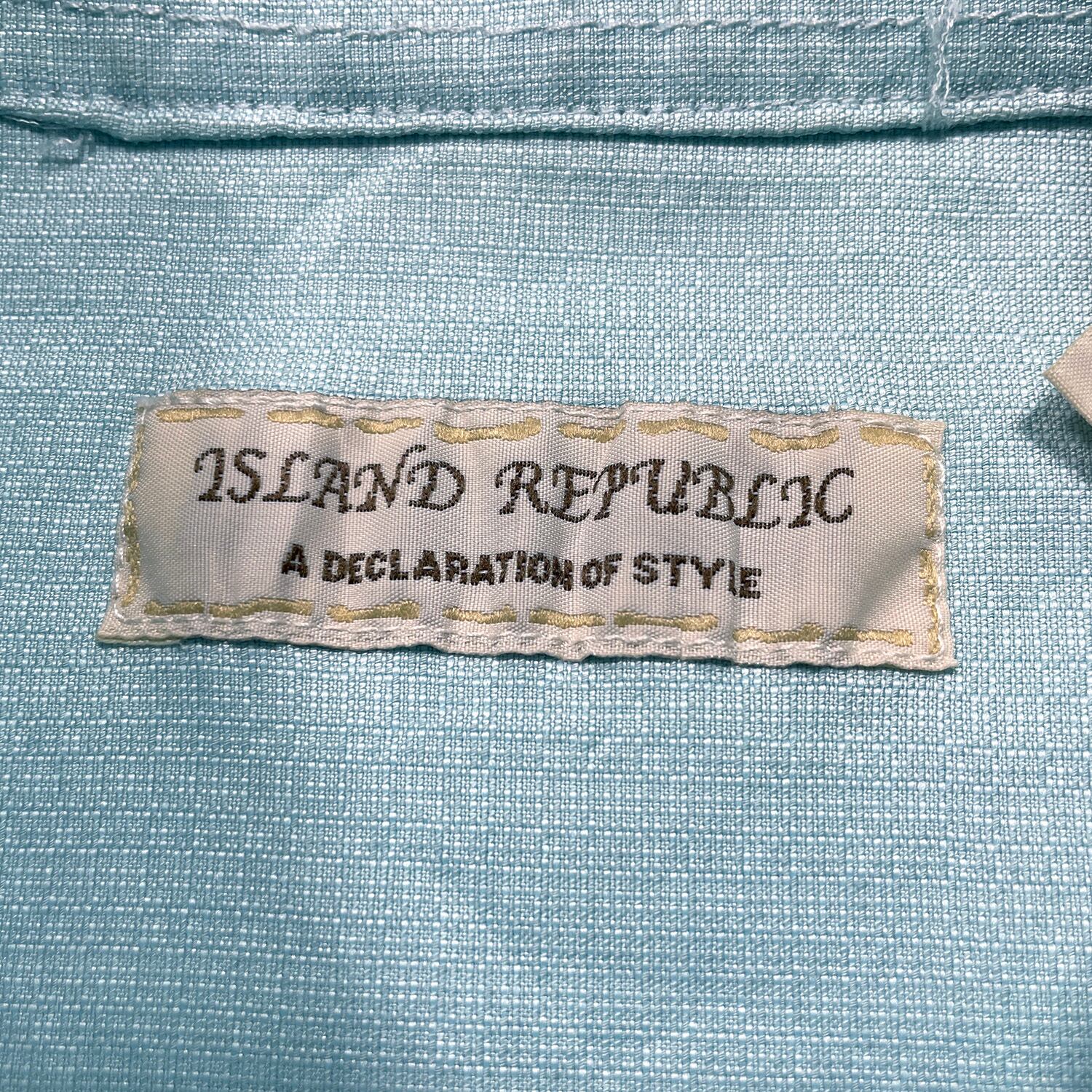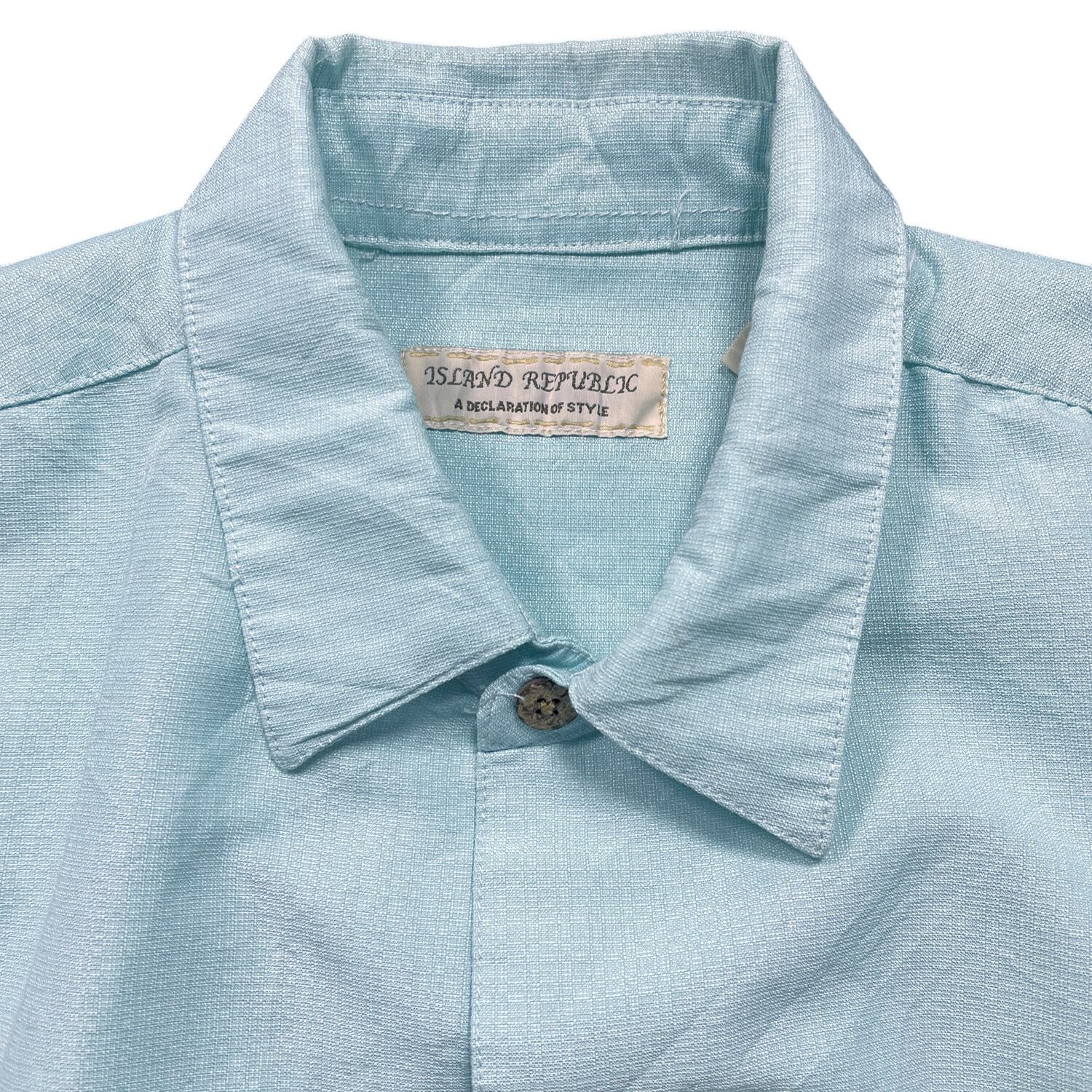 USA 古着 ISLAND REPUBLIC レーヨン/ポリ アロハシャツ ハワイアンシャツ 無地 ブランク メンズL ライトブルー BF4100