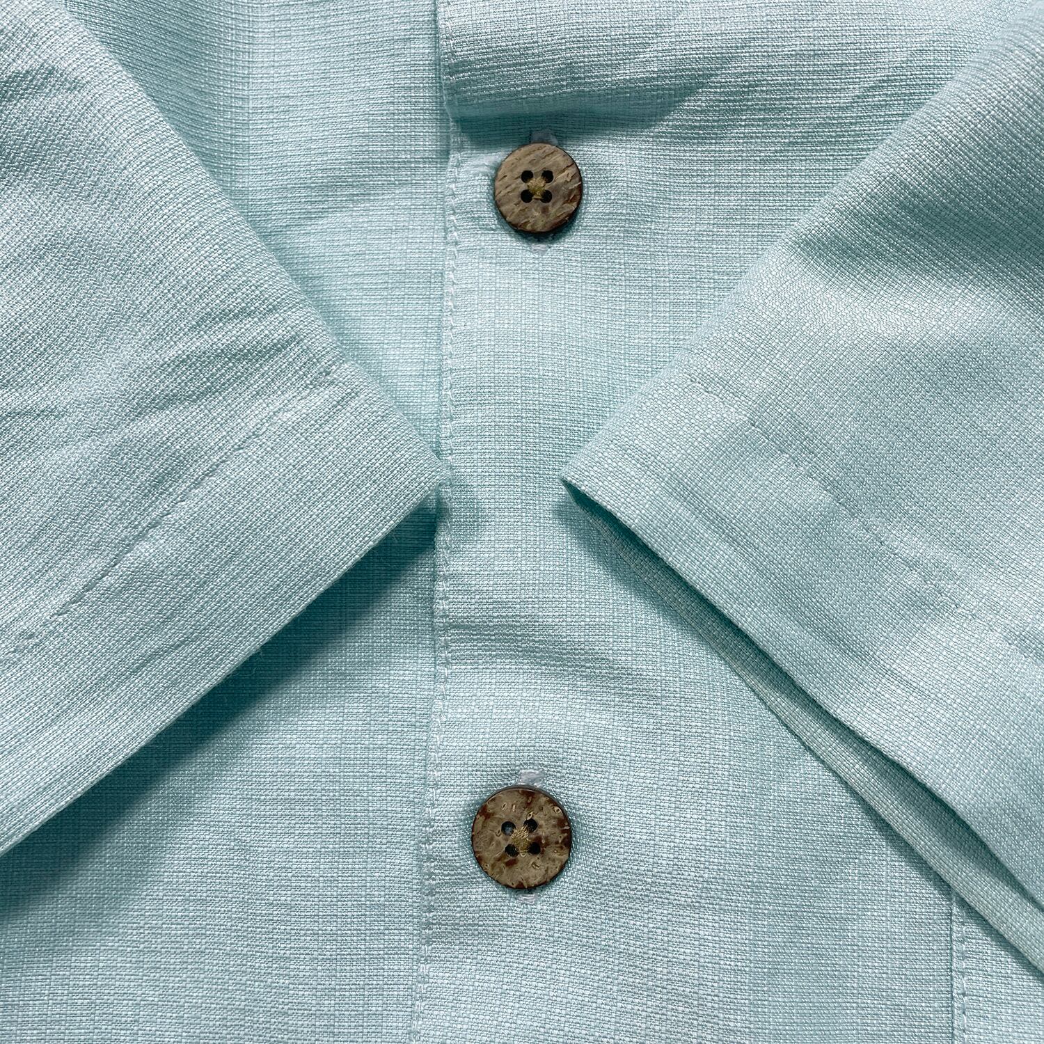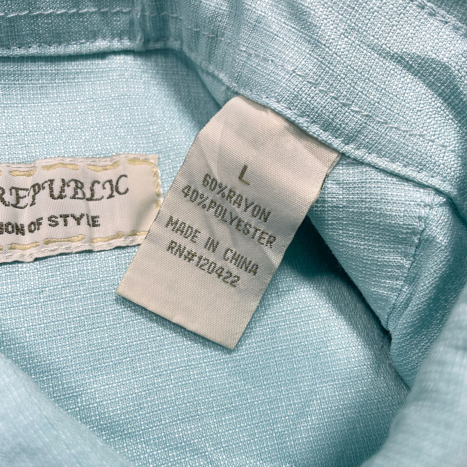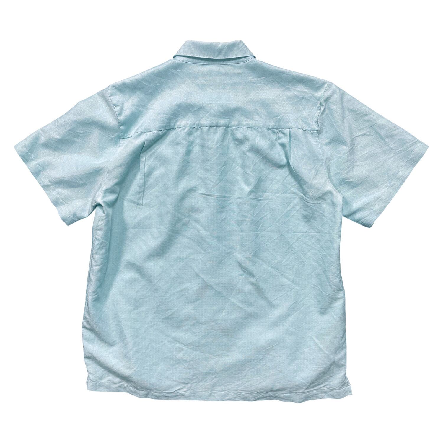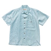 USA 古着 ISLAND REPUBLIC レーヨン/ポリ アロハシャツ ハワイアンシャツ 無地 ブランク メンズL ライトブルー BF4100