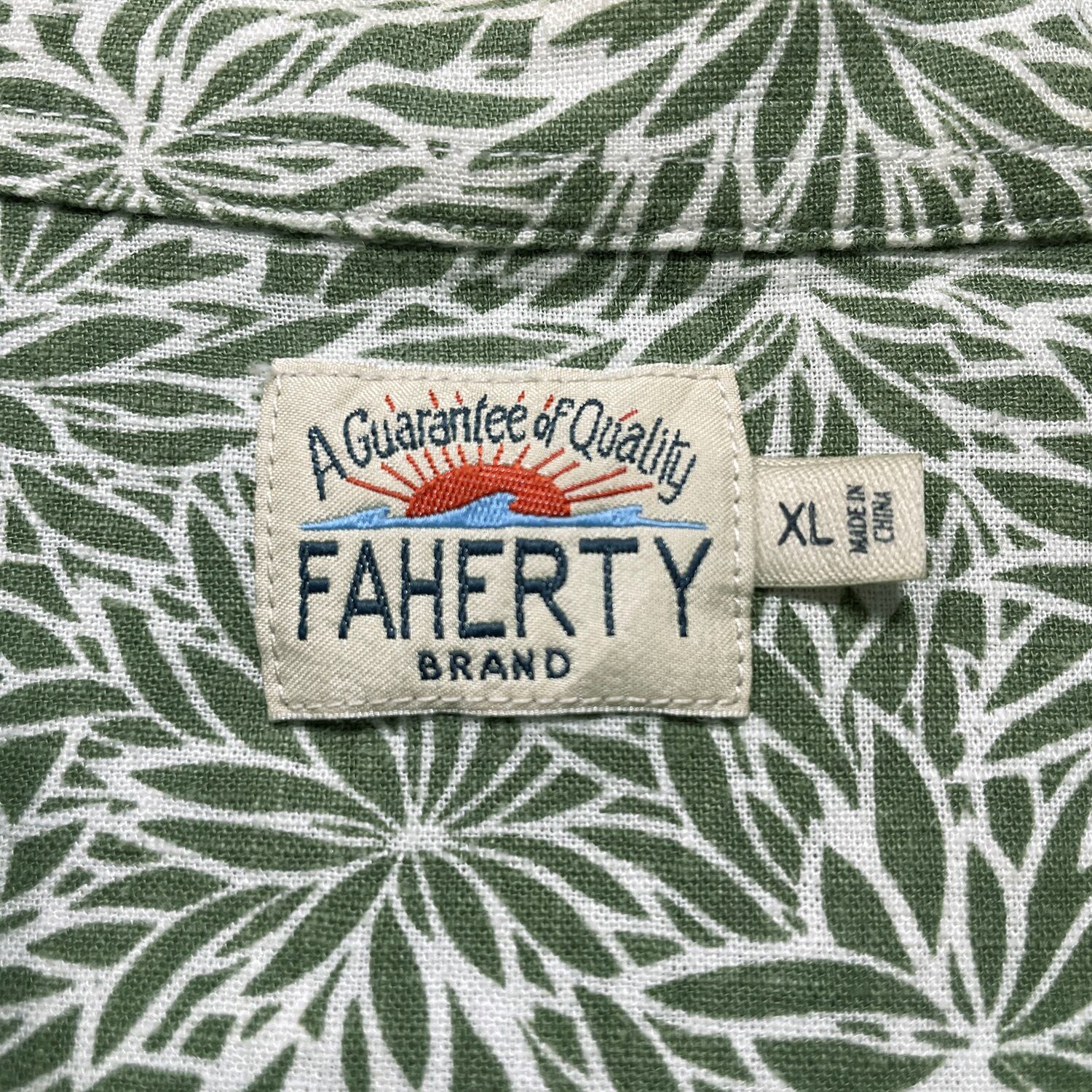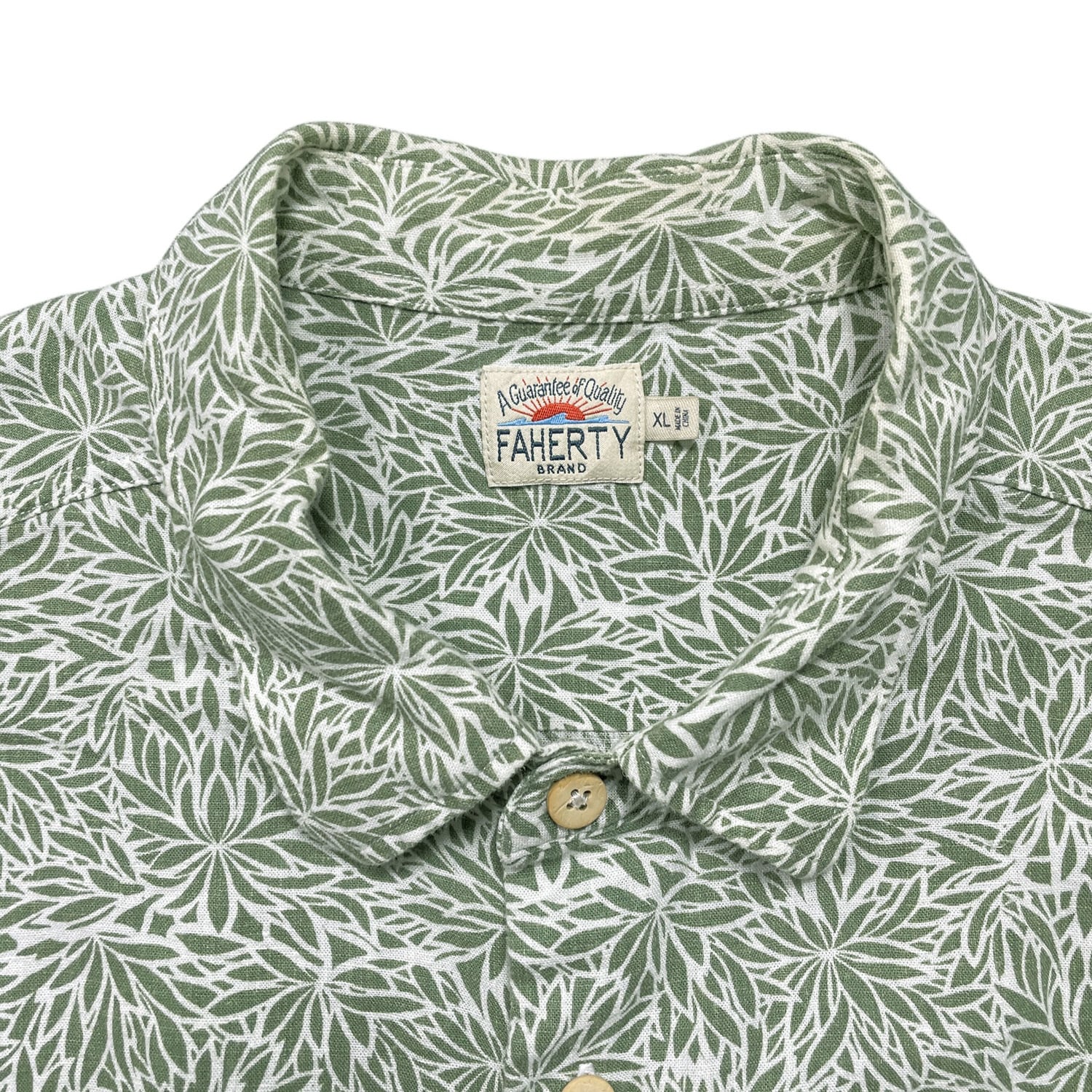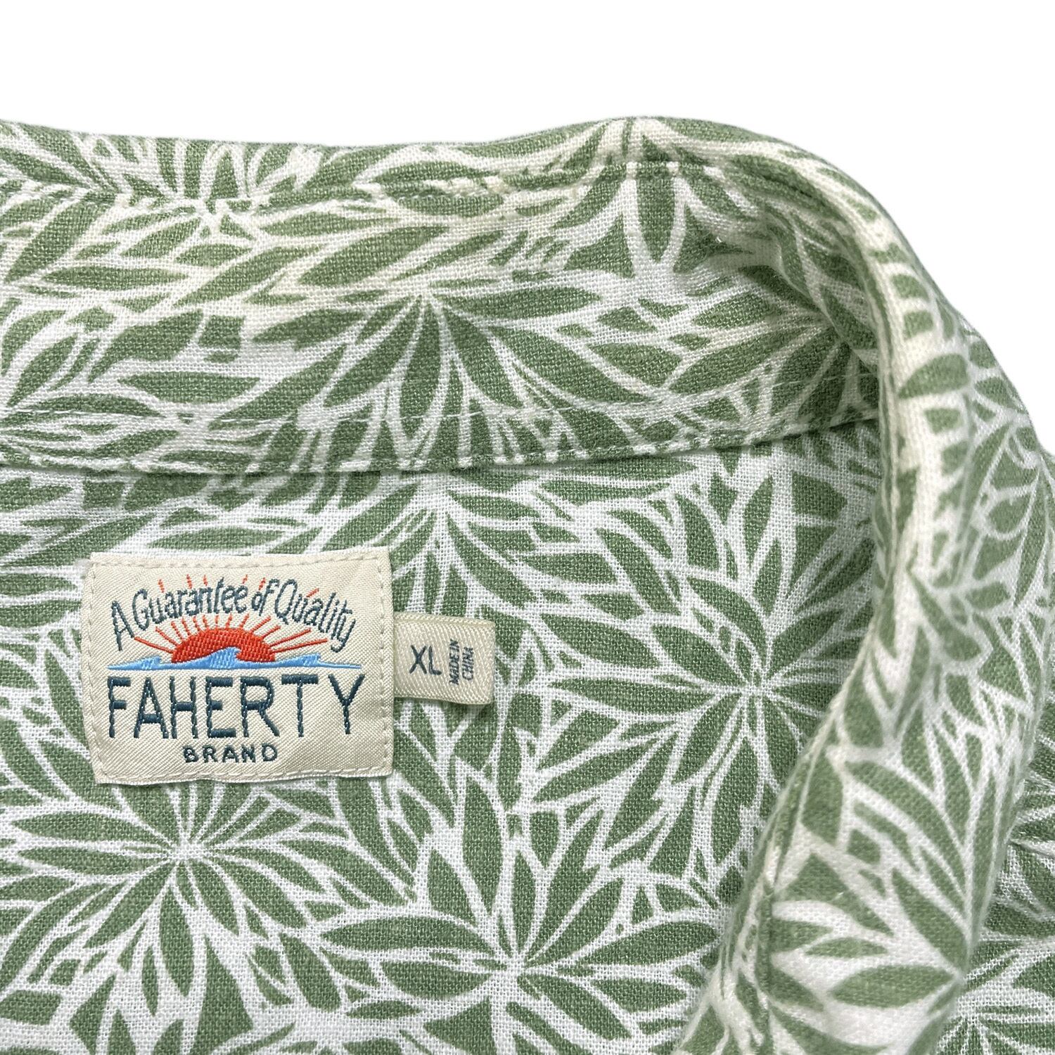 USA 古着 FAHERTY ファリティ リネン レーヨン アロハシャツ ハワイアンシャツ リーフ柄 メンズXL グリーン BF4102