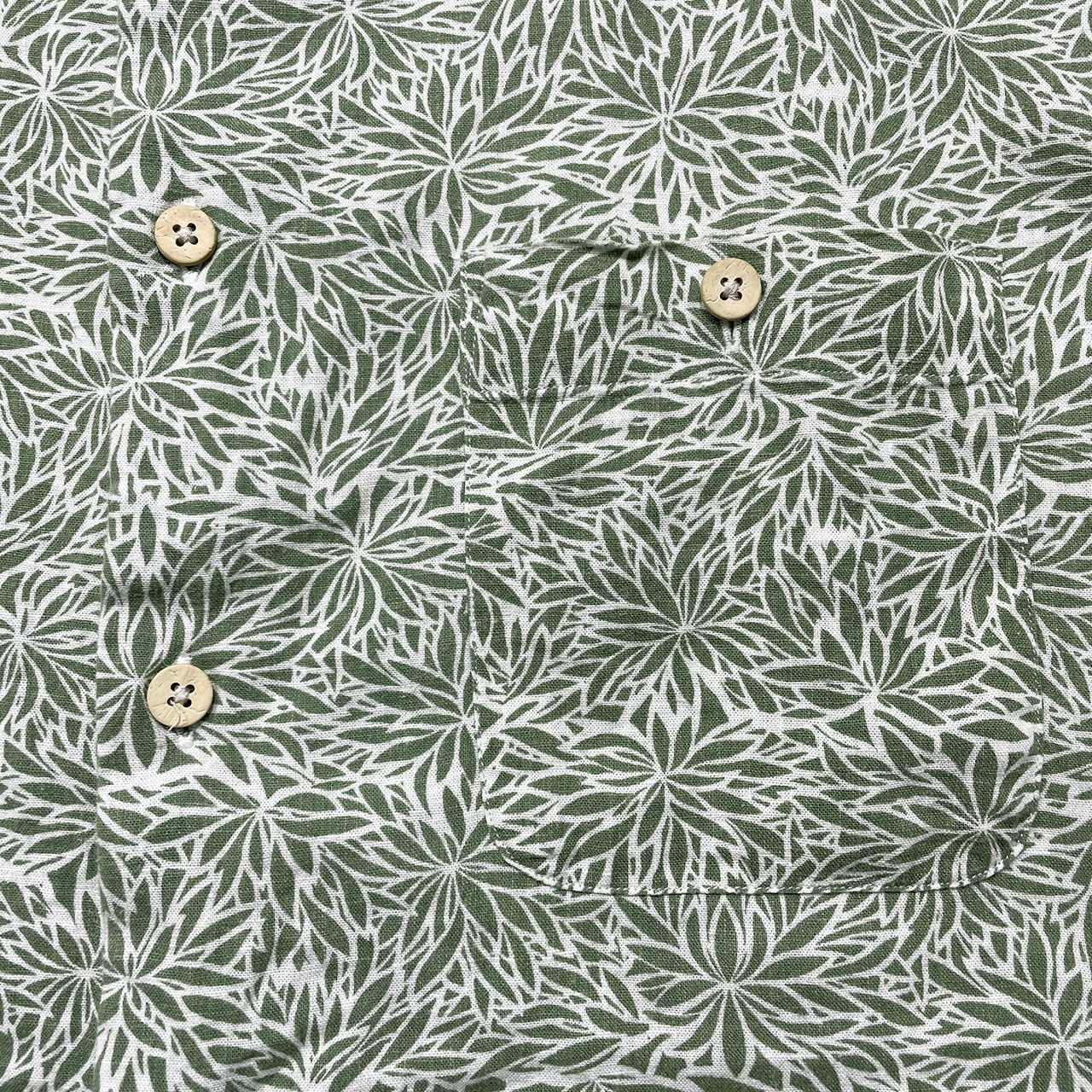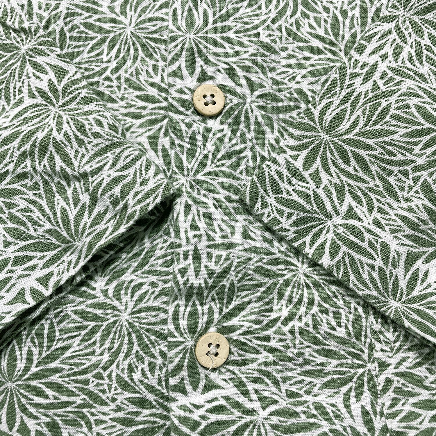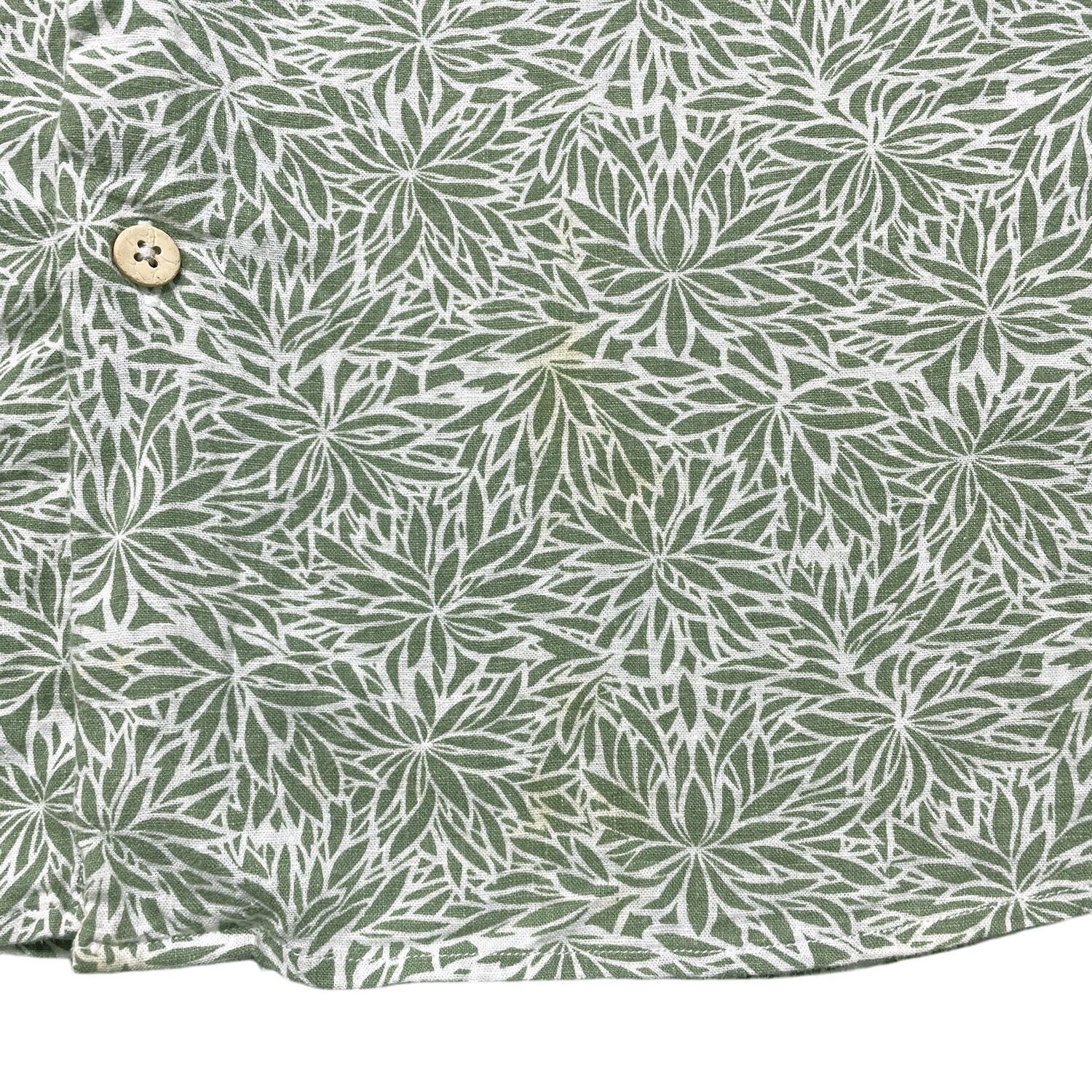 USA 古着 FAHERTY ファリティ リネン レーヨン アロハシャツ ハワイアンシャツ リーフ柄 メンズXL グリーン BF4102
