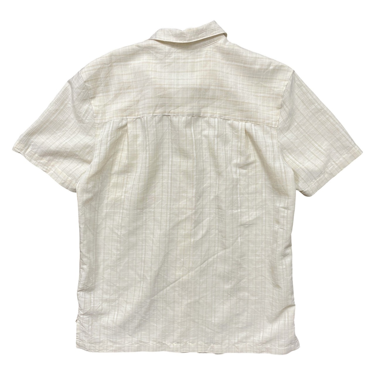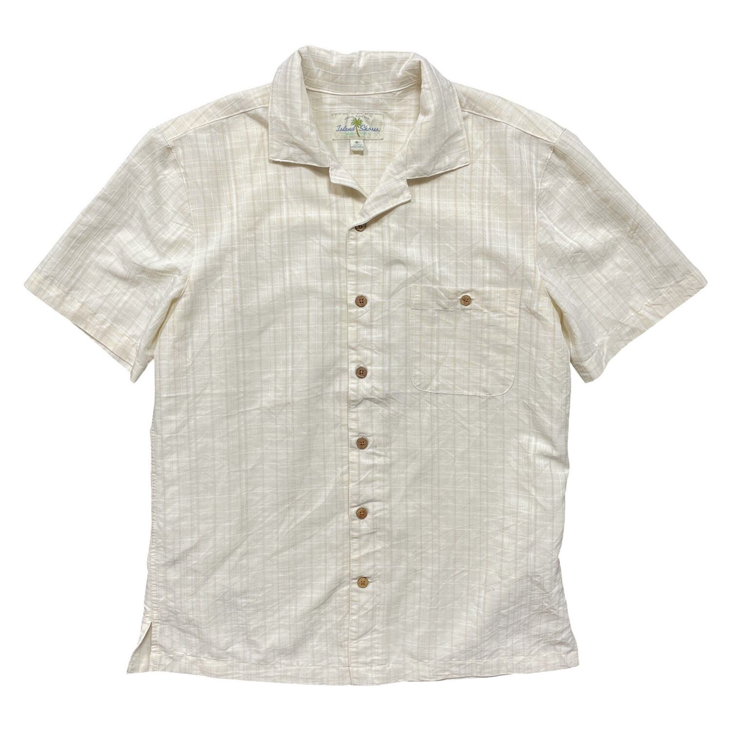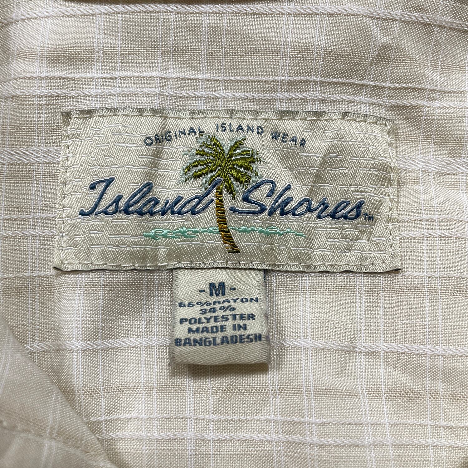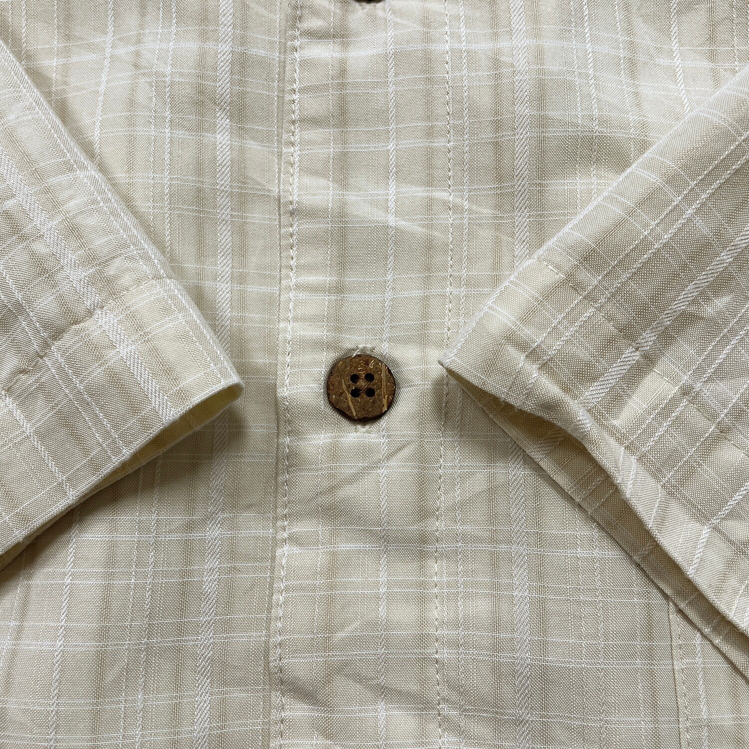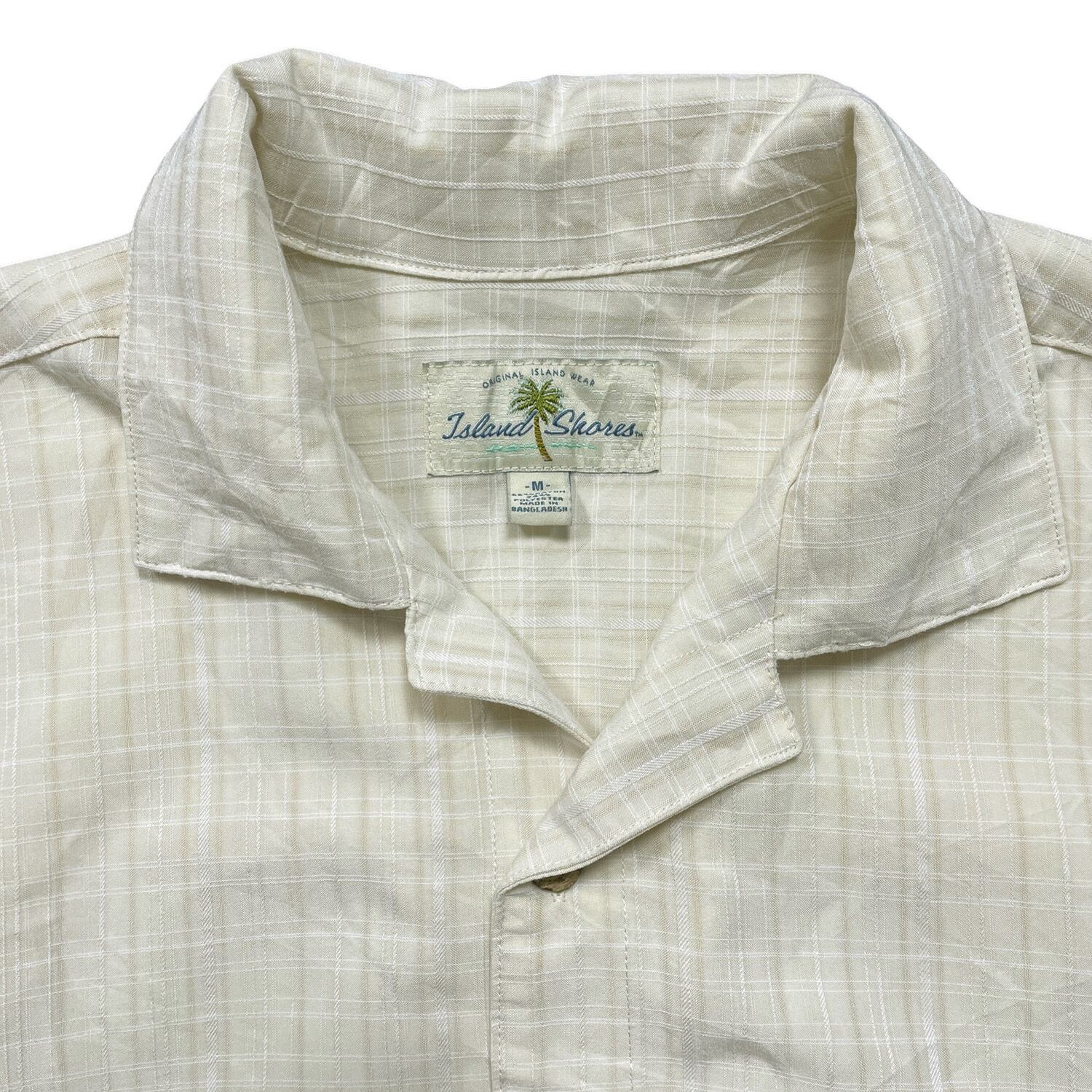 USA 古着 Island Shores アイランドショアーズ レーヨン/ポリ 開襟 アロハシャツ ハワイアンシャツ チェック柄 メンズM ベージュ BF4103