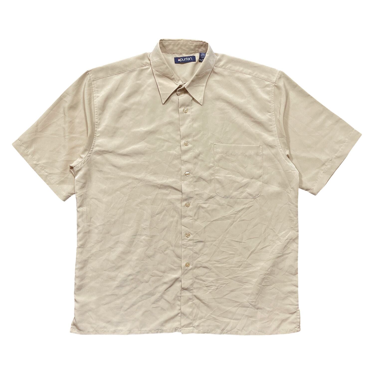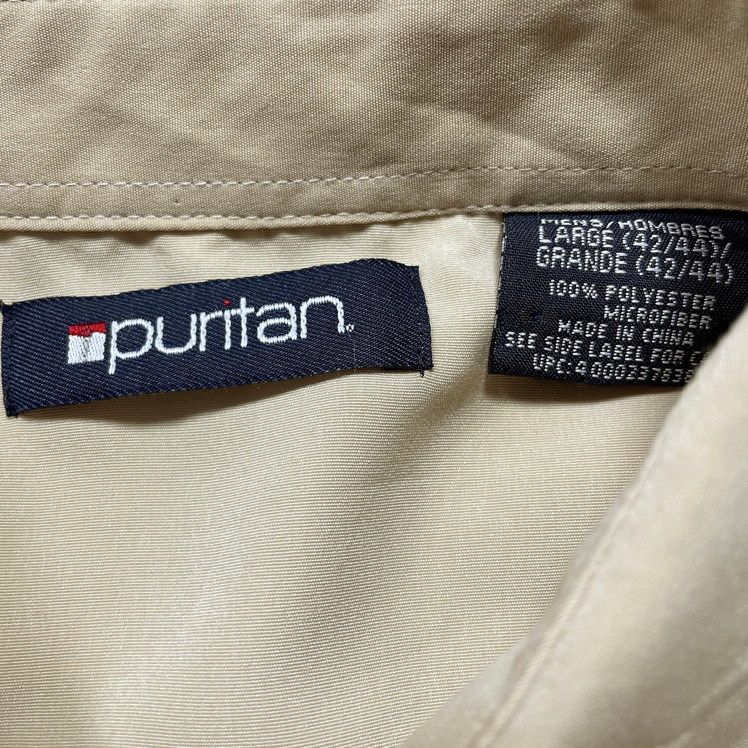 USA 古着 Puritan ピューリタン ポリエステル 半袖シャツ 無地 ブランク メンズL ベージュ BF4108