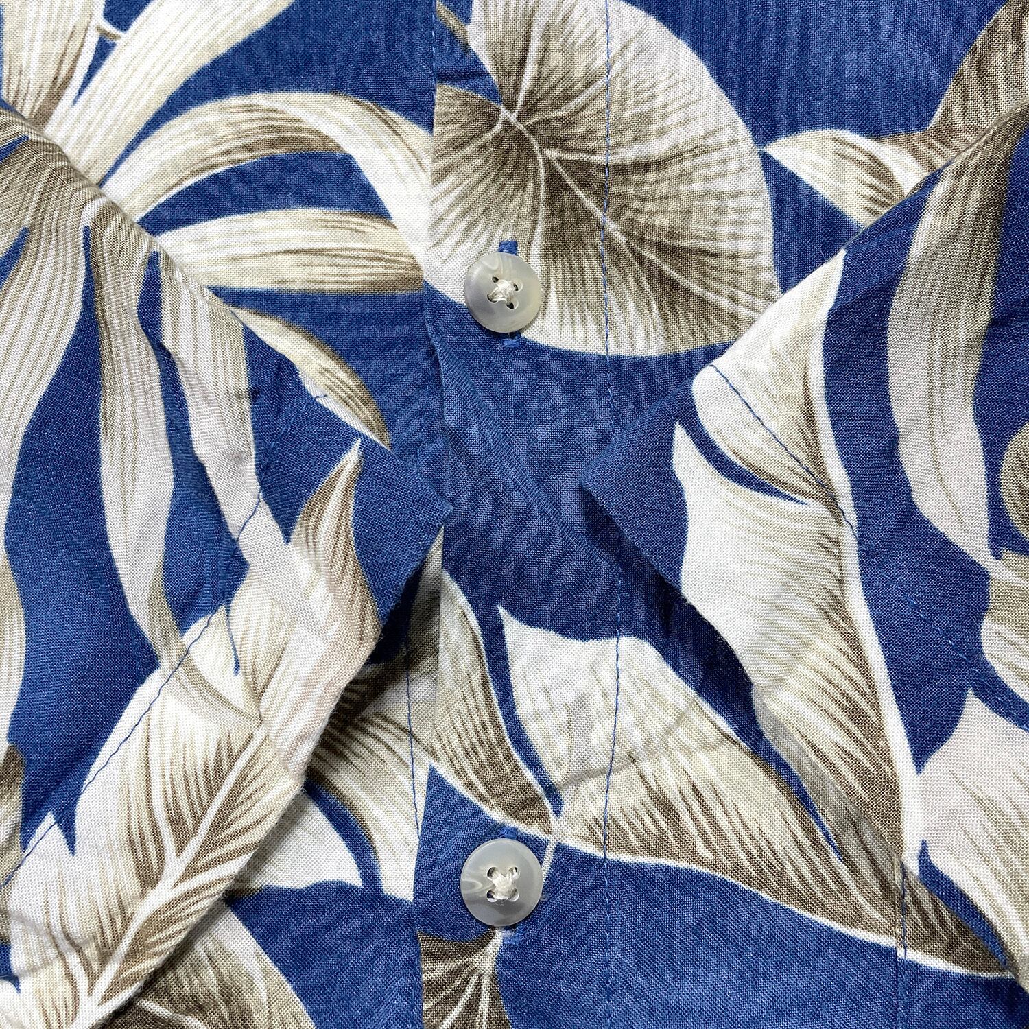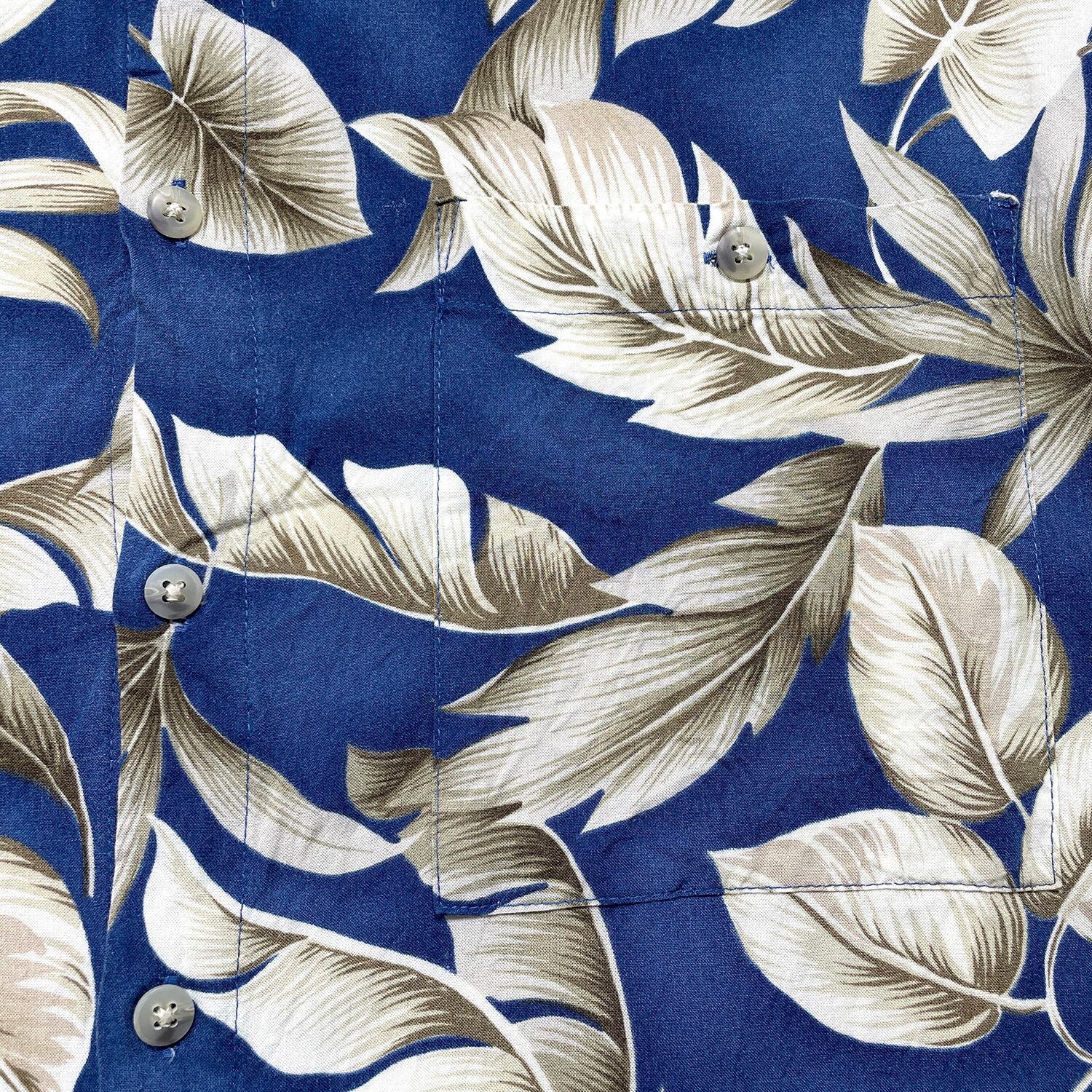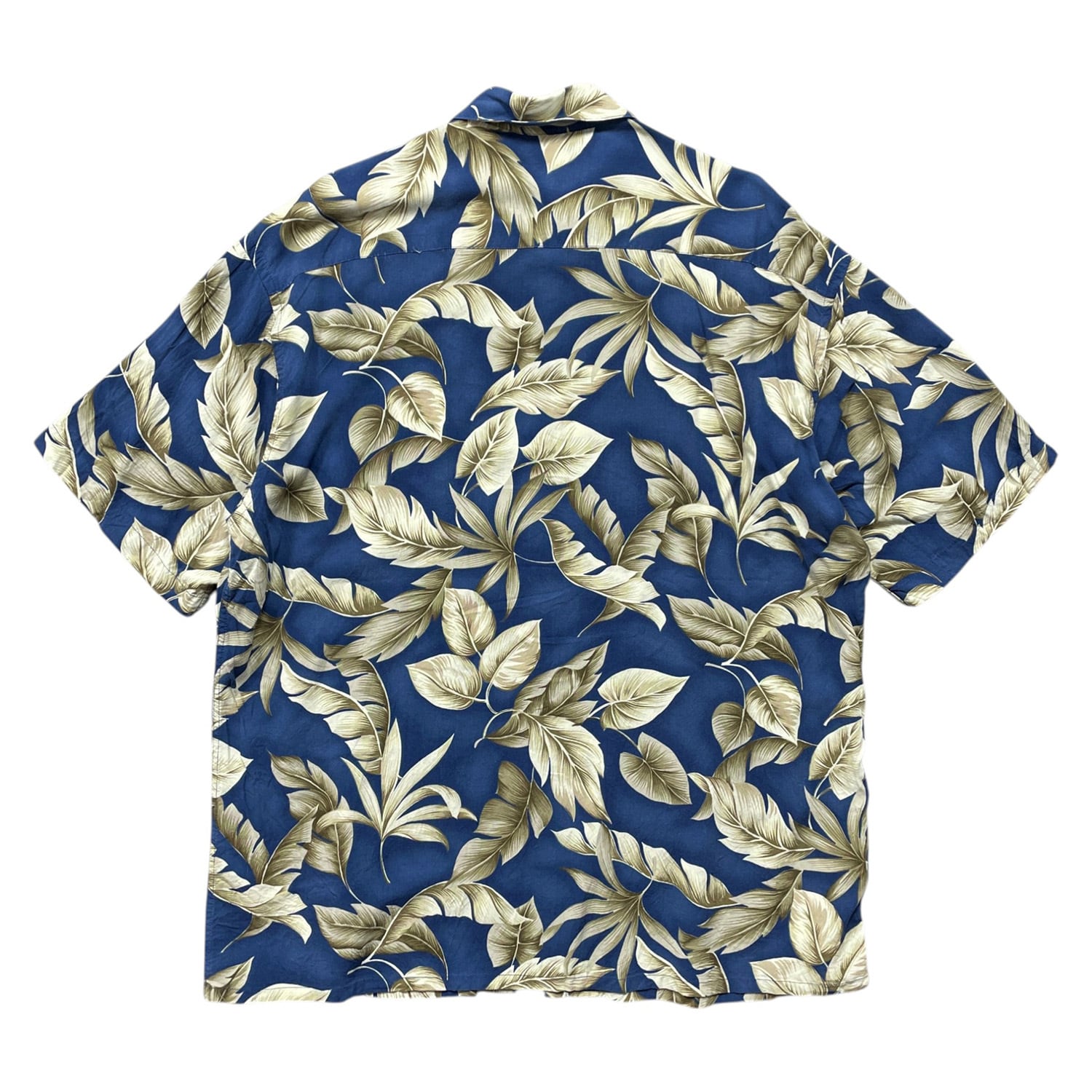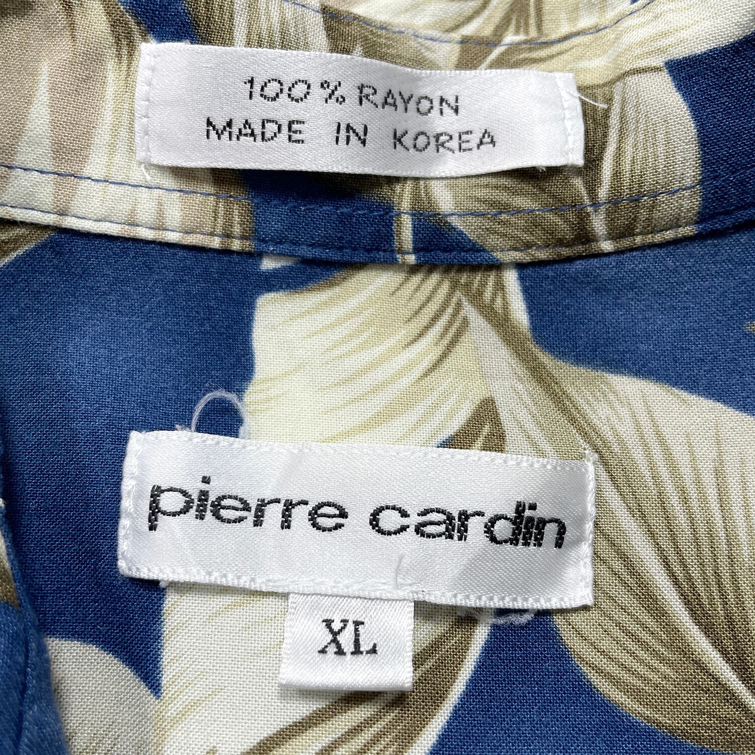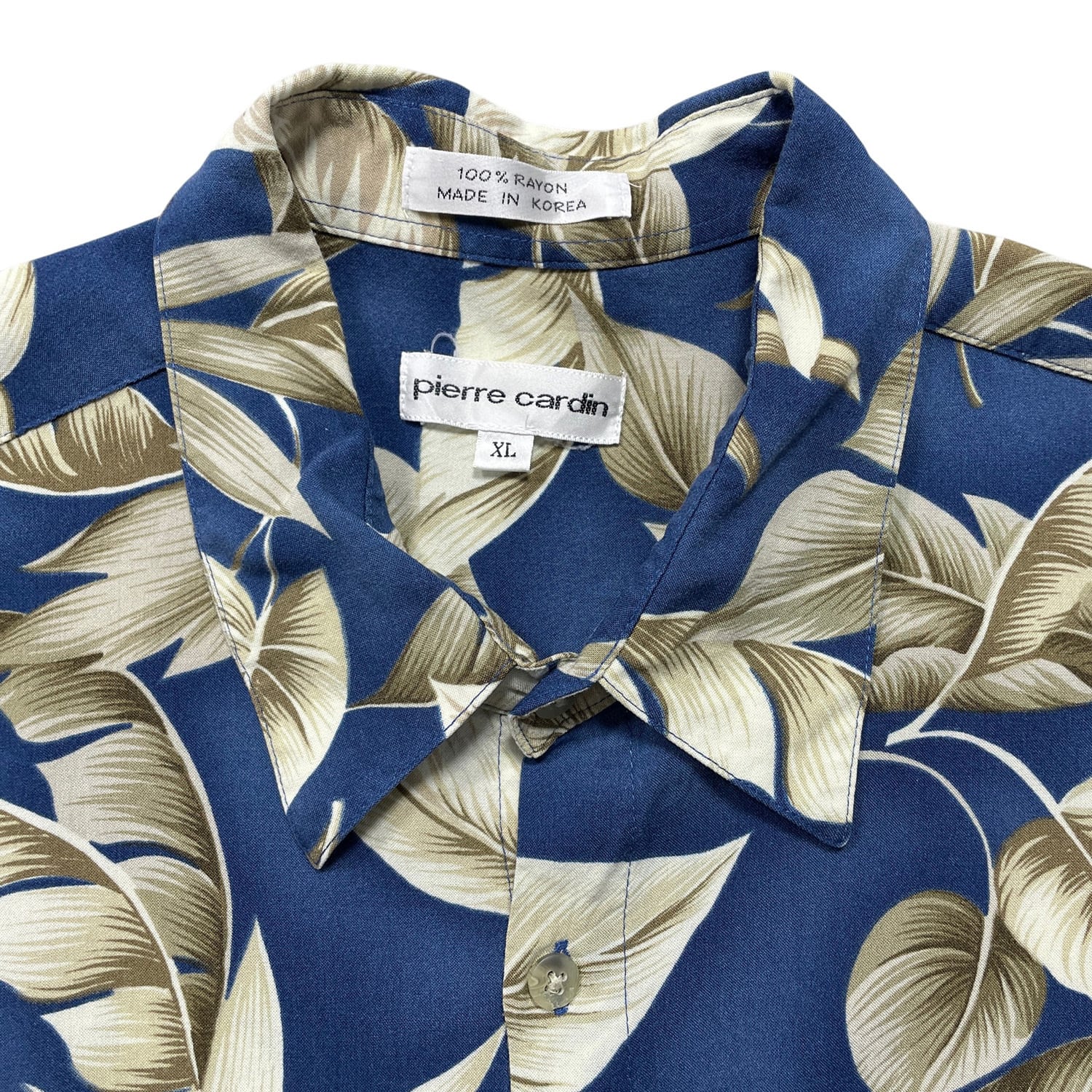 USA 古着 pierre cardin ピエールカルダン レーヨン アロハシャツ ハワイアンシャツ リーフ柄 メンズXL ネイビー BF4064