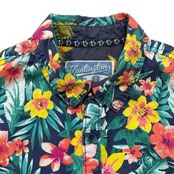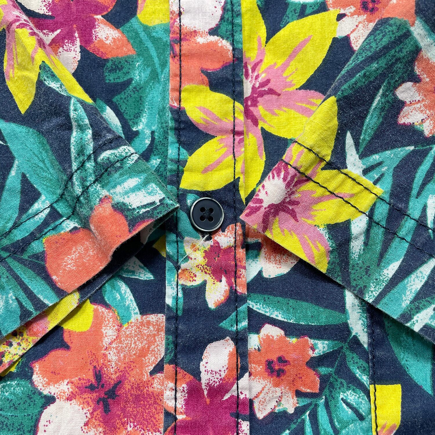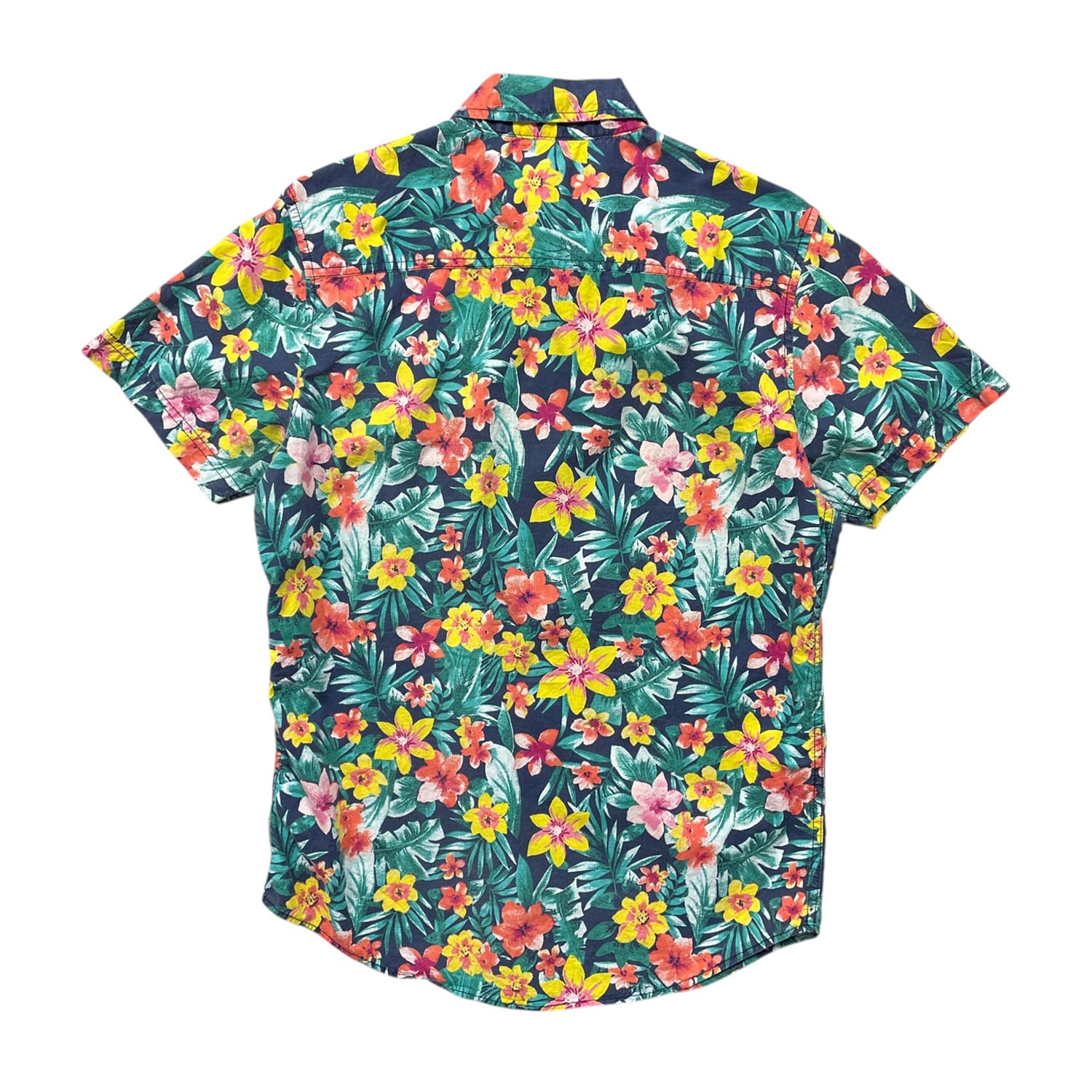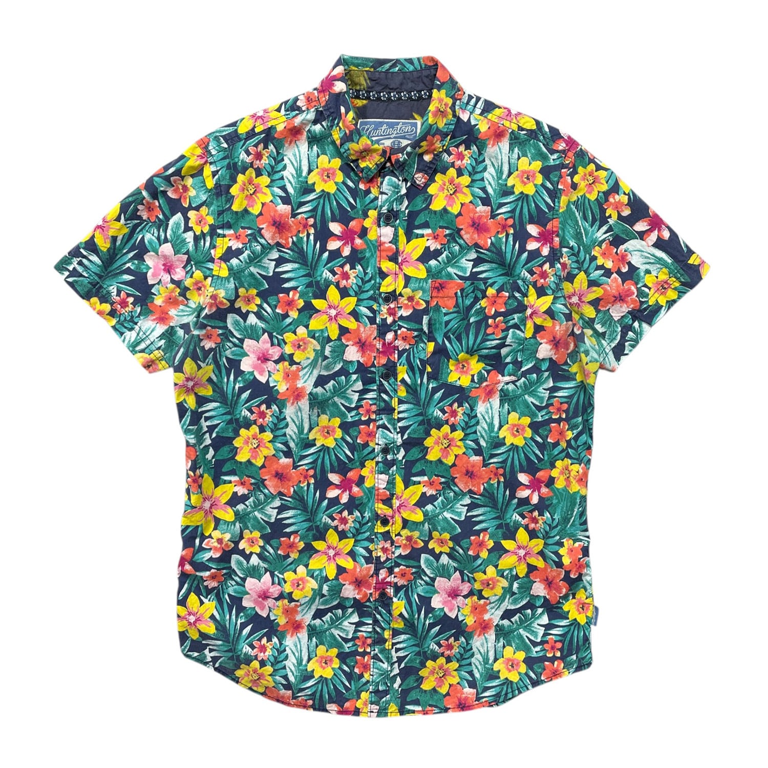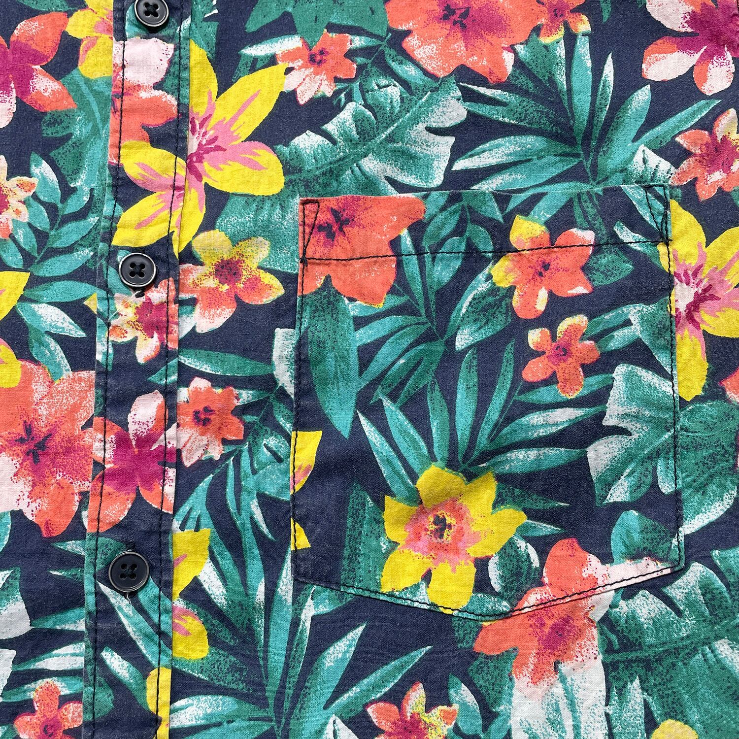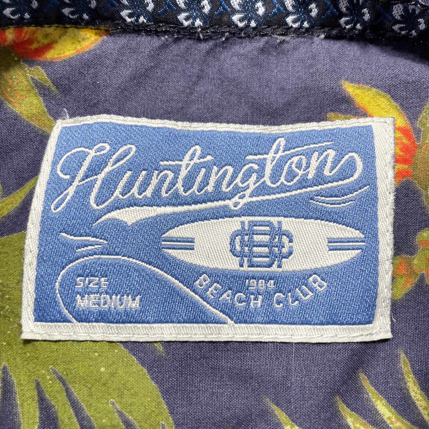 USA 古着 Huntington Beach Club コットン アロハシャツ ハワイアンシャツ 花柄 総柄 メンズM グリーン BF4075