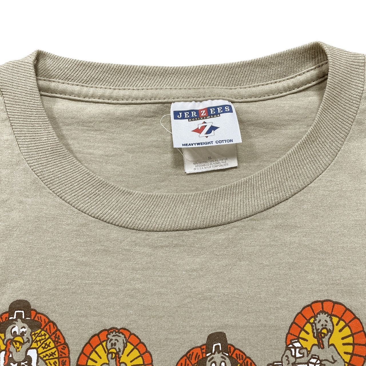 USA 古着 JERZEES ジャージーズ ターキー 七面鳥 クルーネック Tシャツ プリント メンズXL ベージュ BA4955