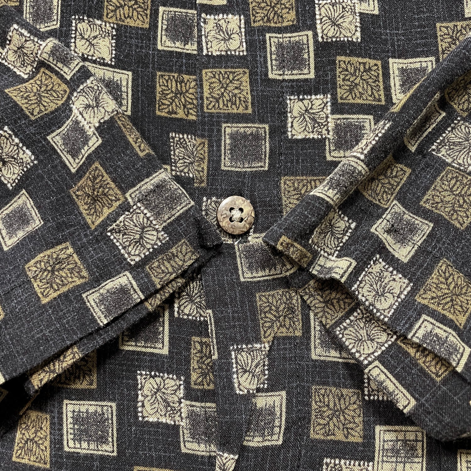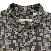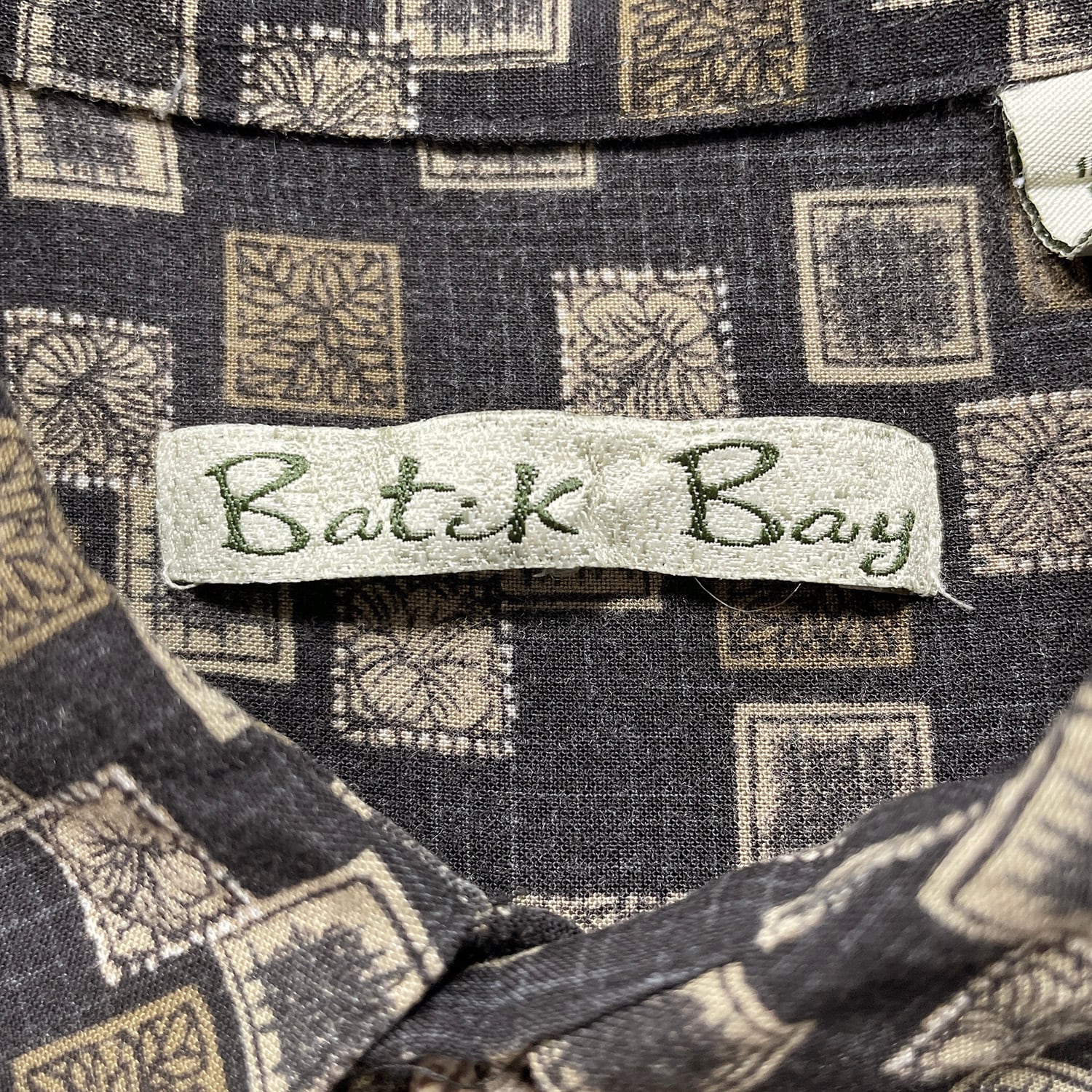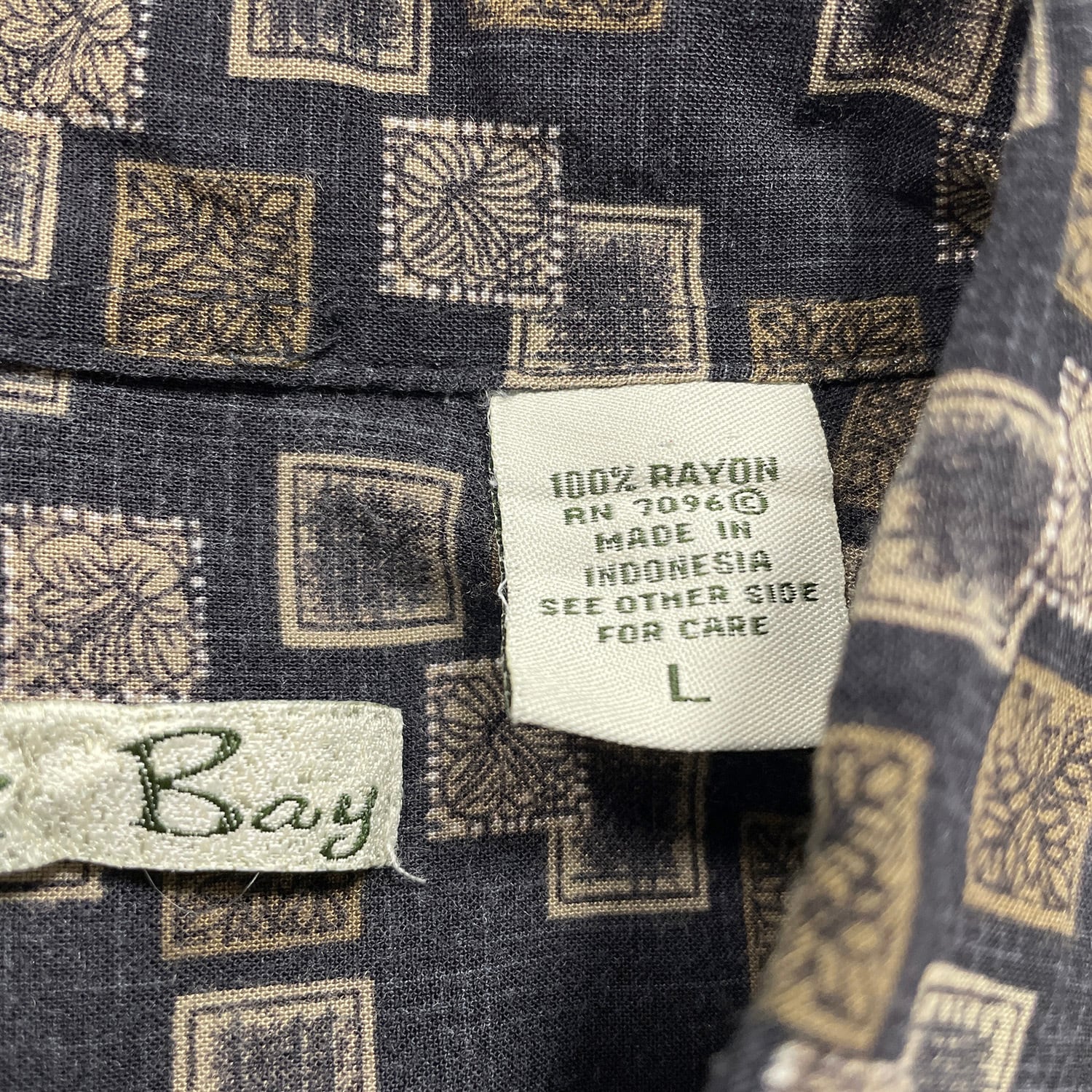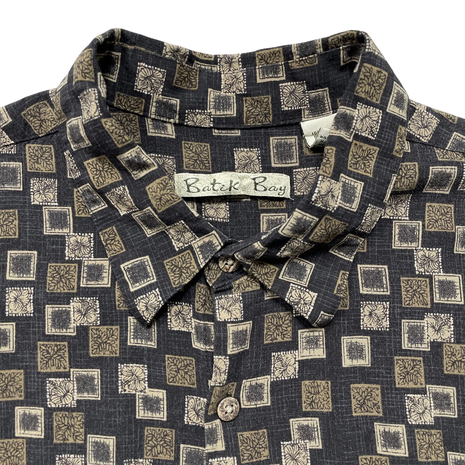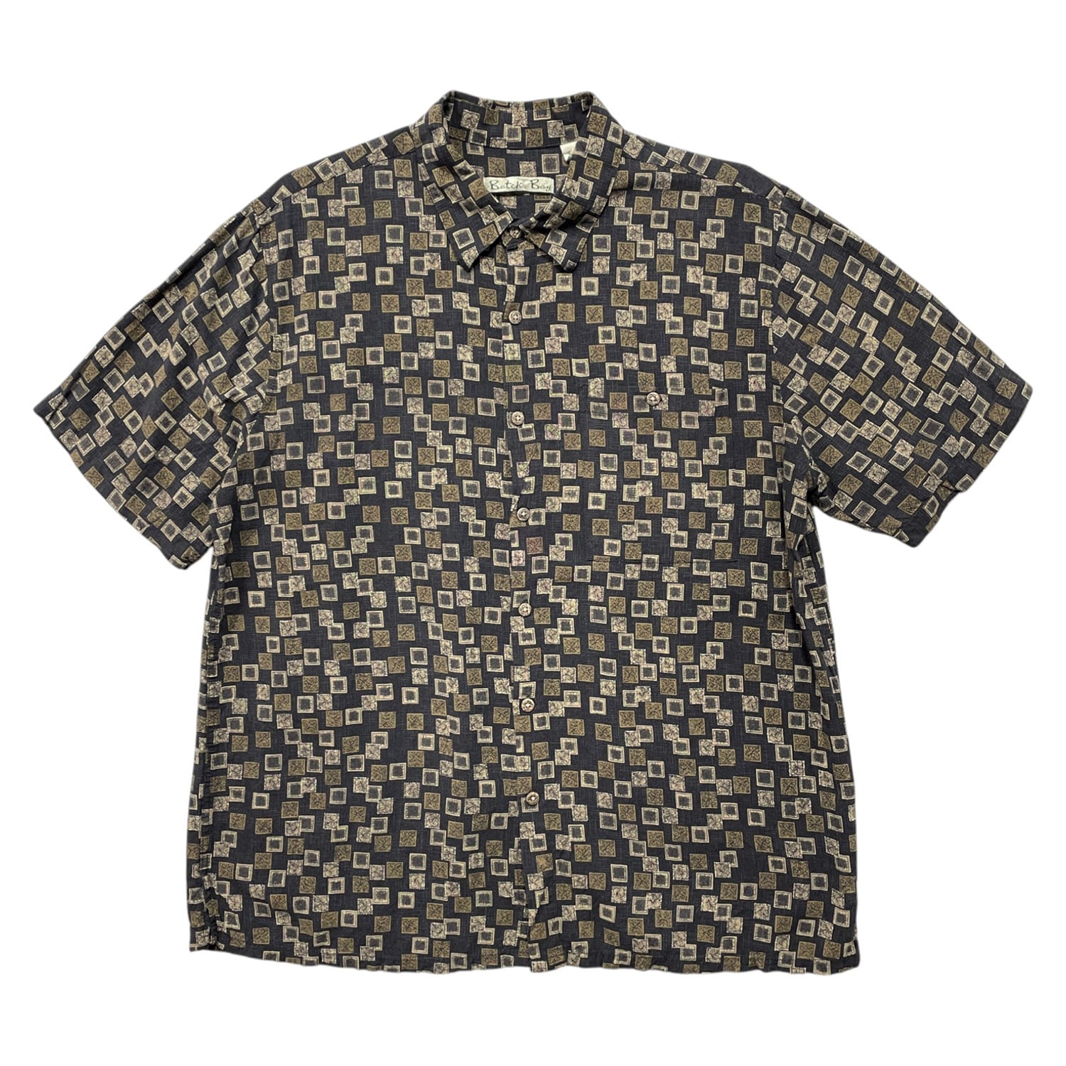 USA 古着 Batik Bay バティックベイ レーヨン アロハシャツ ハワイアンシャツ 総柄 メンズL ブラウン BF4088