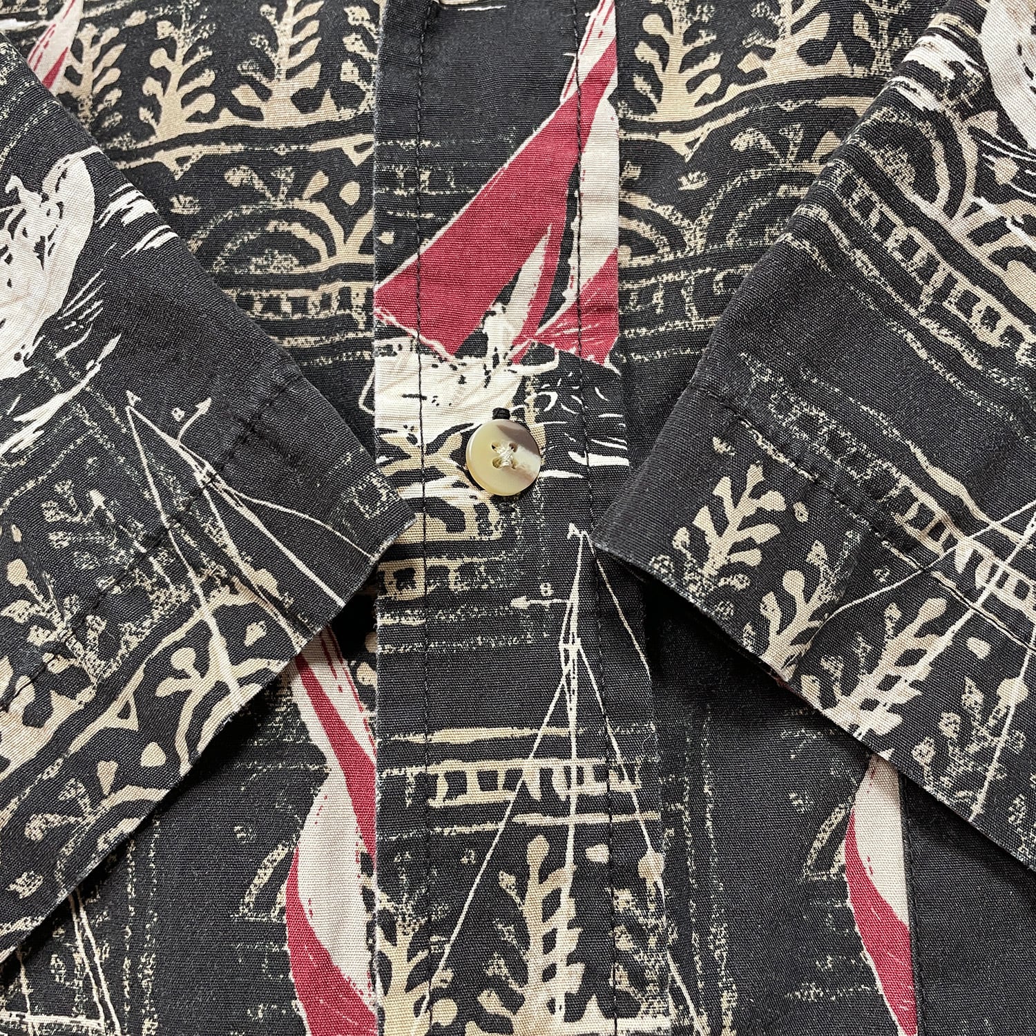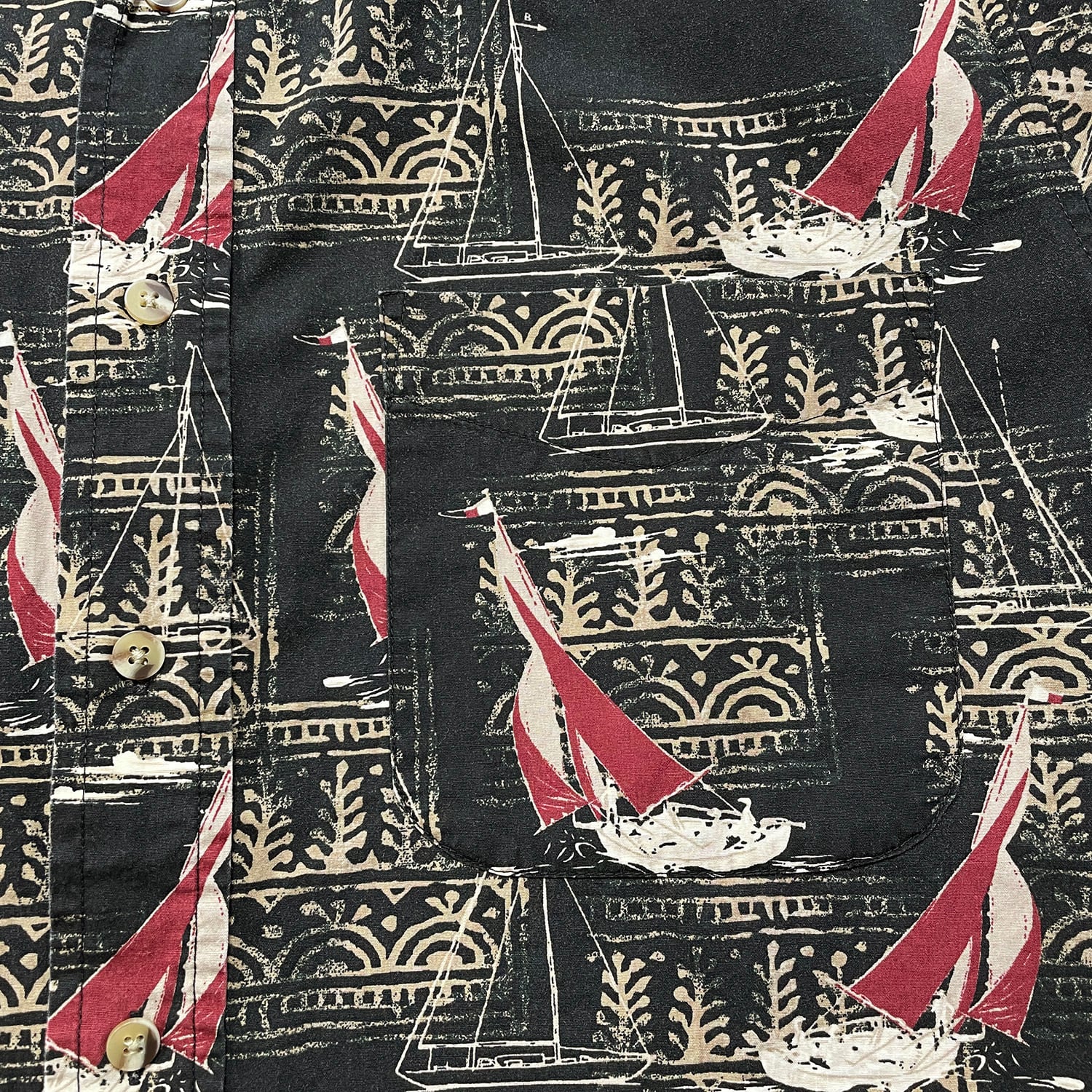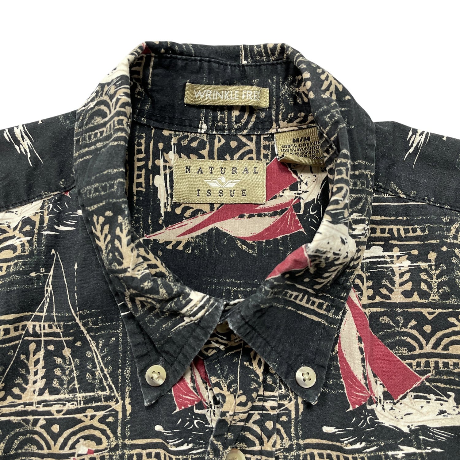 USA 古着 NATURAL ISSUE ナチュラルイシュー コットン ボタンダウン アロハシャツ ハワイアンシャツ ヨット柄 メンズM ブラック BF4089