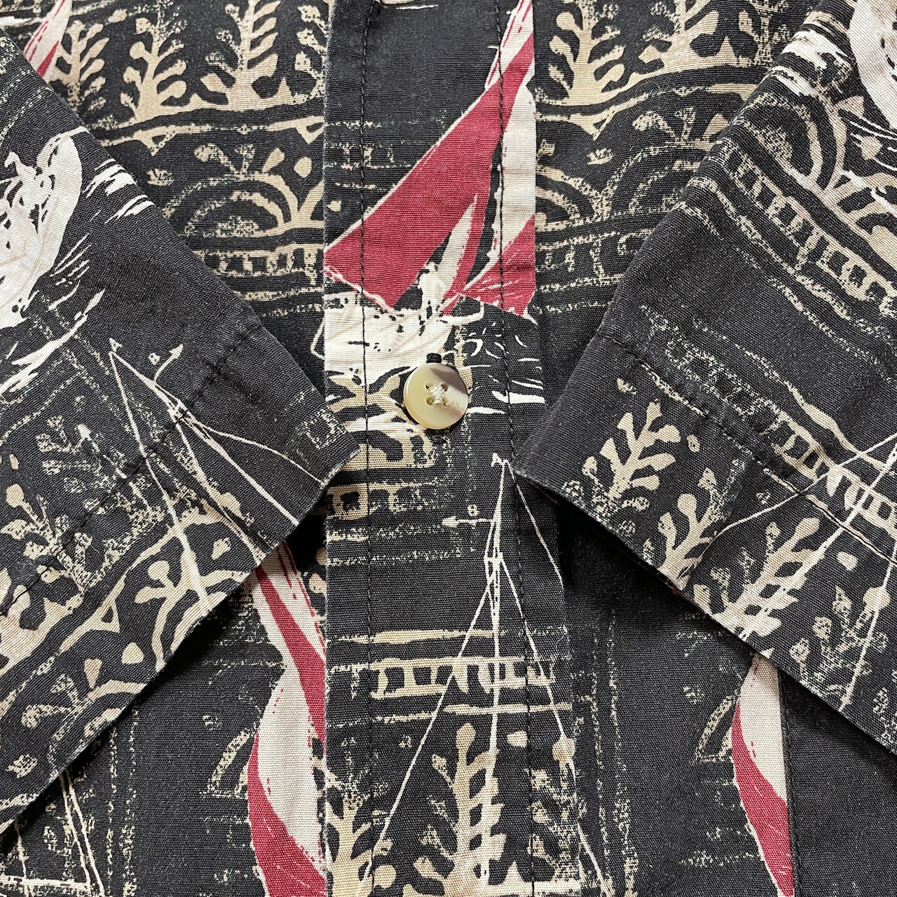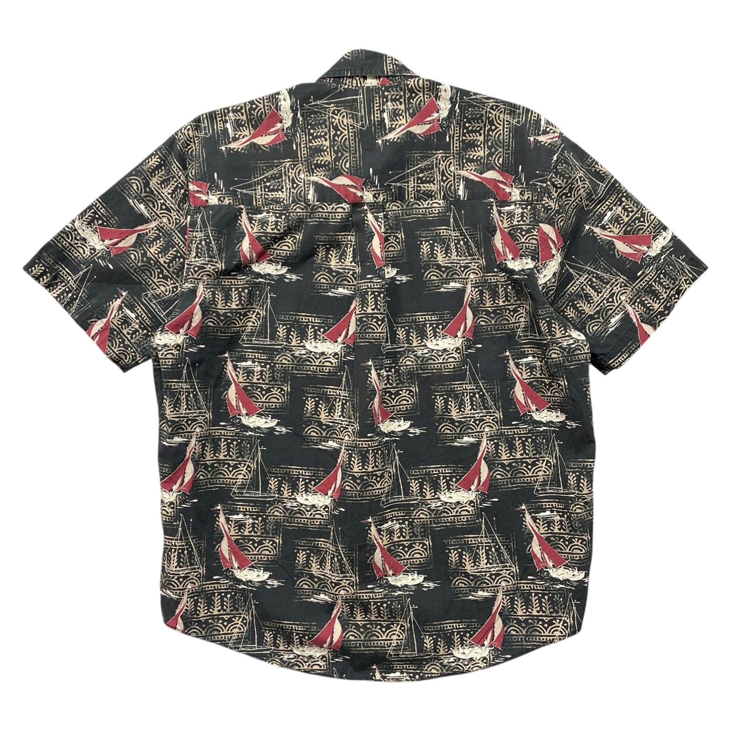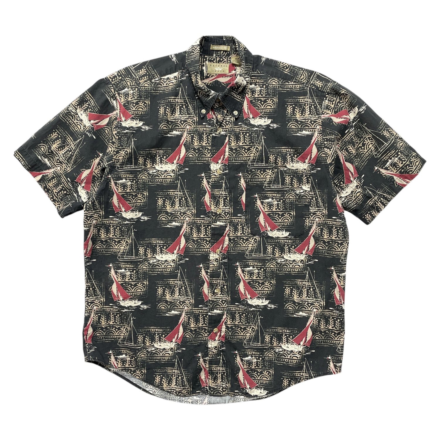 USA 古着 NATURAL ISSUE ナチュラルイシュー コットン ボタンダウン アロハシャツ ハワイアンシャツ ヨット柄 メンズM ブラック BF4089
