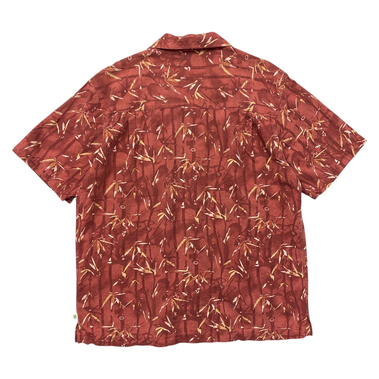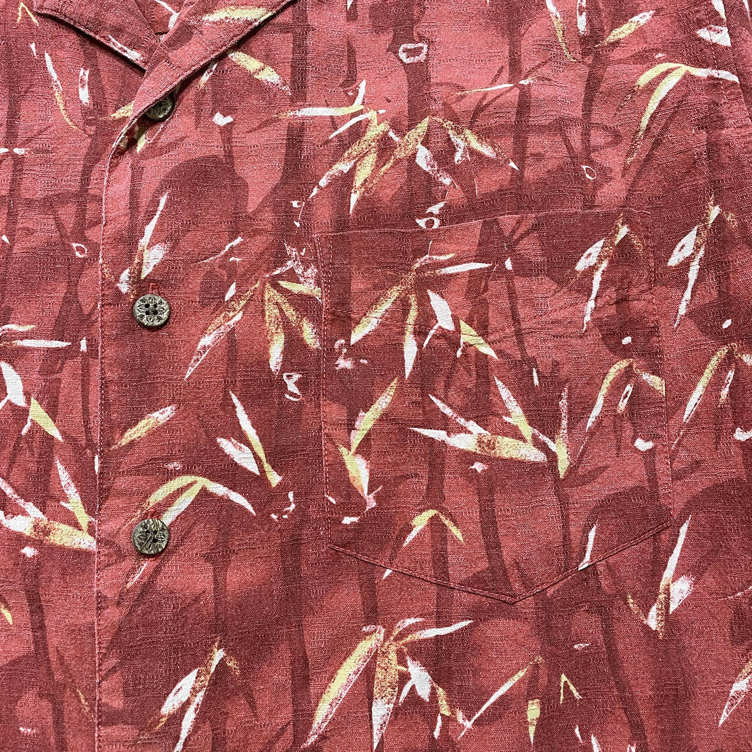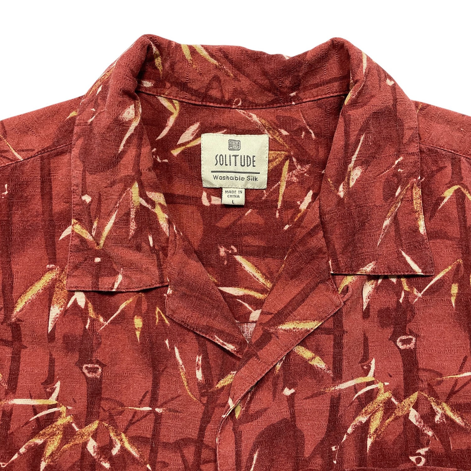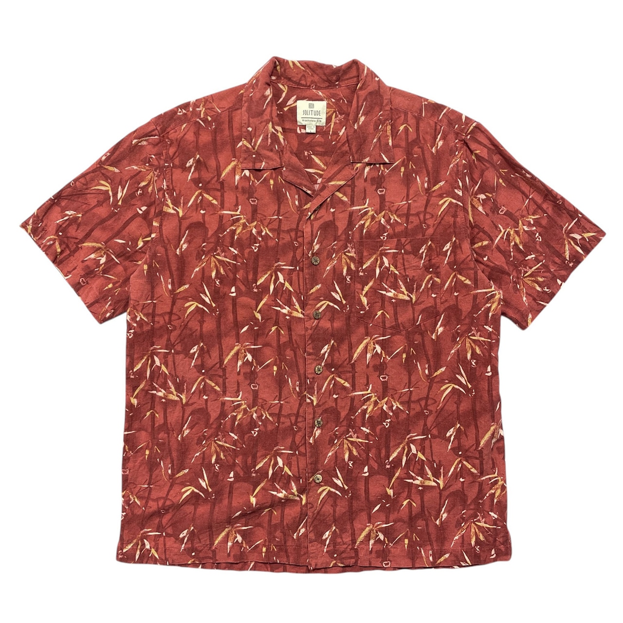 USA 古着 SOLITUDE ソリチュード シルク 開襟 アロハシャツ ハワイアンシャツ バンブー柄 竹 メンズL マルーン BF4118
