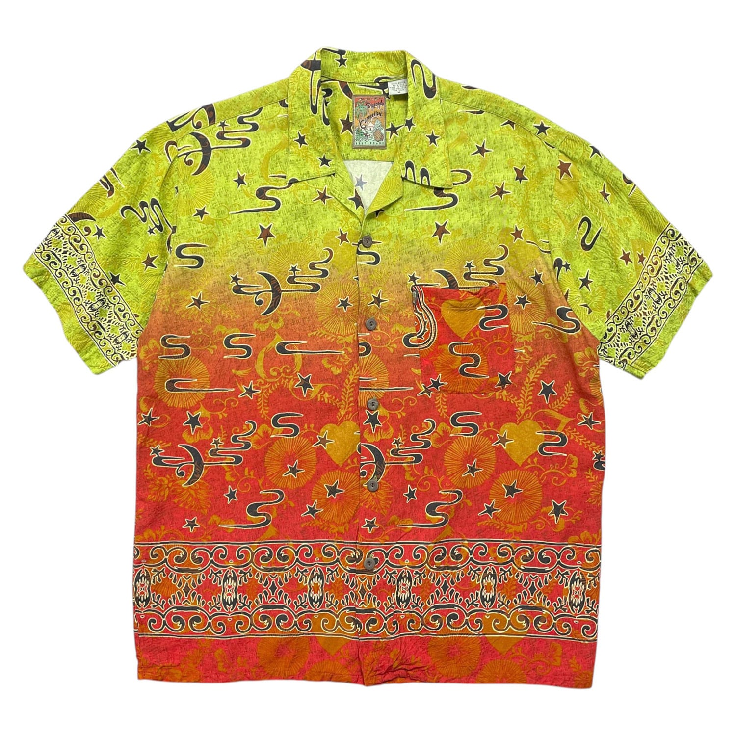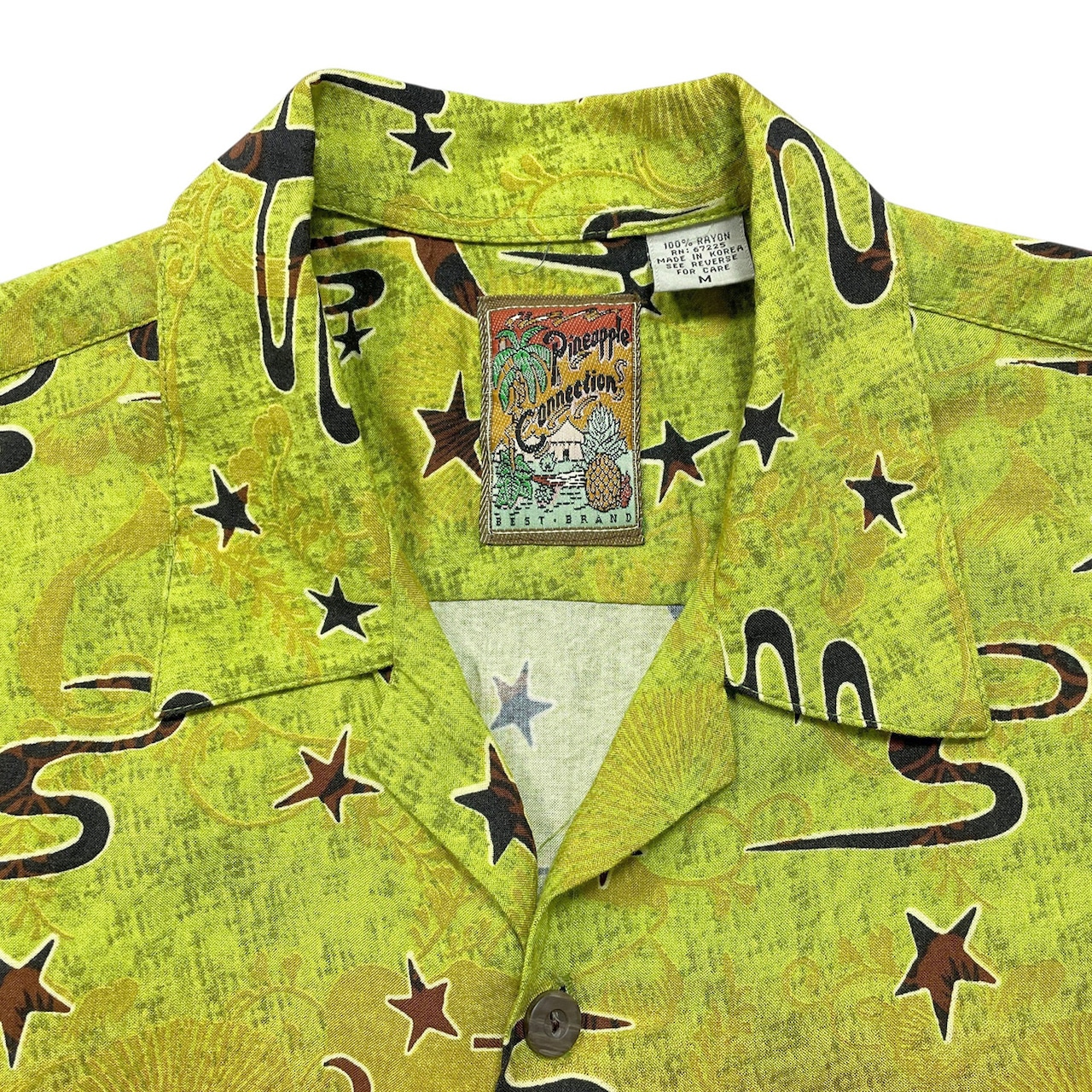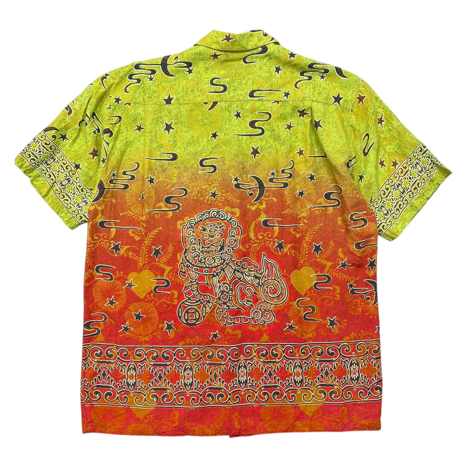 USA 古着 パイナップルコネクション レーヨン 開襟 アロハシャツ ハワイアンシャツ シーサー 狛犬 グラデーション メンズM グリーン BF4114