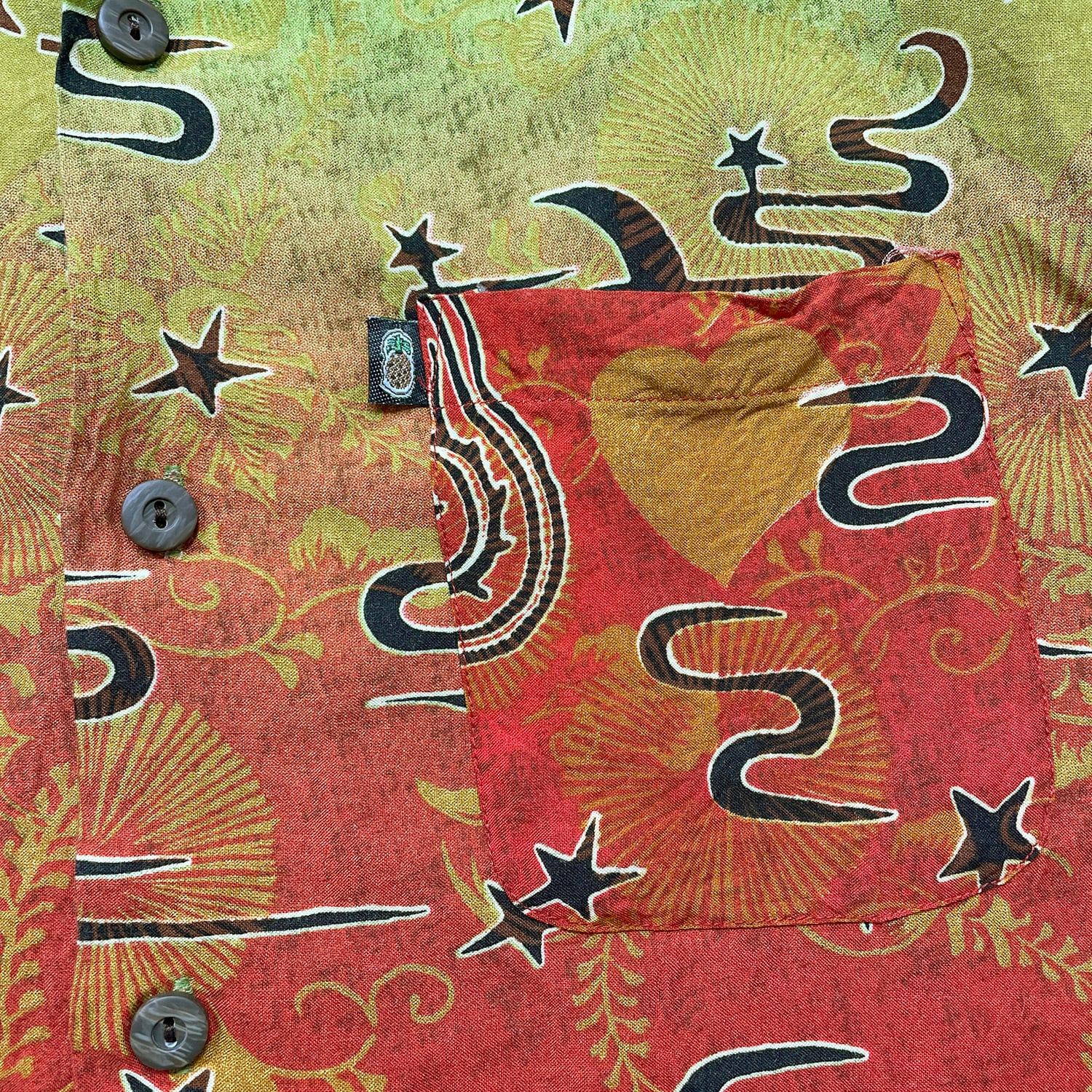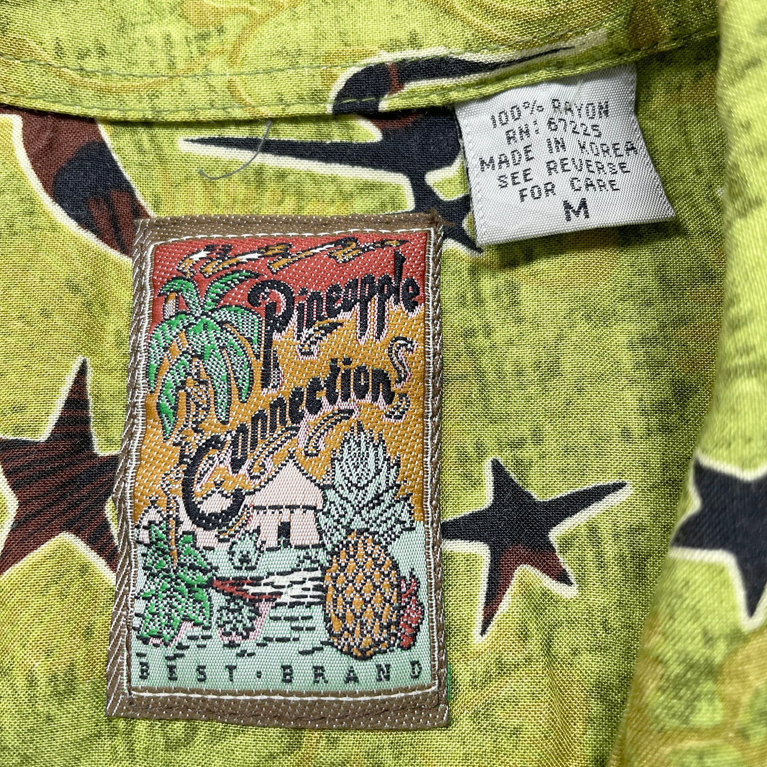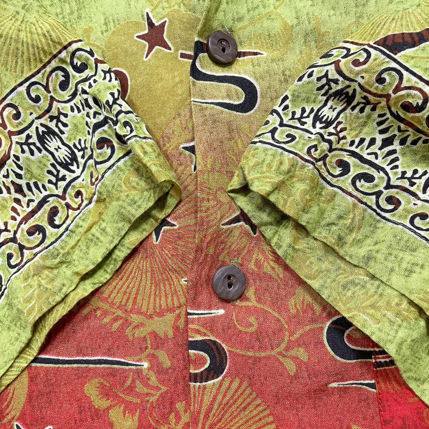 USA 古着 パイナップルコネクション レーヨン 開襟 アロハシャツ ハワイアンシャツ シーサー 狛犬 グラデーション メンズM グリーン BF4114