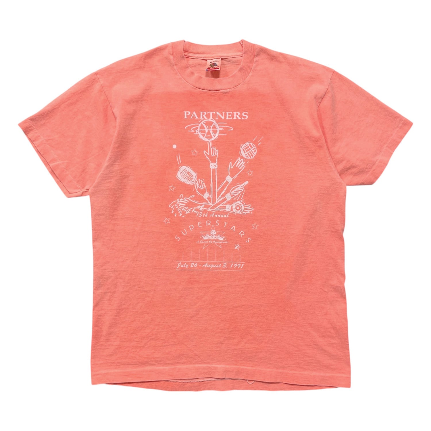 古着 USA製 90S FRUIT OF THE LOOM イベント ヴィンテージ Tシャツ プリント メンズXL ピンク シングルステッチ BA4968