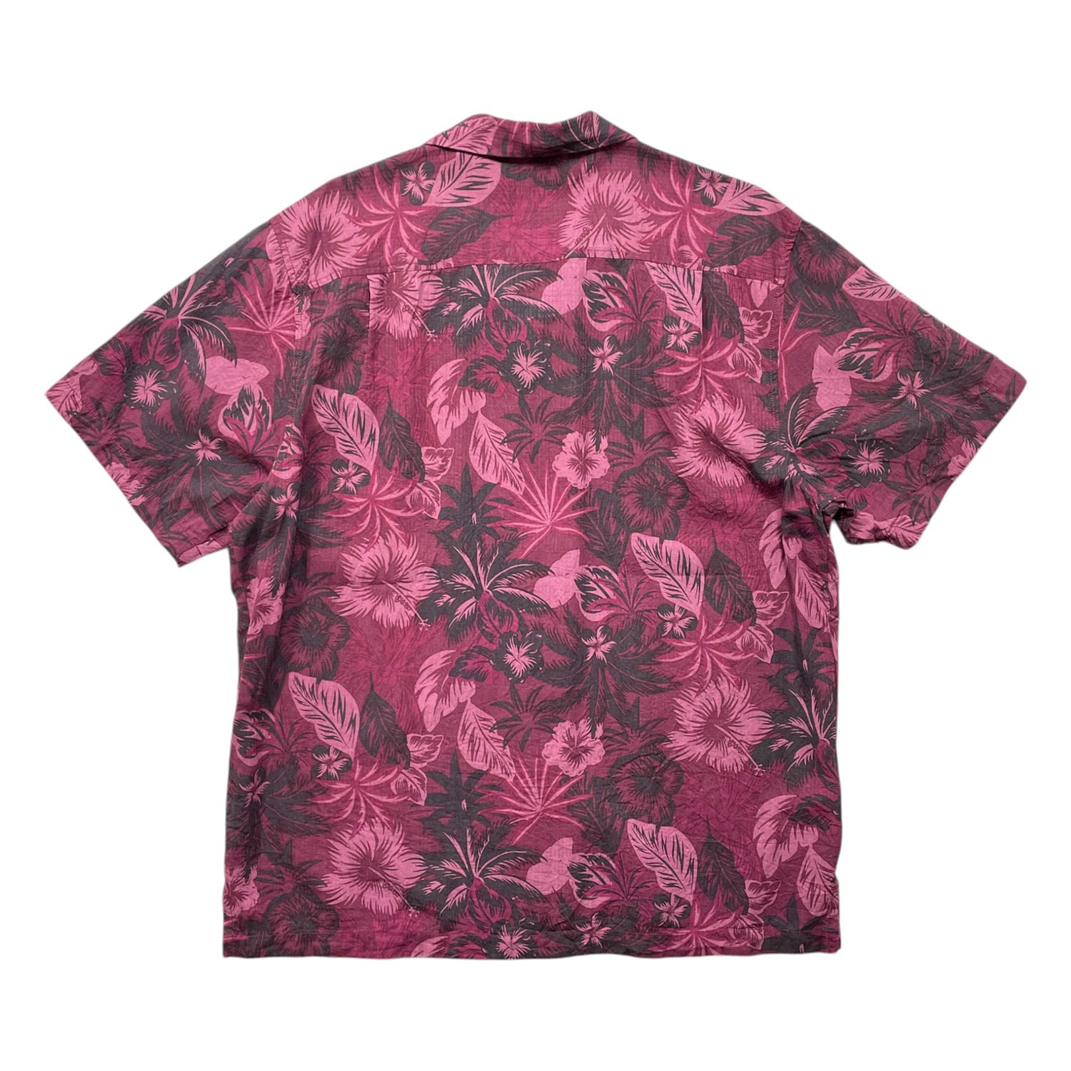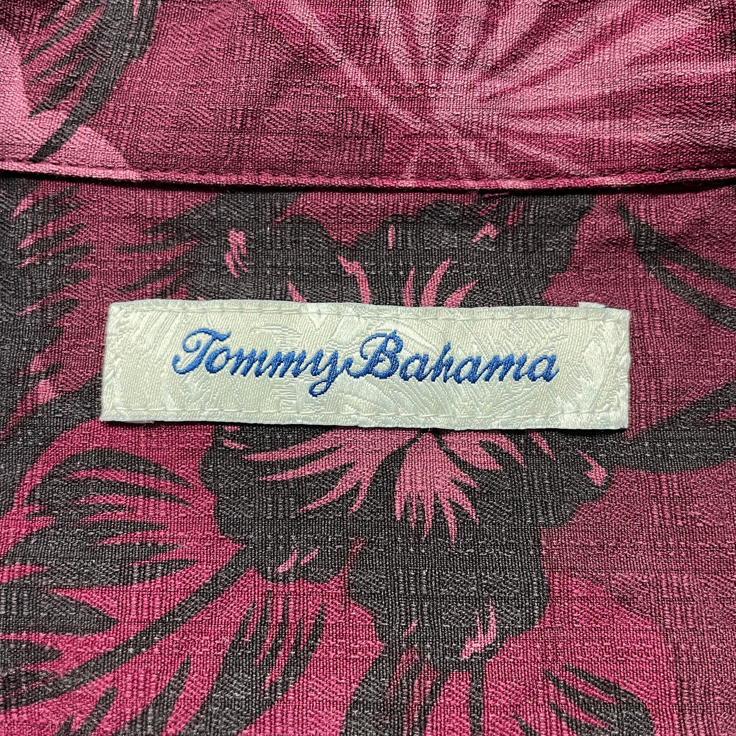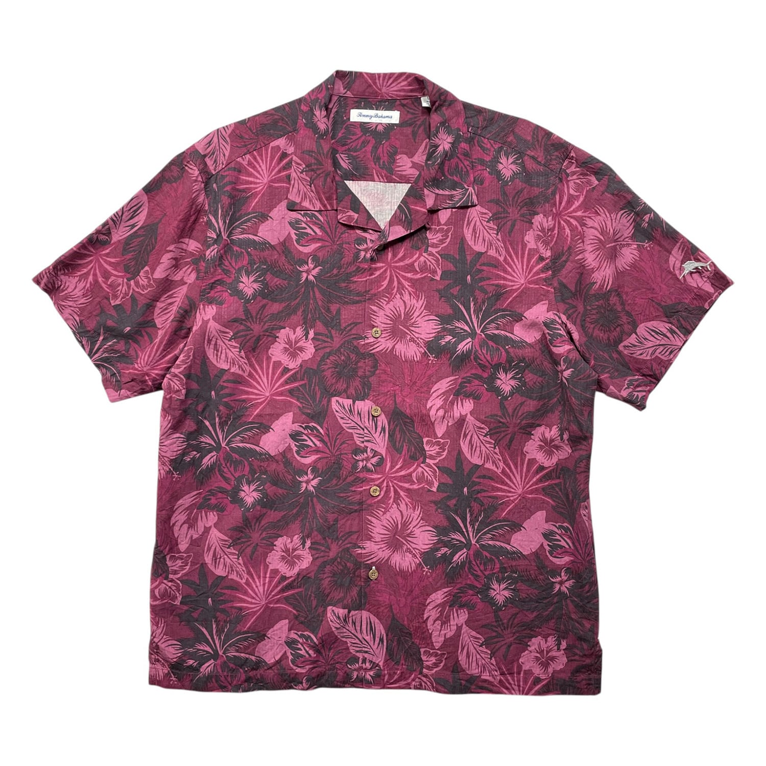 USA 古着 Tommy Bahama トミーバハマ シルク 開襟 アロハシャツ ハワイアンシャツ キャンプシャツ 花柄 総柄 メンズL パープル BF4129