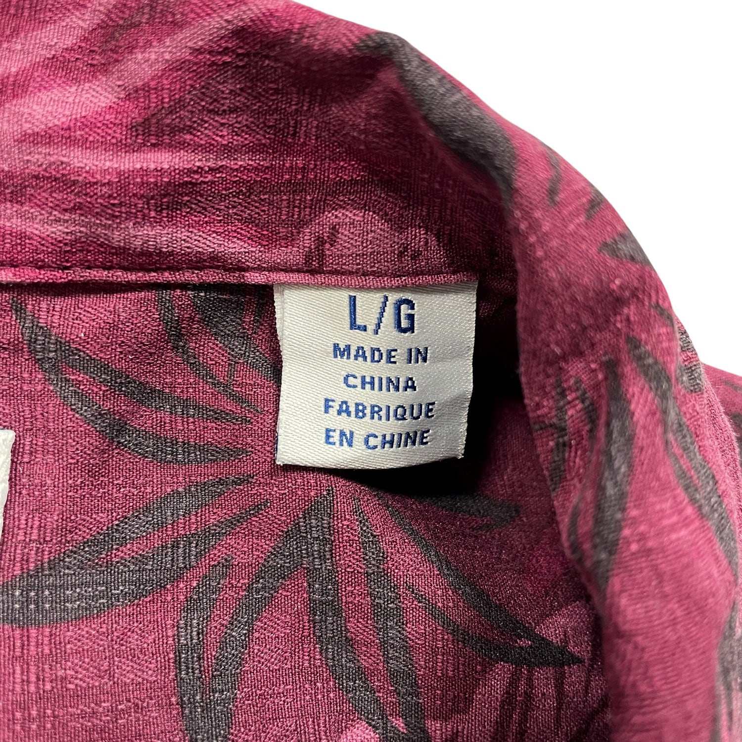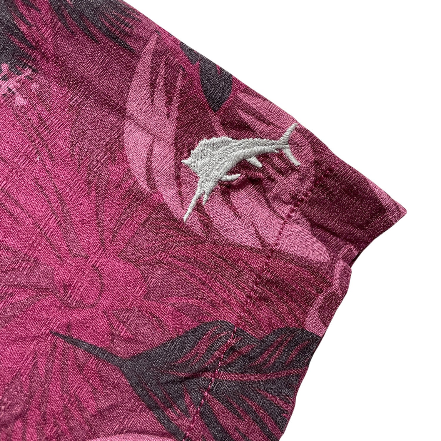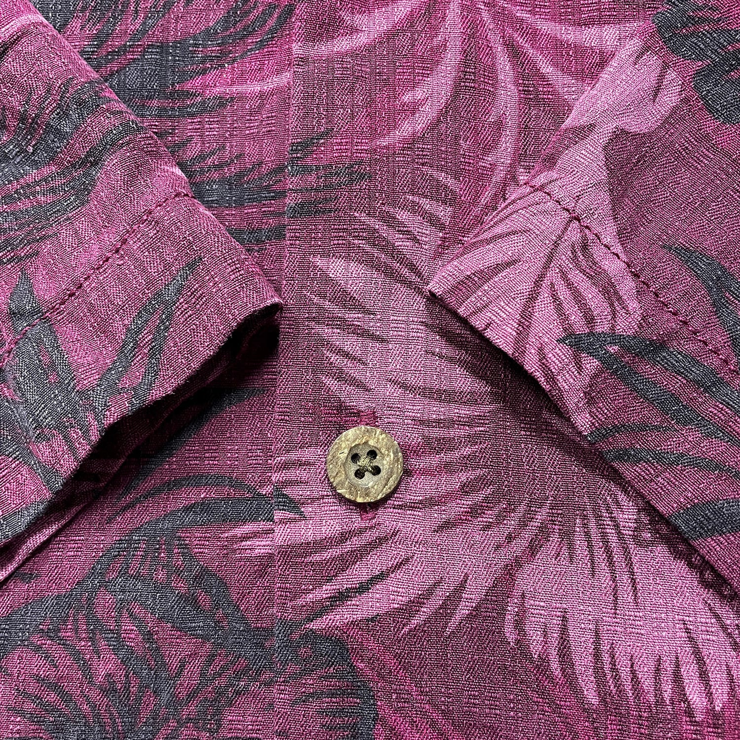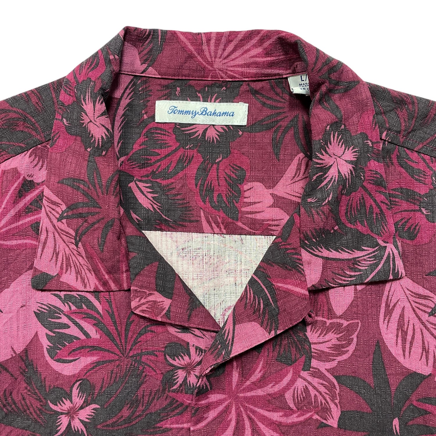 USA 古着 Tommy Bahama トミーバハマ シルク 開襟 アロハシャツ ハワイアンシャツ キャンプシャツ 花柄 総柄 メンズL パープル BF4129