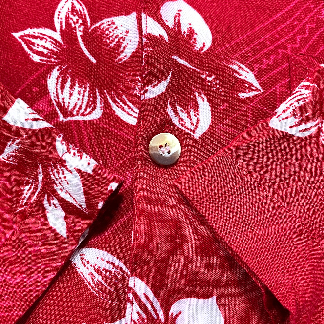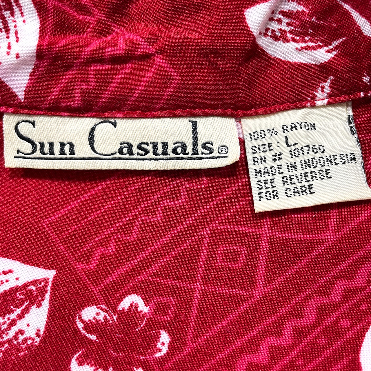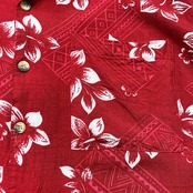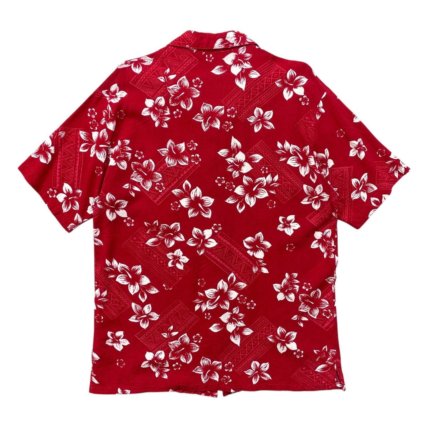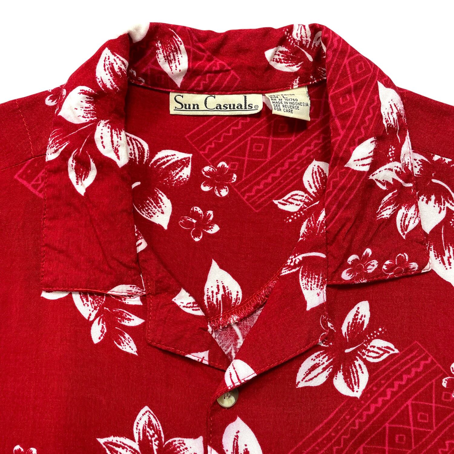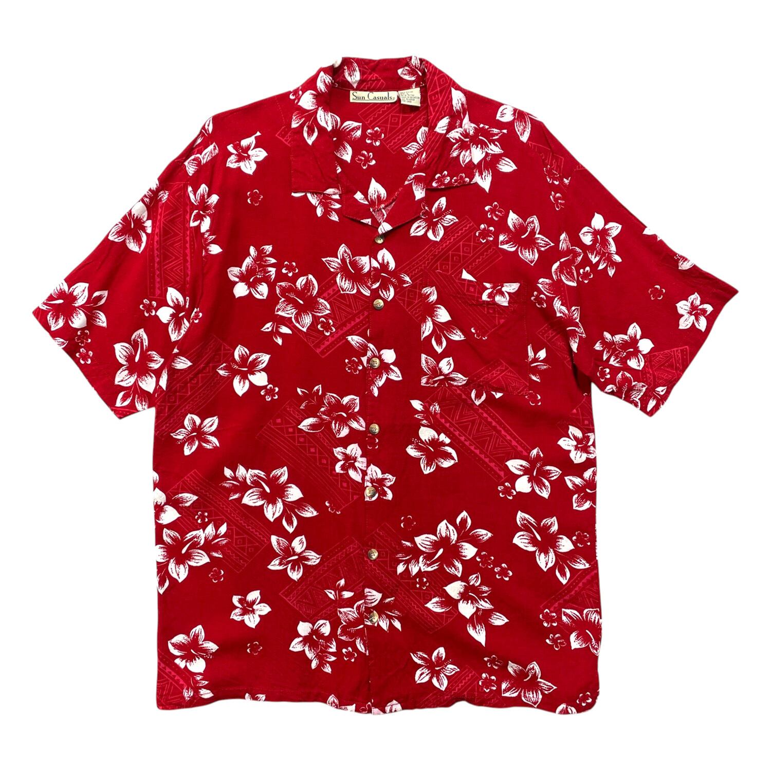 USA 古着 Sun Casuals サンカジュアルズ レーヨン 開襟 アロハシャツ ハワイアンシャツ 花柄 幾何学柄 メンズL レッド BF4148