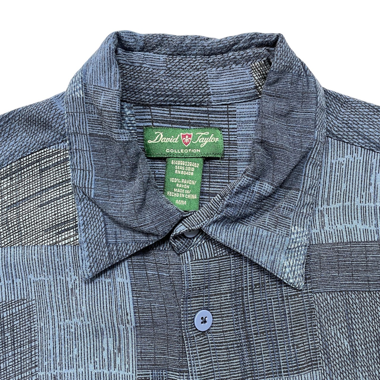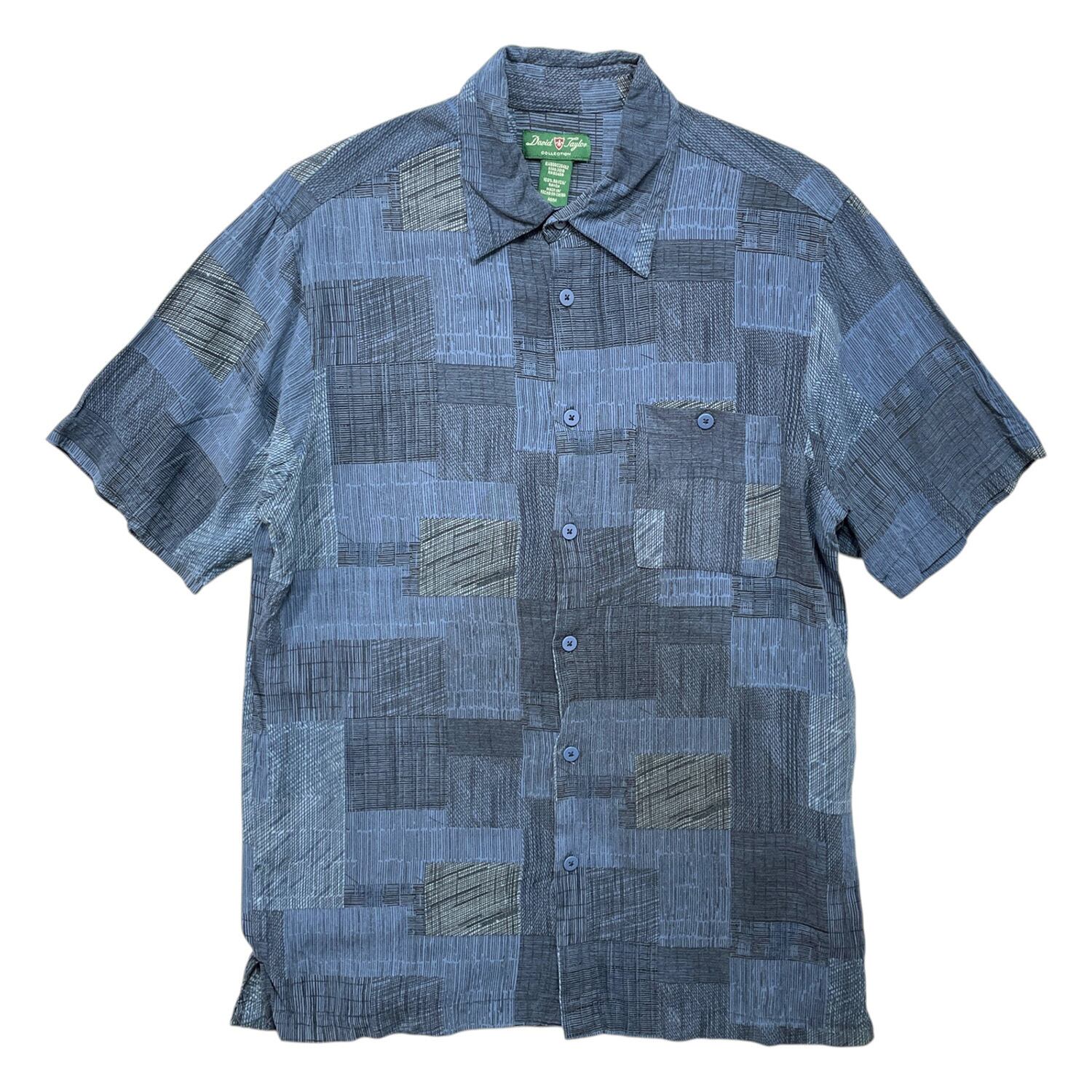 USA 古着 David Taylor デビッドテイラー レーヨン アロハシャツ ハワイアンシャツ パッチワーク柄 メンズM ネイビー BF4152