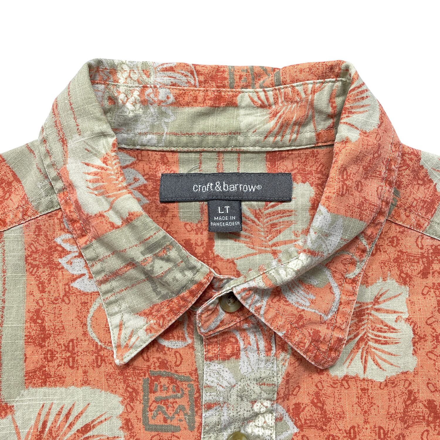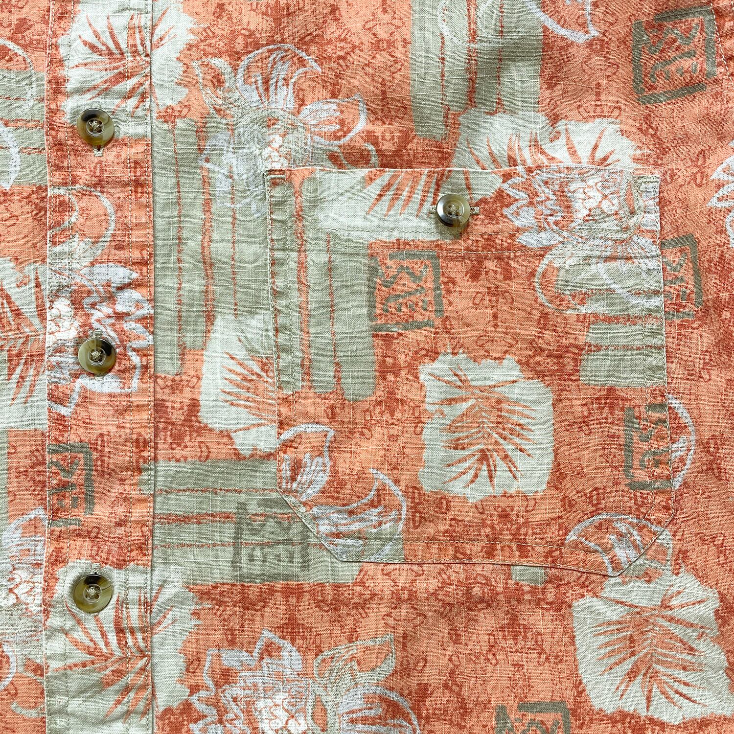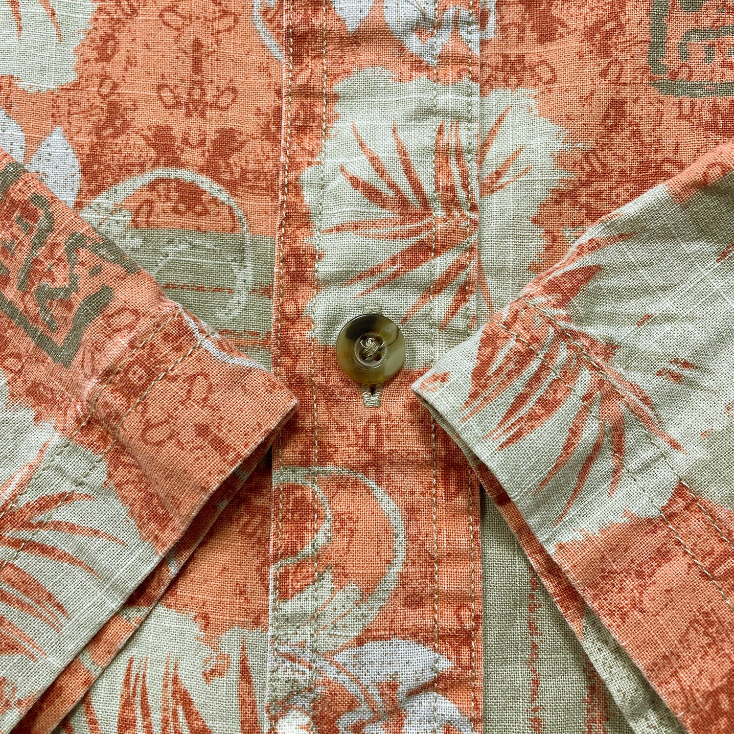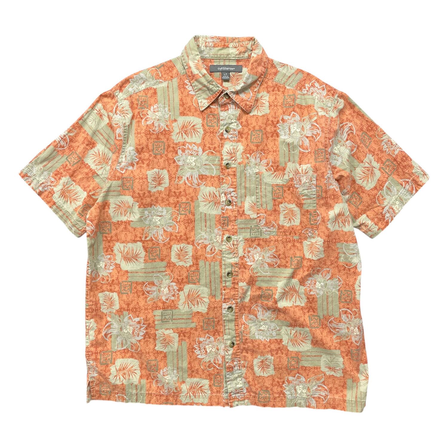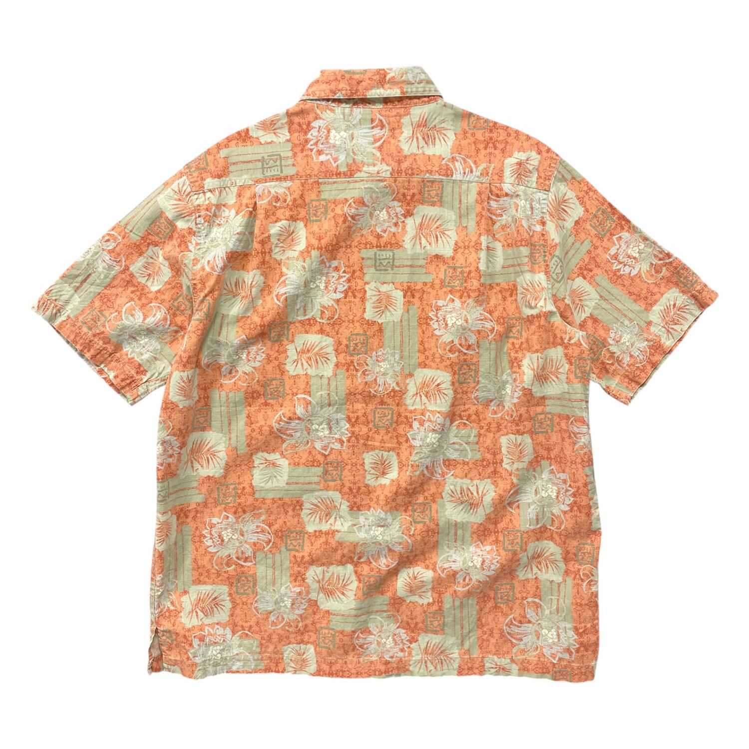 USA 古着 croft & barrow クロフト&バロー アロハシャツ ハワイアンシャツ ボタニカル柄 メンズL オレンジ BF4155