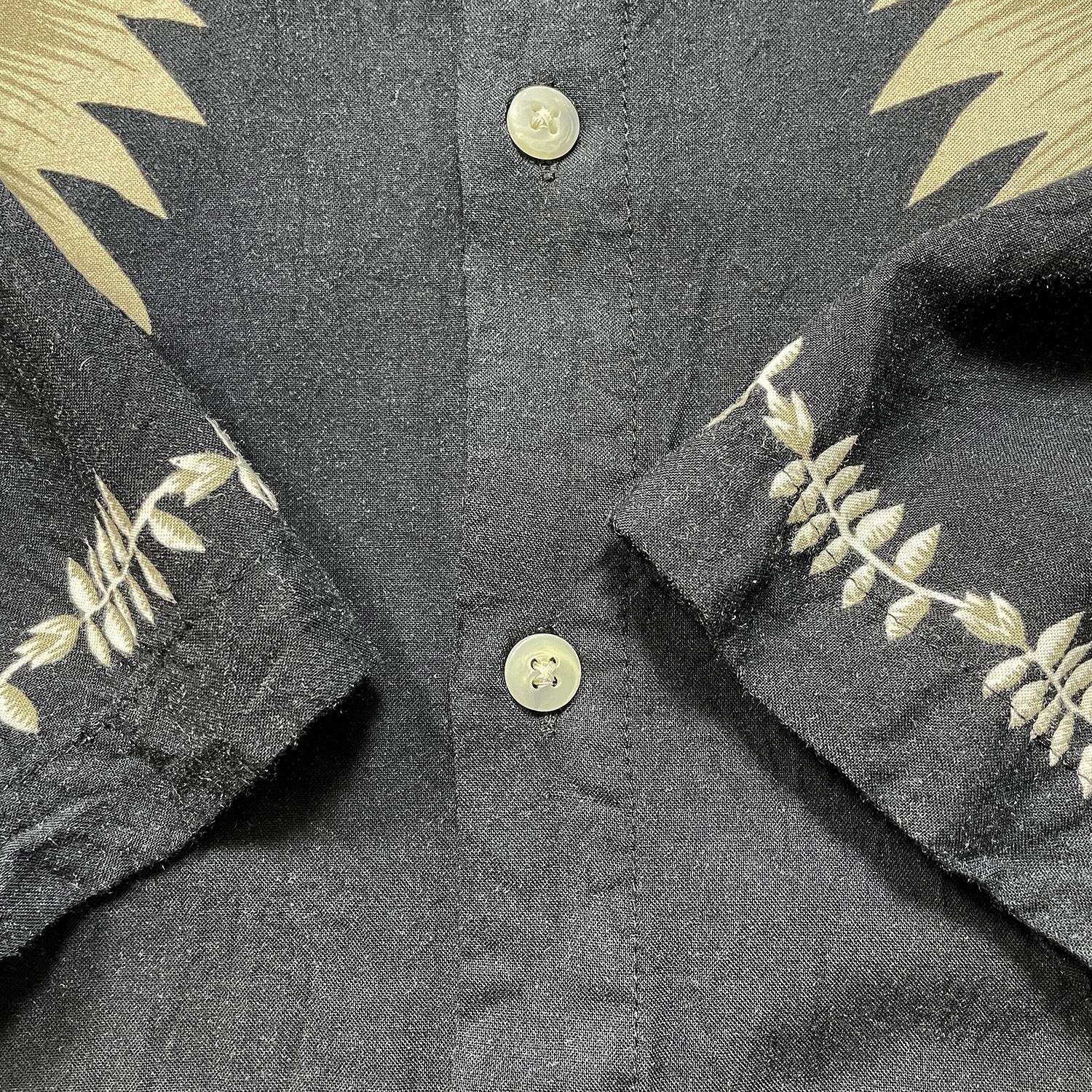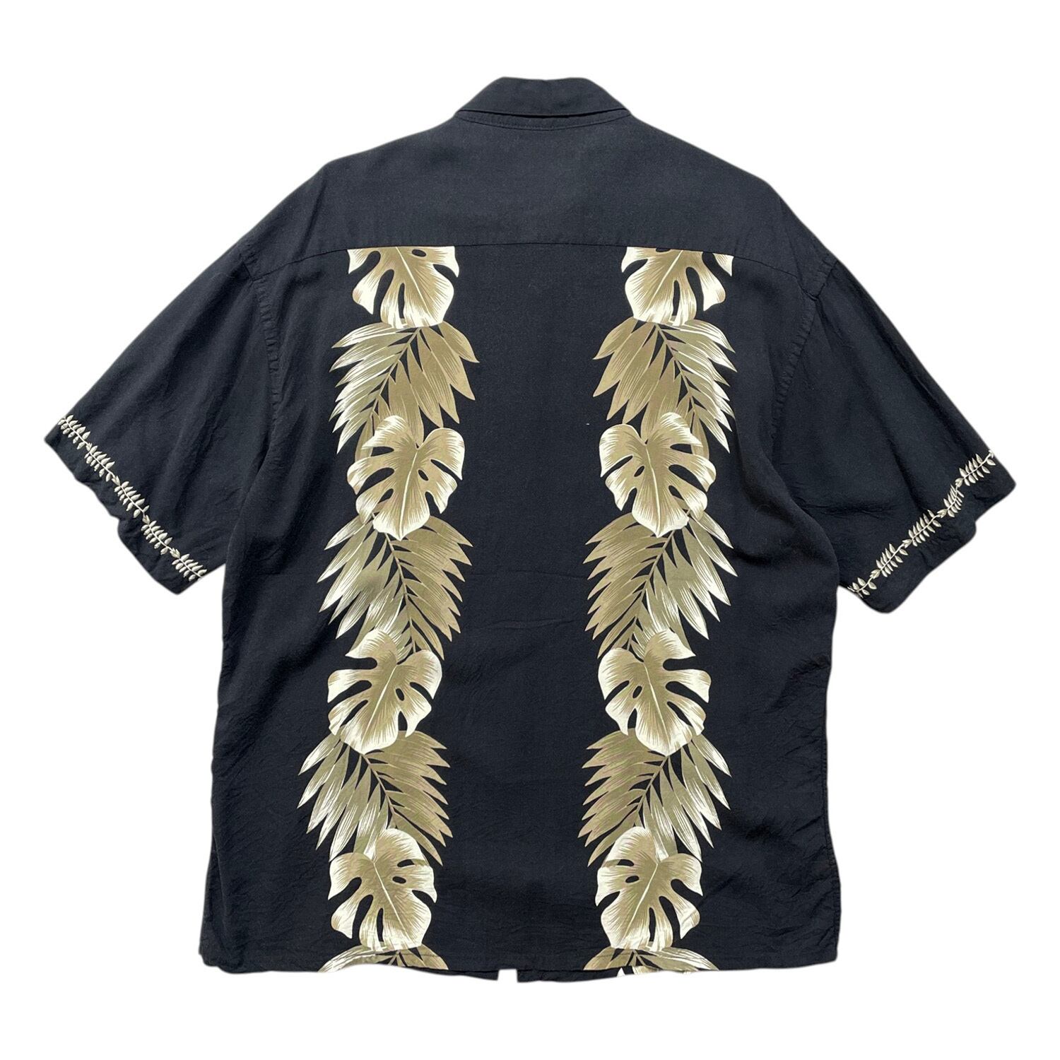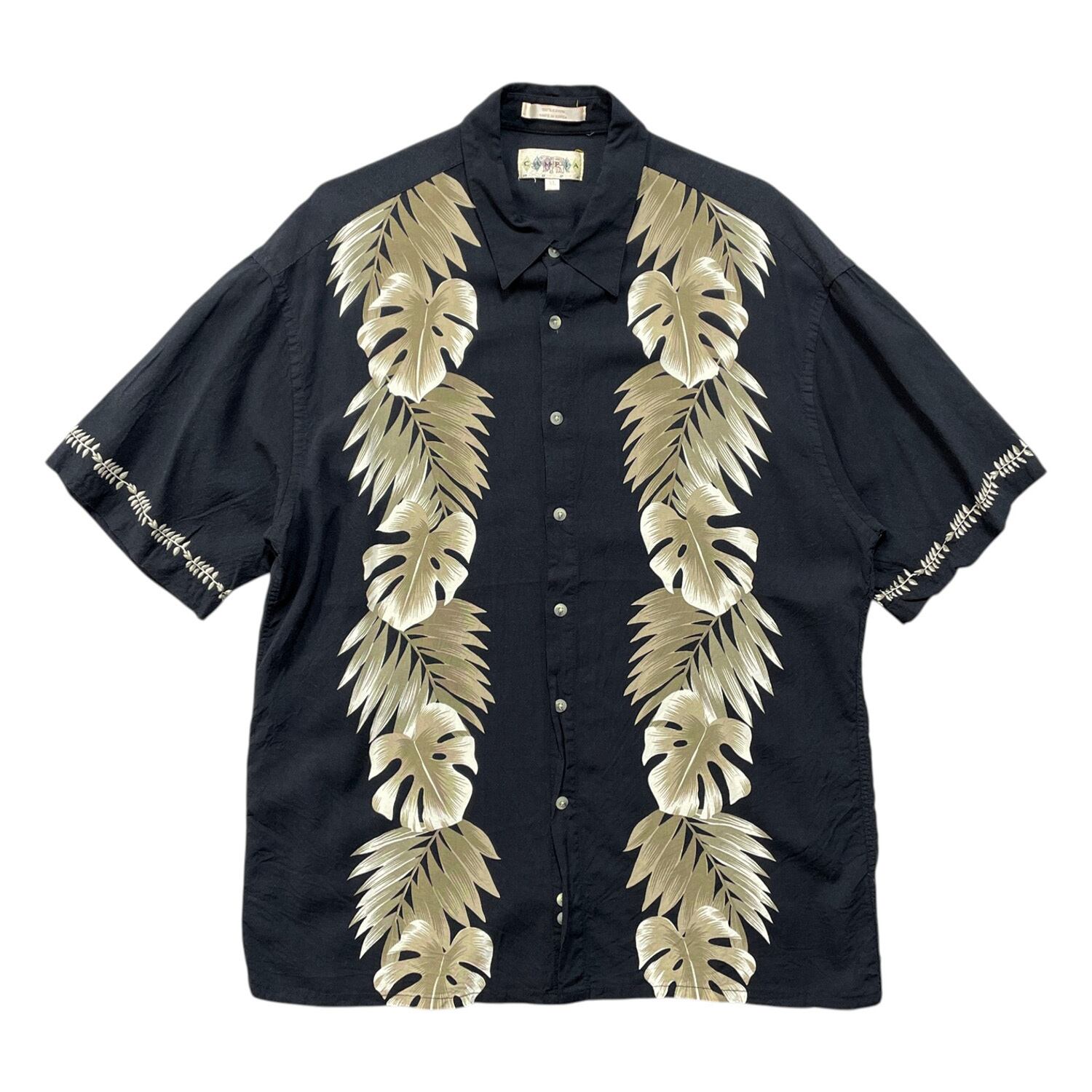 USA 古着 CAMPIA カンピア レーヨン アロハシャツ ハワイアンシャツ モンステラ柄 メンズXL ブラック BF4159