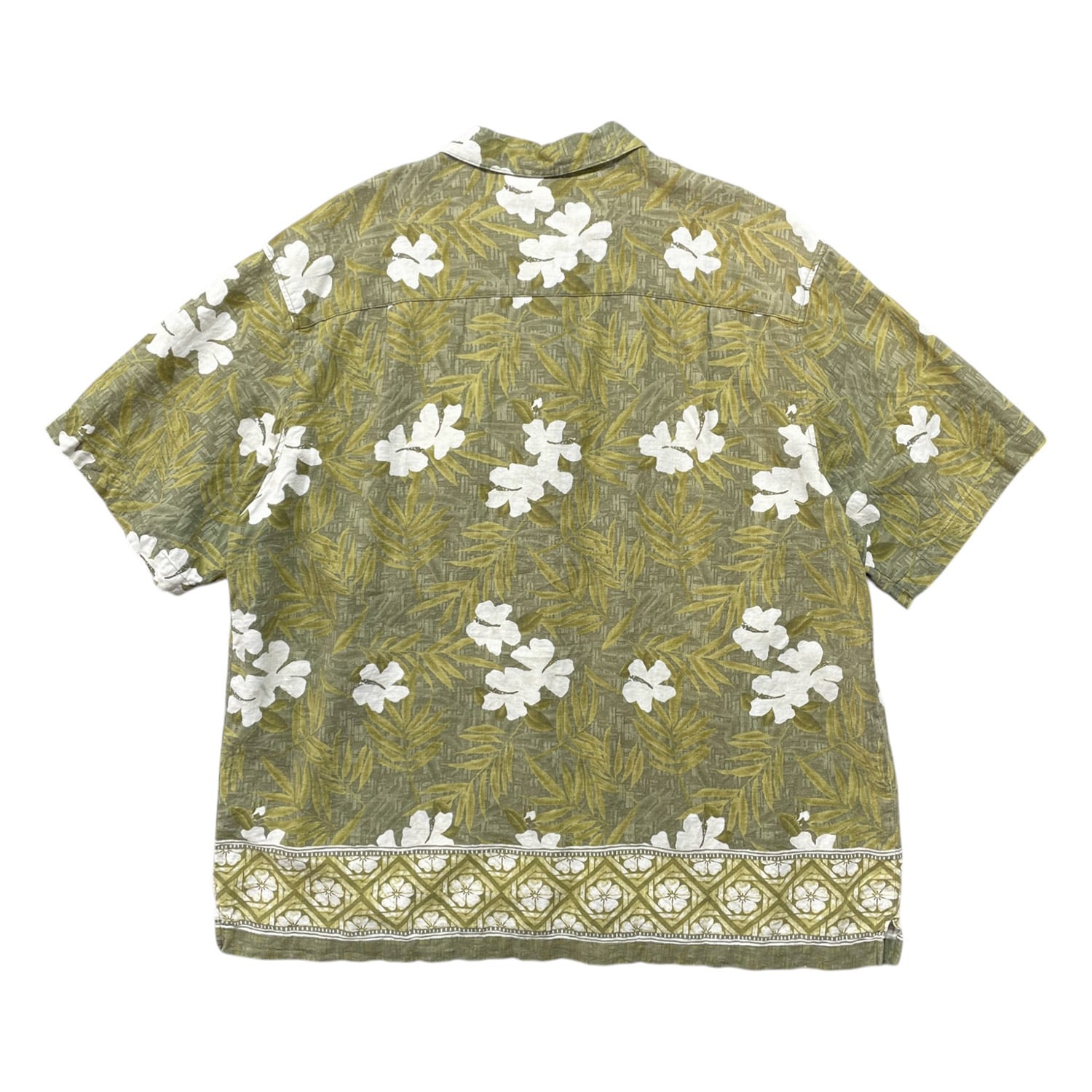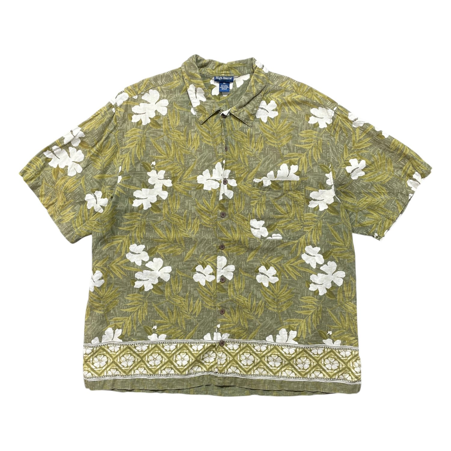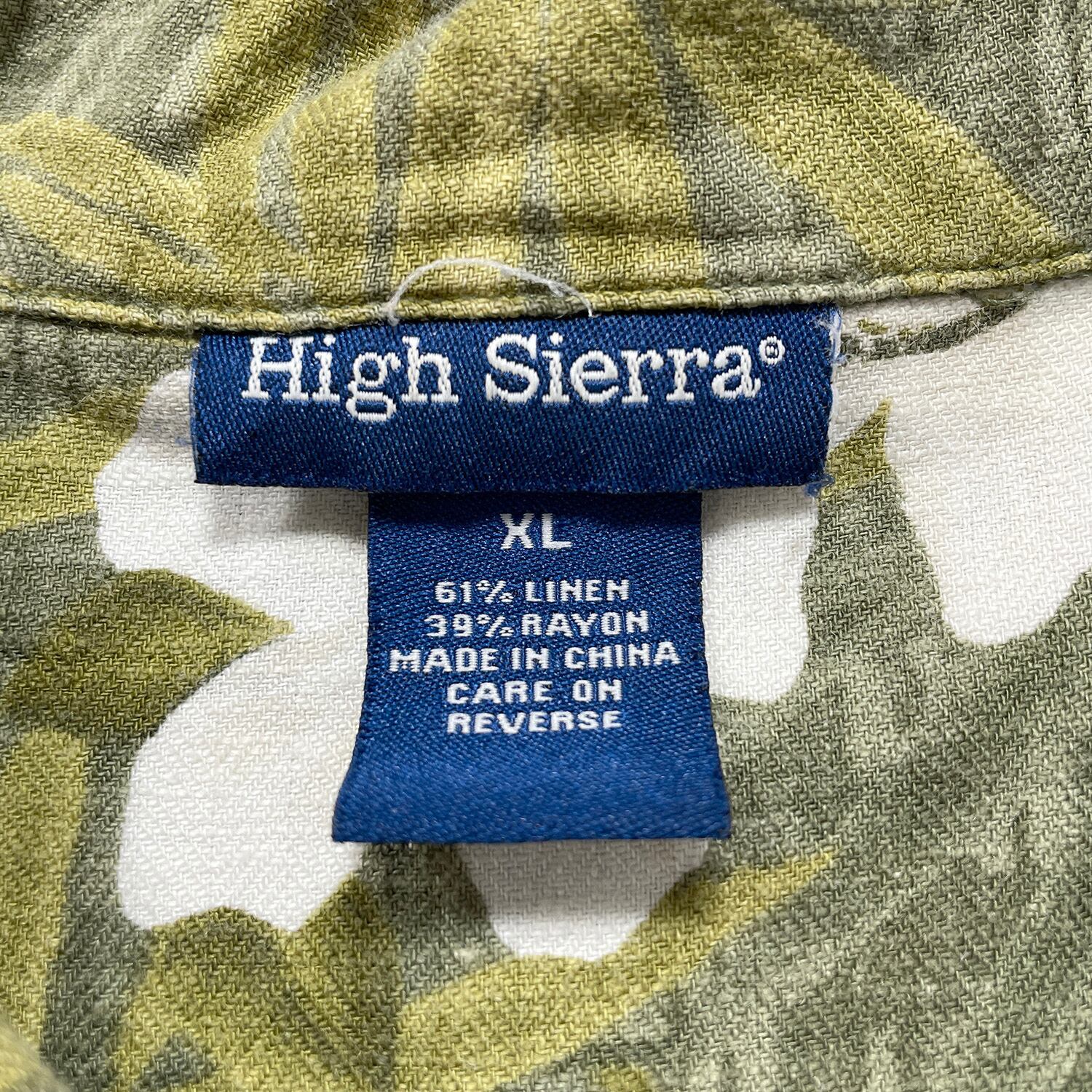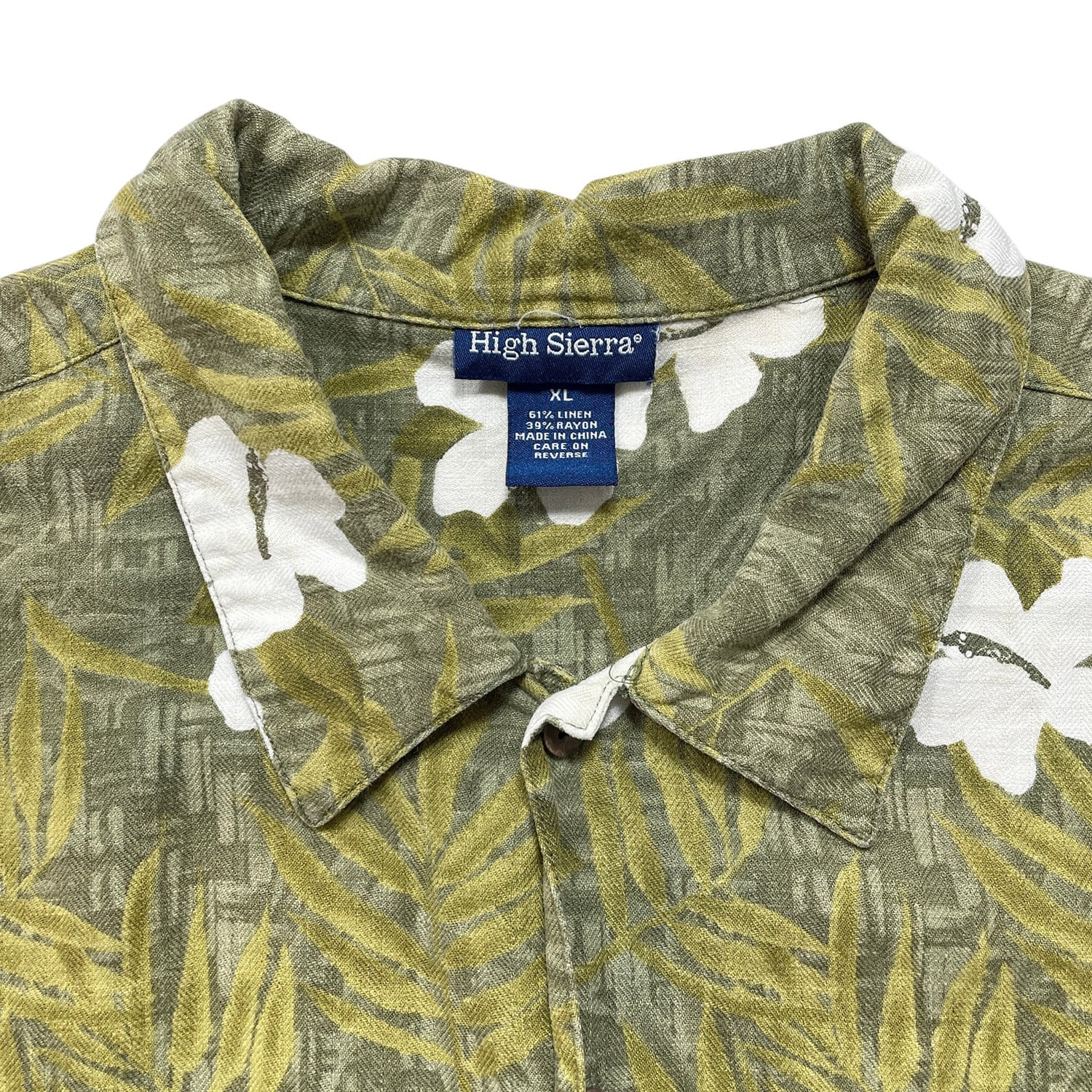 USA 古着 High Sierra ハイシエラ リネン レーヨン アロハシャツ ハワイアンシャツ ハイビスカス柄 メンズXL オリーブ BF4160