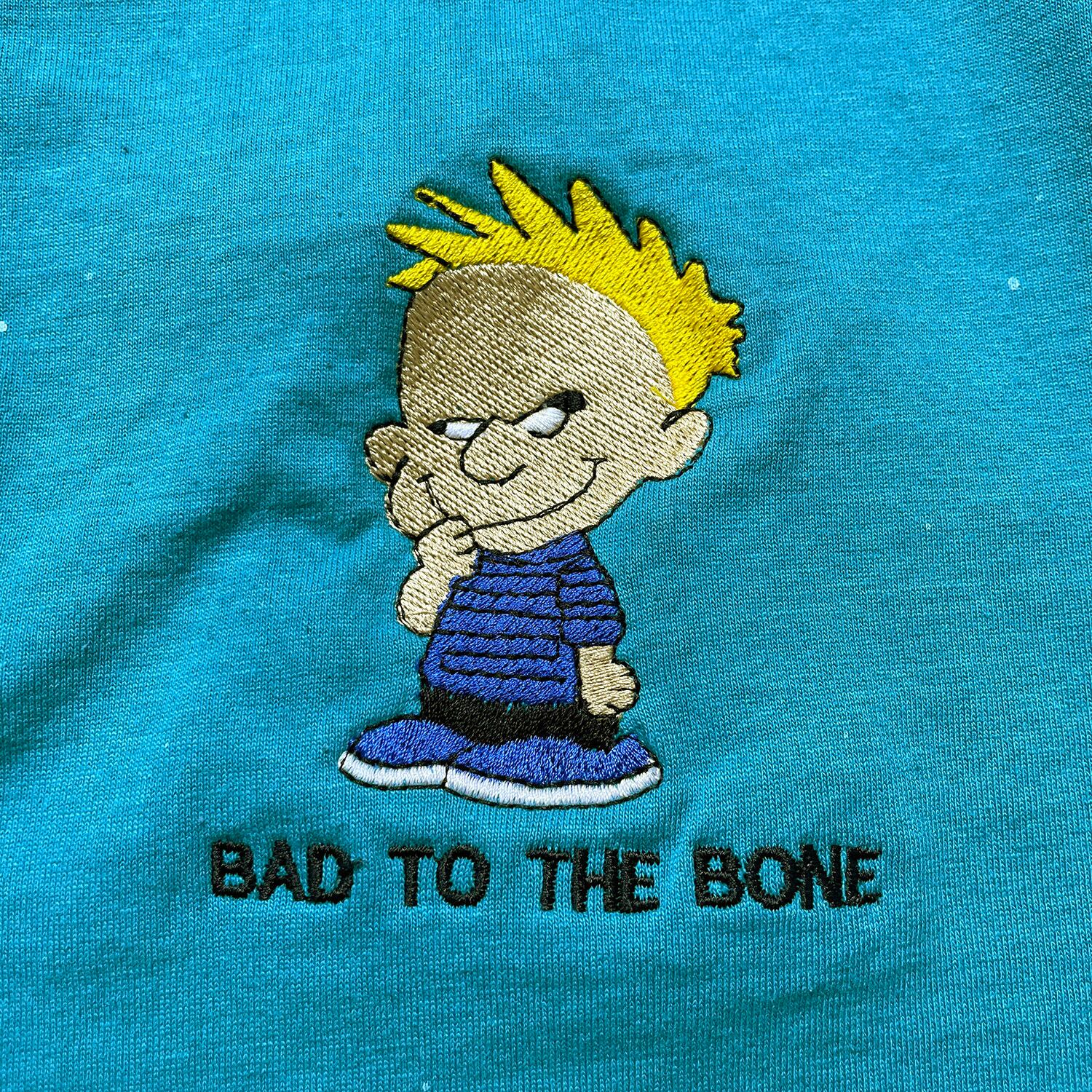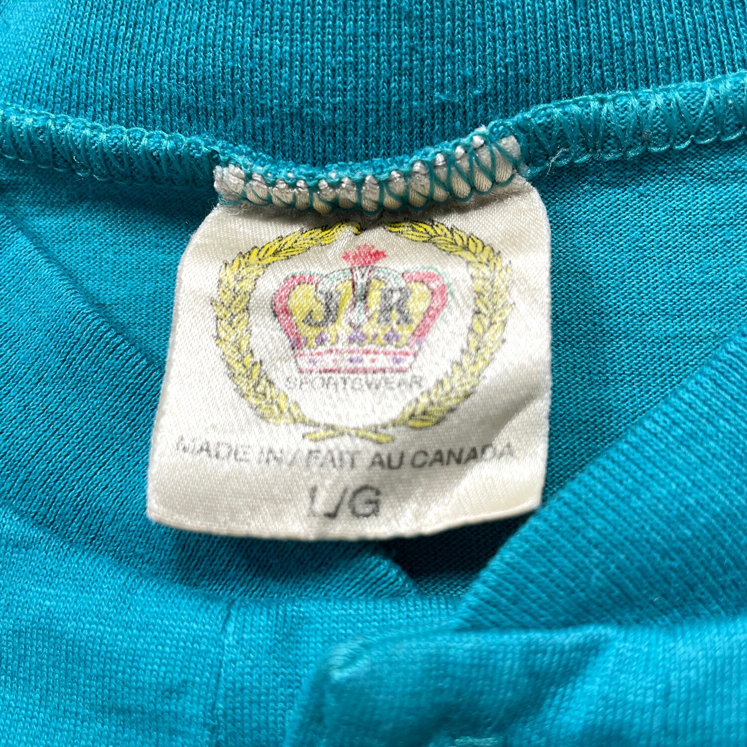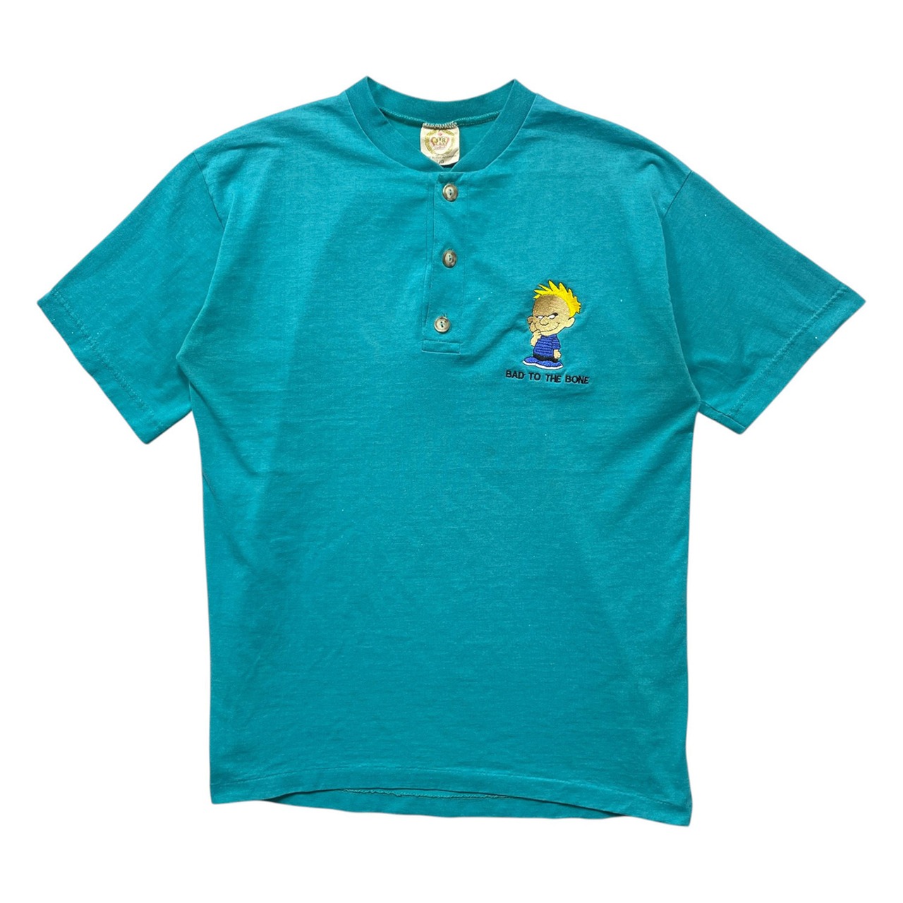 古着 カナダ製 Calvin&Hobbes カルビンとホッブス ヘンリーネック ヴィンテージ Tシャツ 刺繍 メンズL グリーン シングルステッチ BA5017