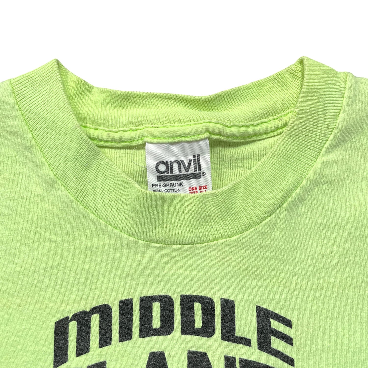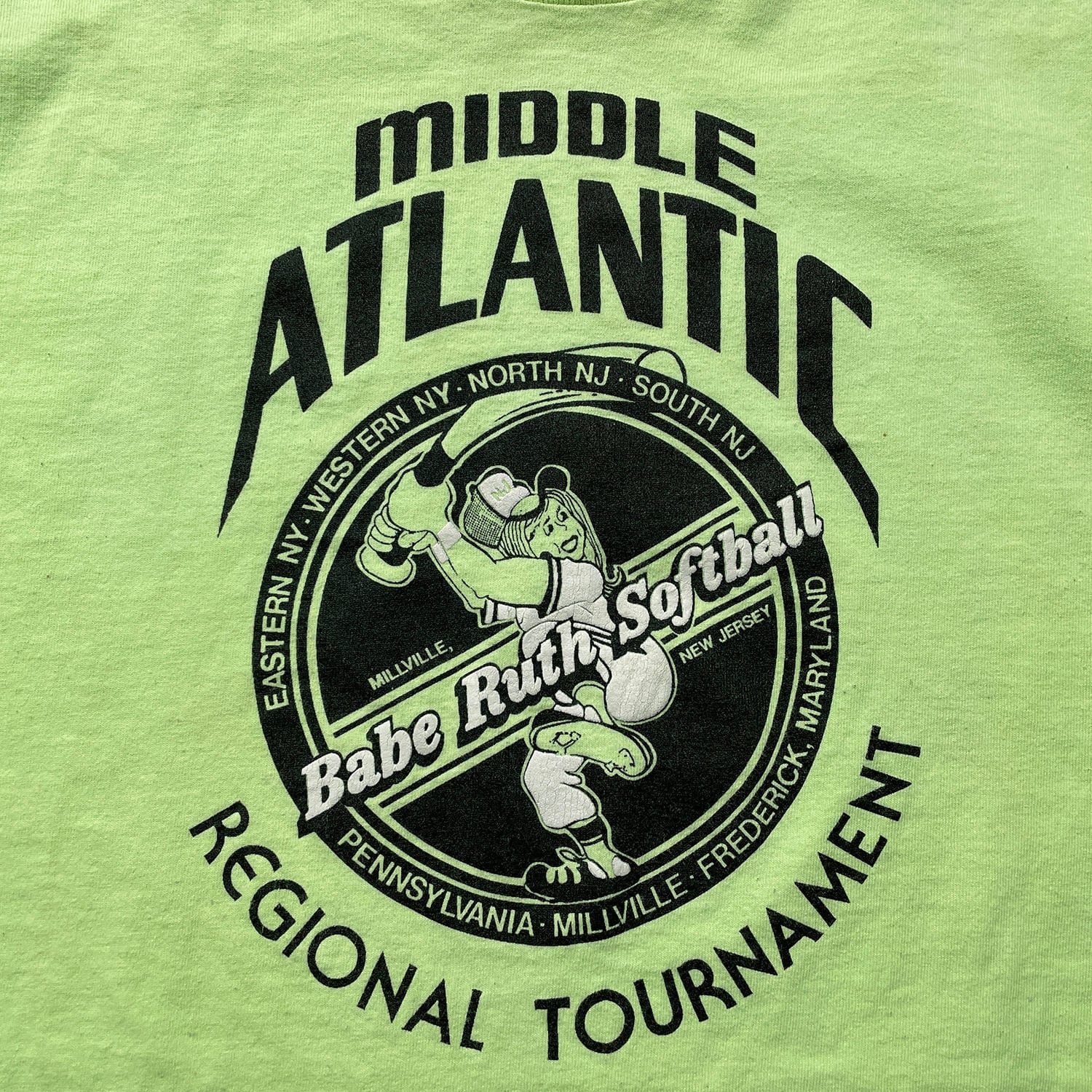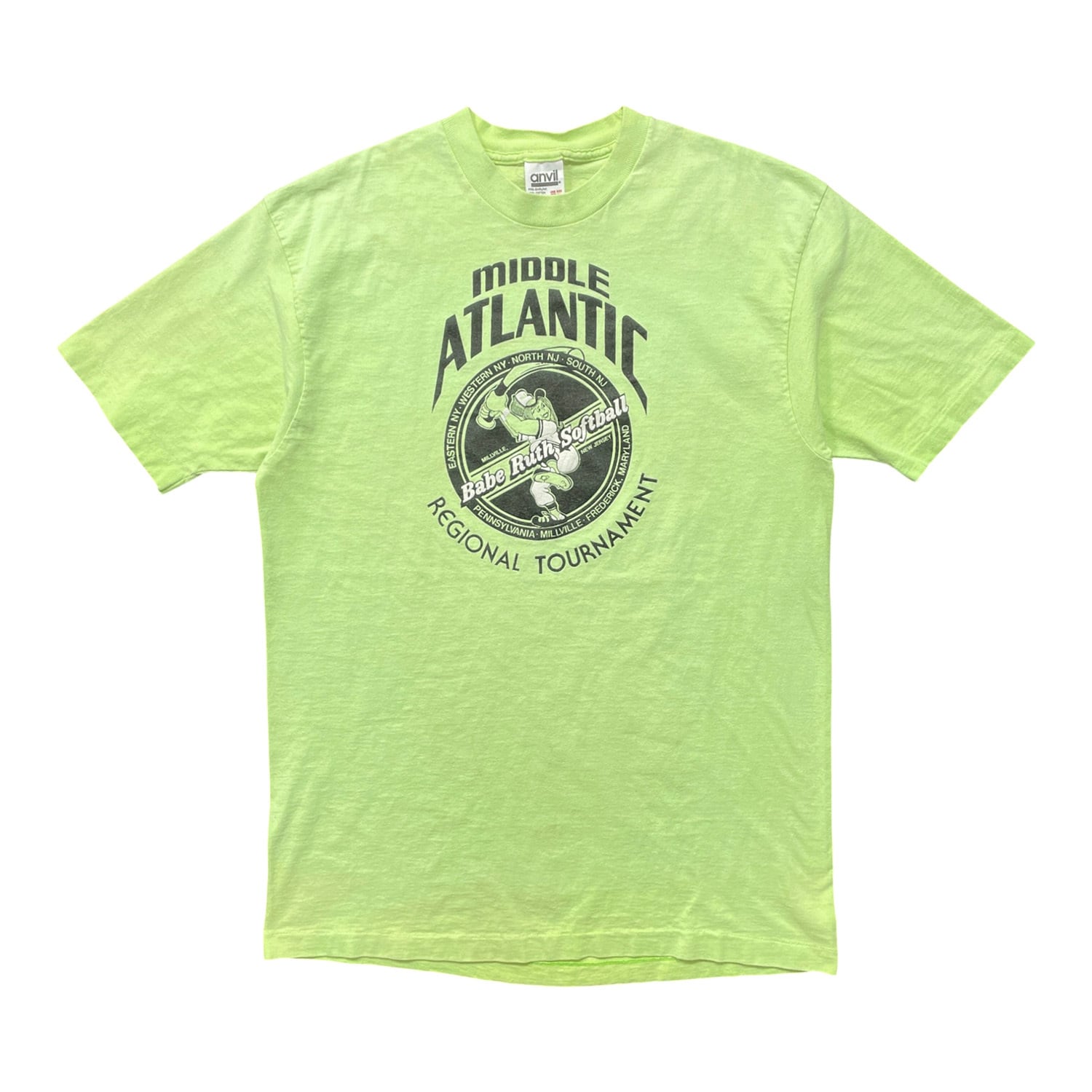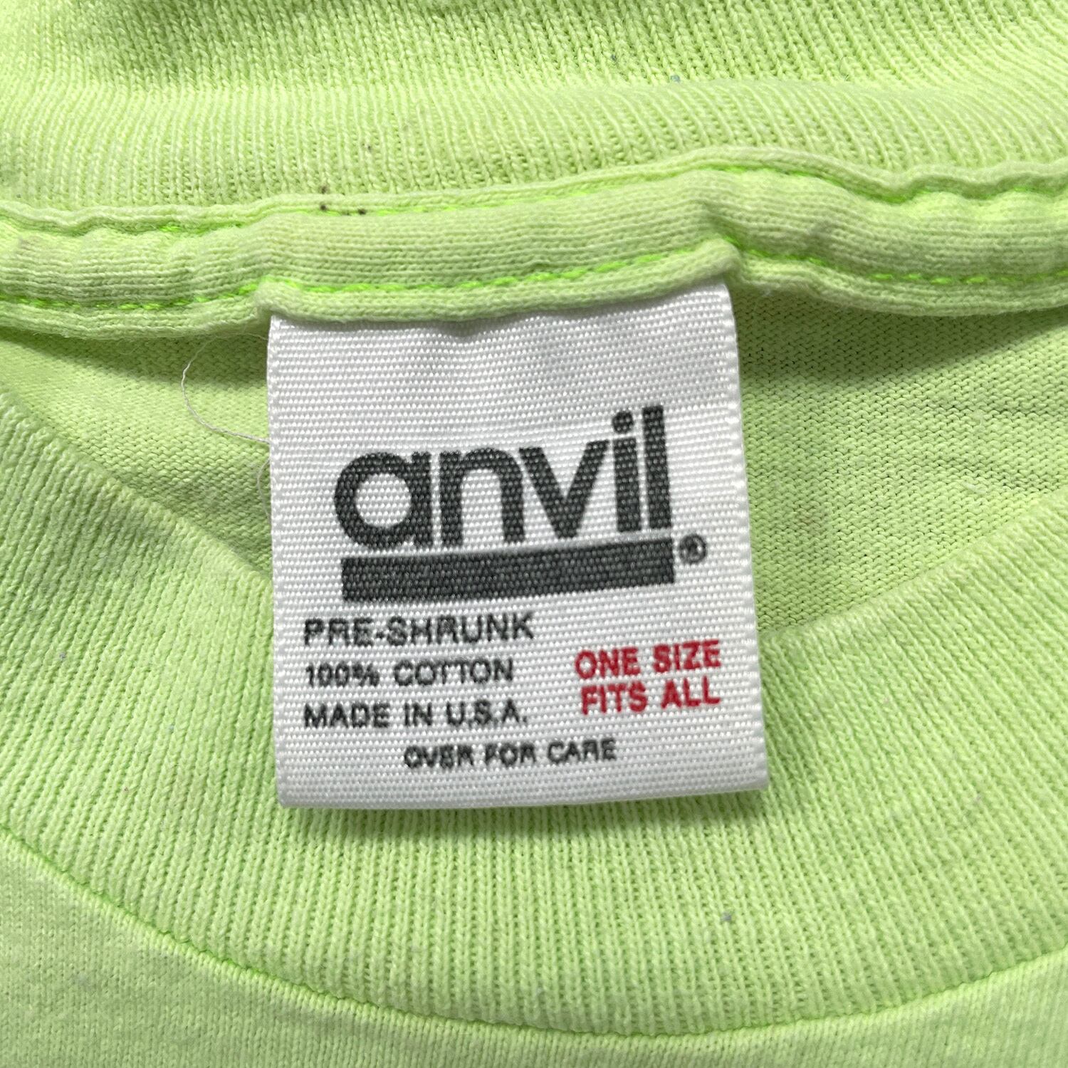 古着 USA製 90S anvil アンビル ベーブルース ソフトボール クルーネック ヴィンテージ Tシャツ プリント ワンサイズ 黄緑 BA5020