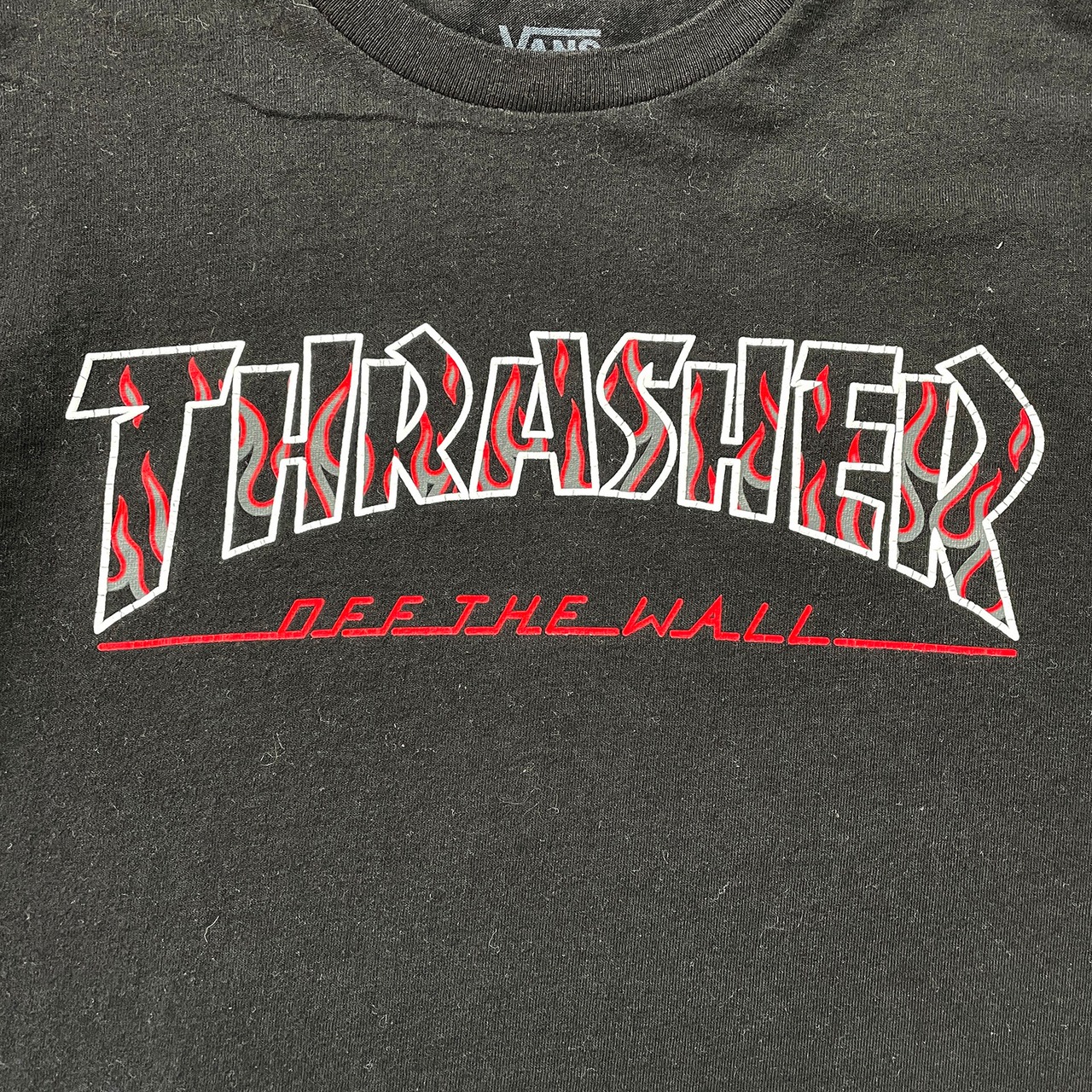 USA 古着 VANS バンズ ヴァンズ THRASHER スラッシャー コラボ クルーネック Tシャツ プリント メンズM ブラック BA5033