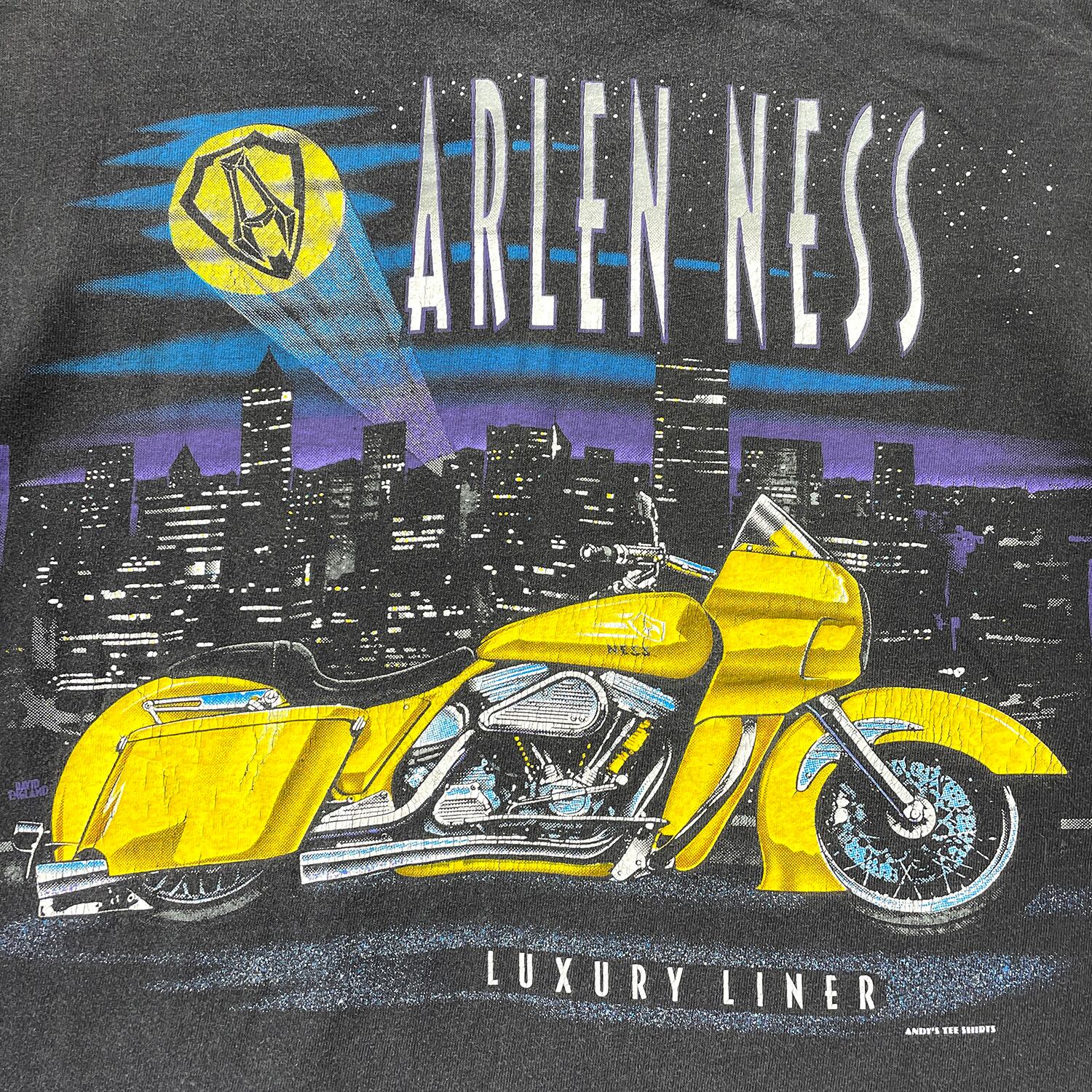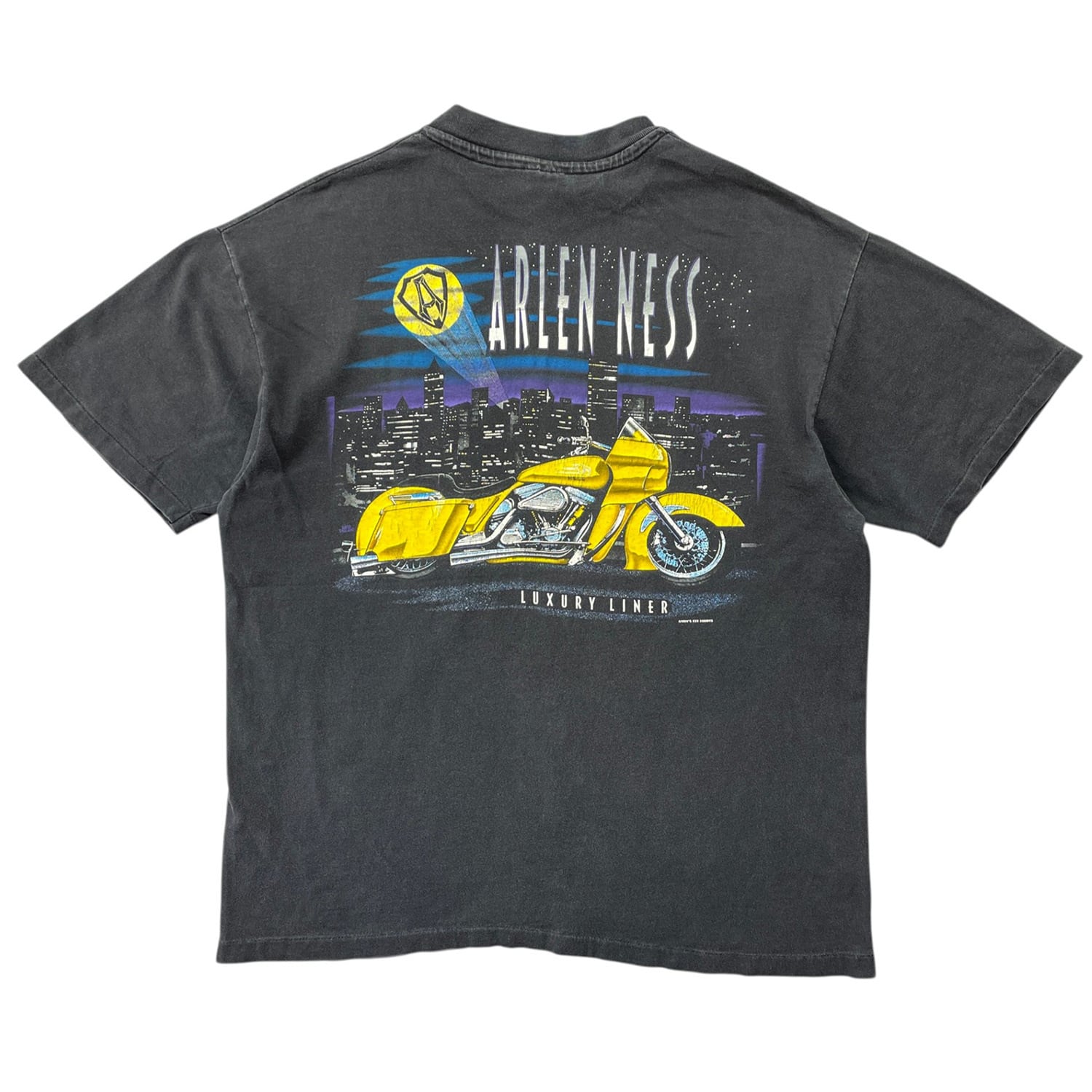 古着 USA製 90S Hanes ARLEN NESS アレンネス ヴィンテージ Tシャツ カスタムバイク プリント メンズL ブラック シングルステッチ BA5036
