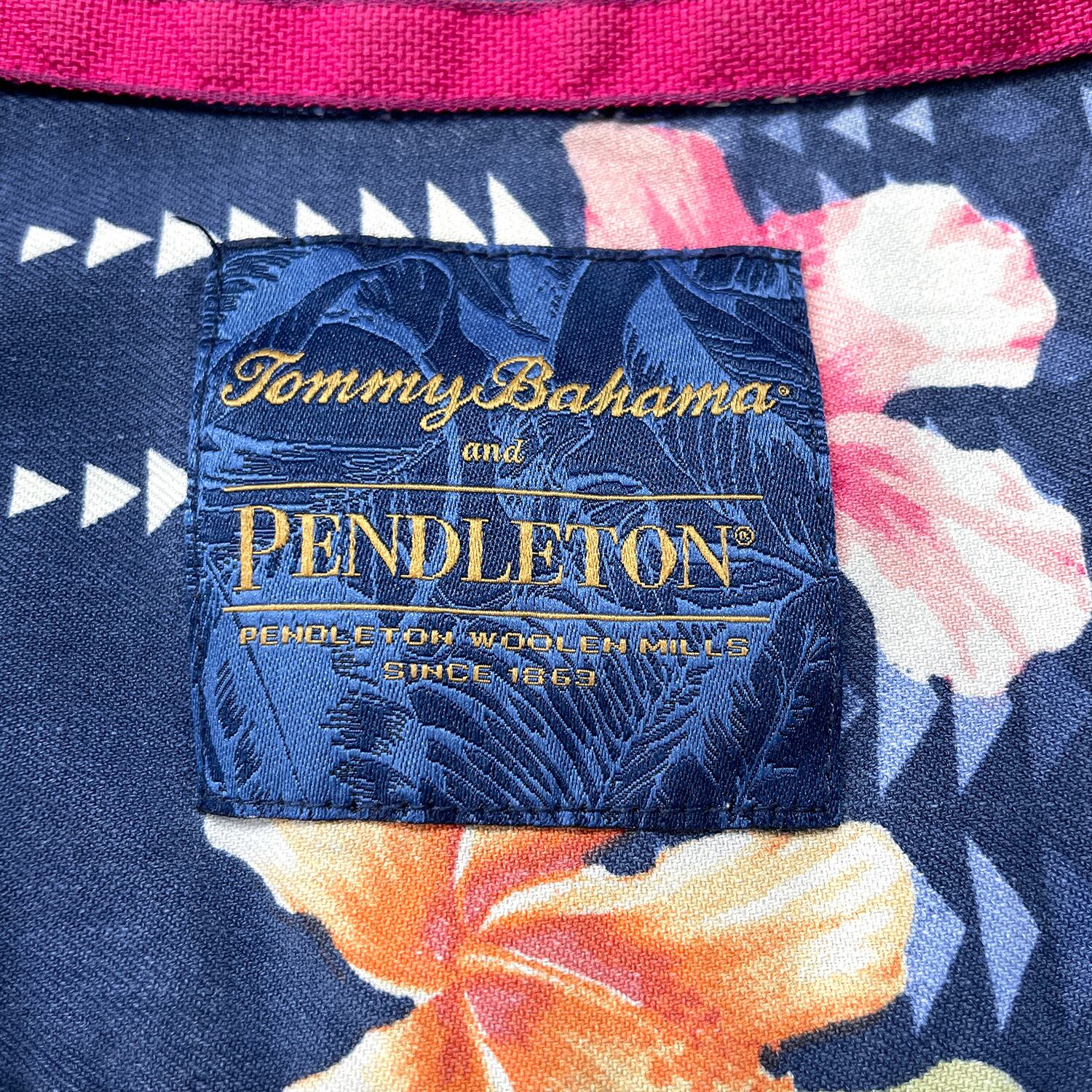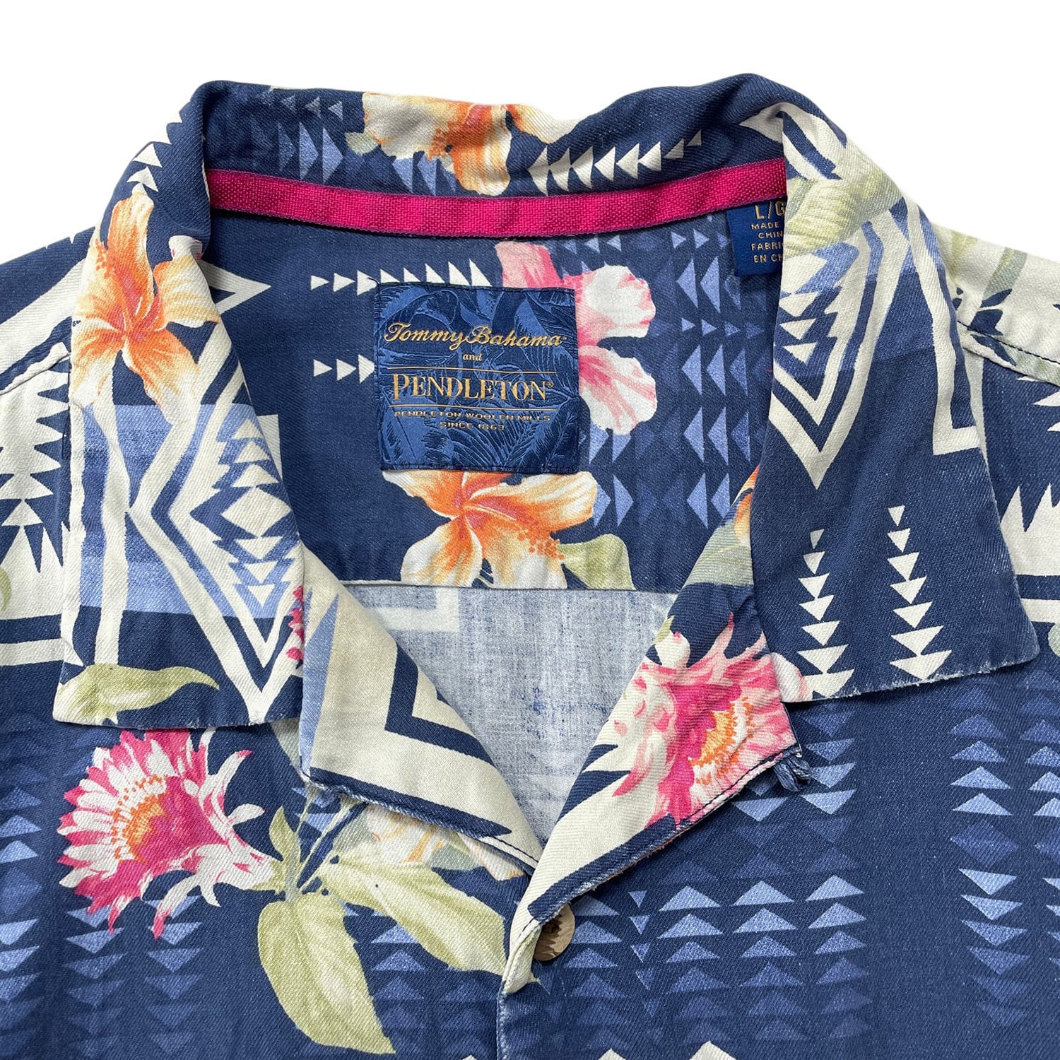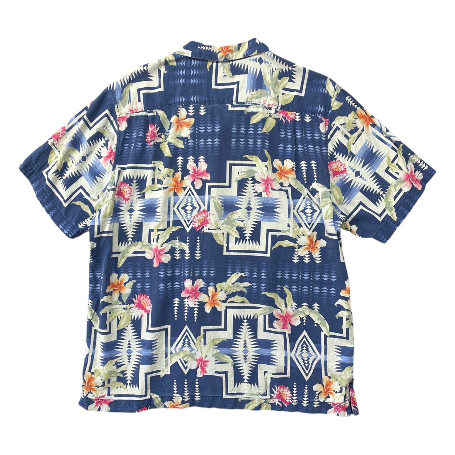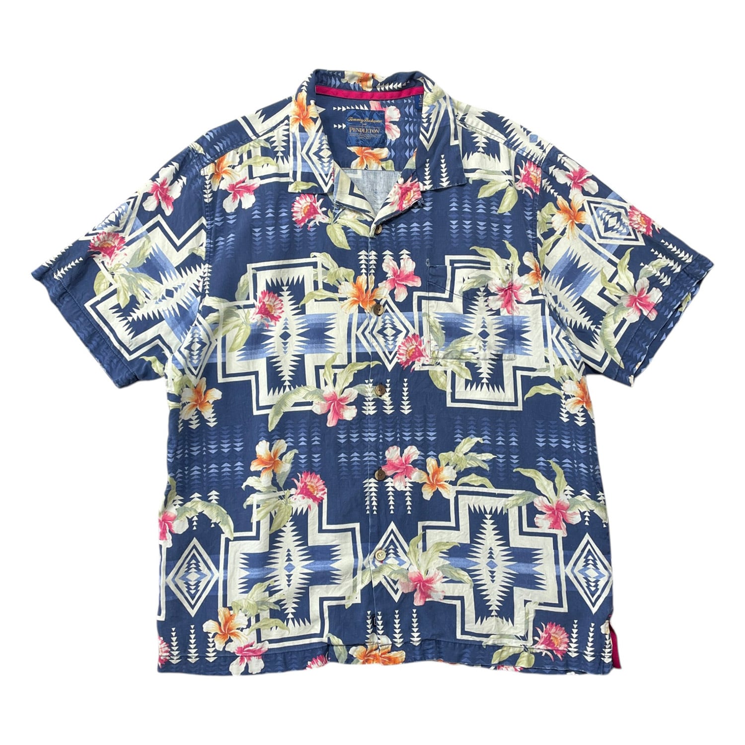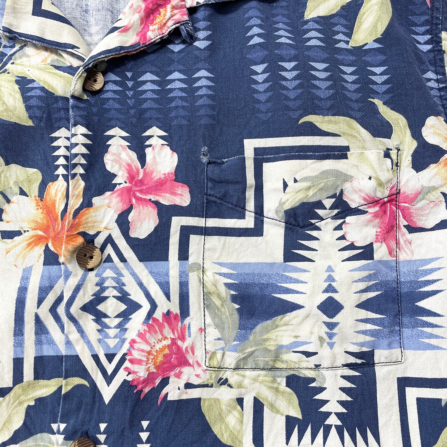 USA 古着 Tommy Bahama トミーバハマ PENDLETON ペンドルトン シルク 開襟 アロハシャツ ハワイアンシャツ ハイビスカス ネイティブ柄 メンズ L ネイビー BF4168