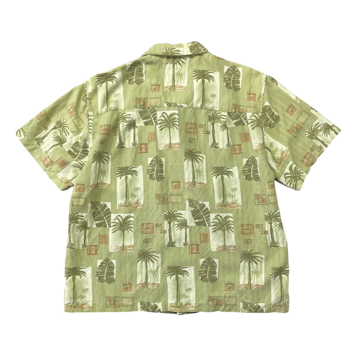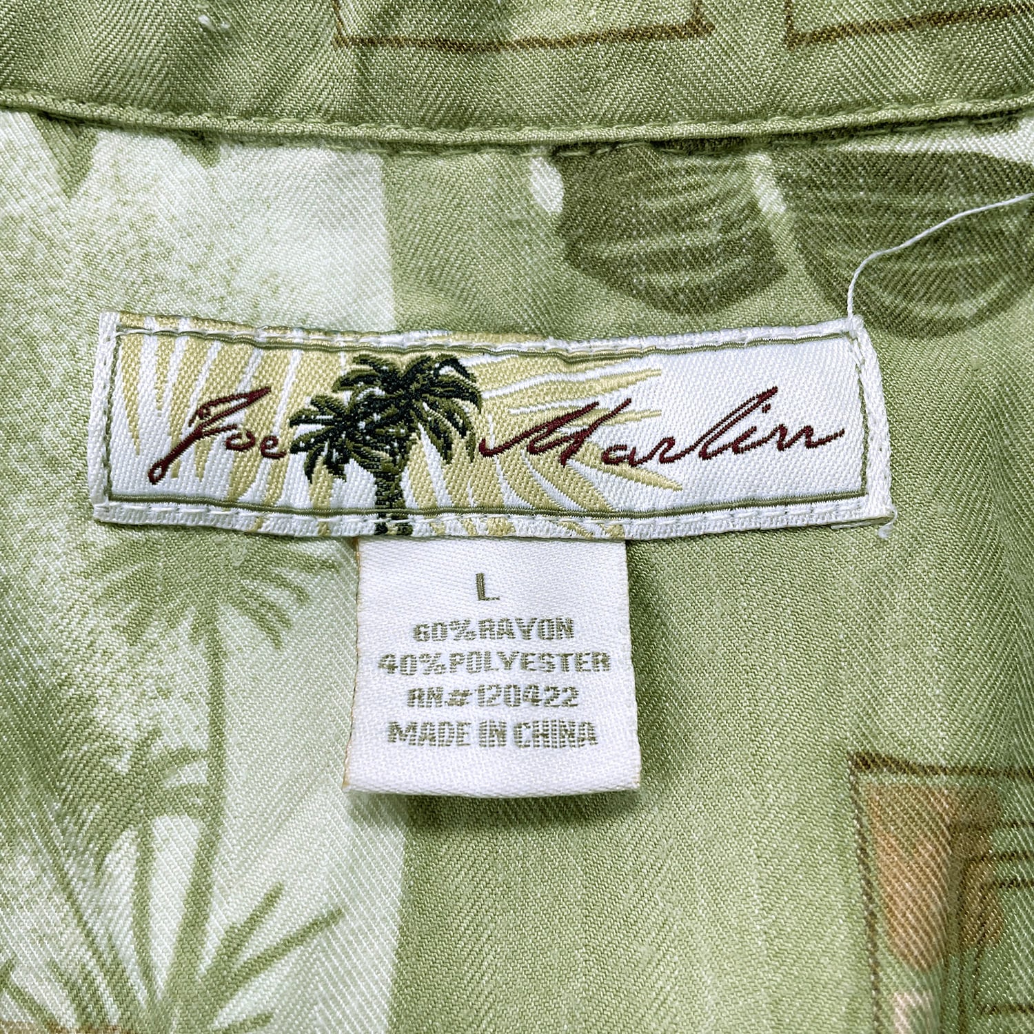 USA 古着 Joe Marlin ジョーマーリン レーヨン/ポリ 開襟 アロハシャツ ハワイアンシャツ パームツリー柄 メンズL ライトグリーン BF4171
