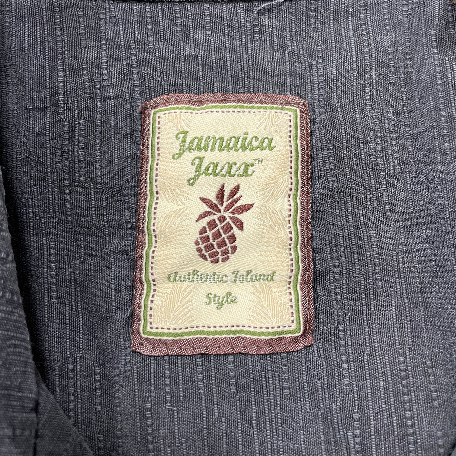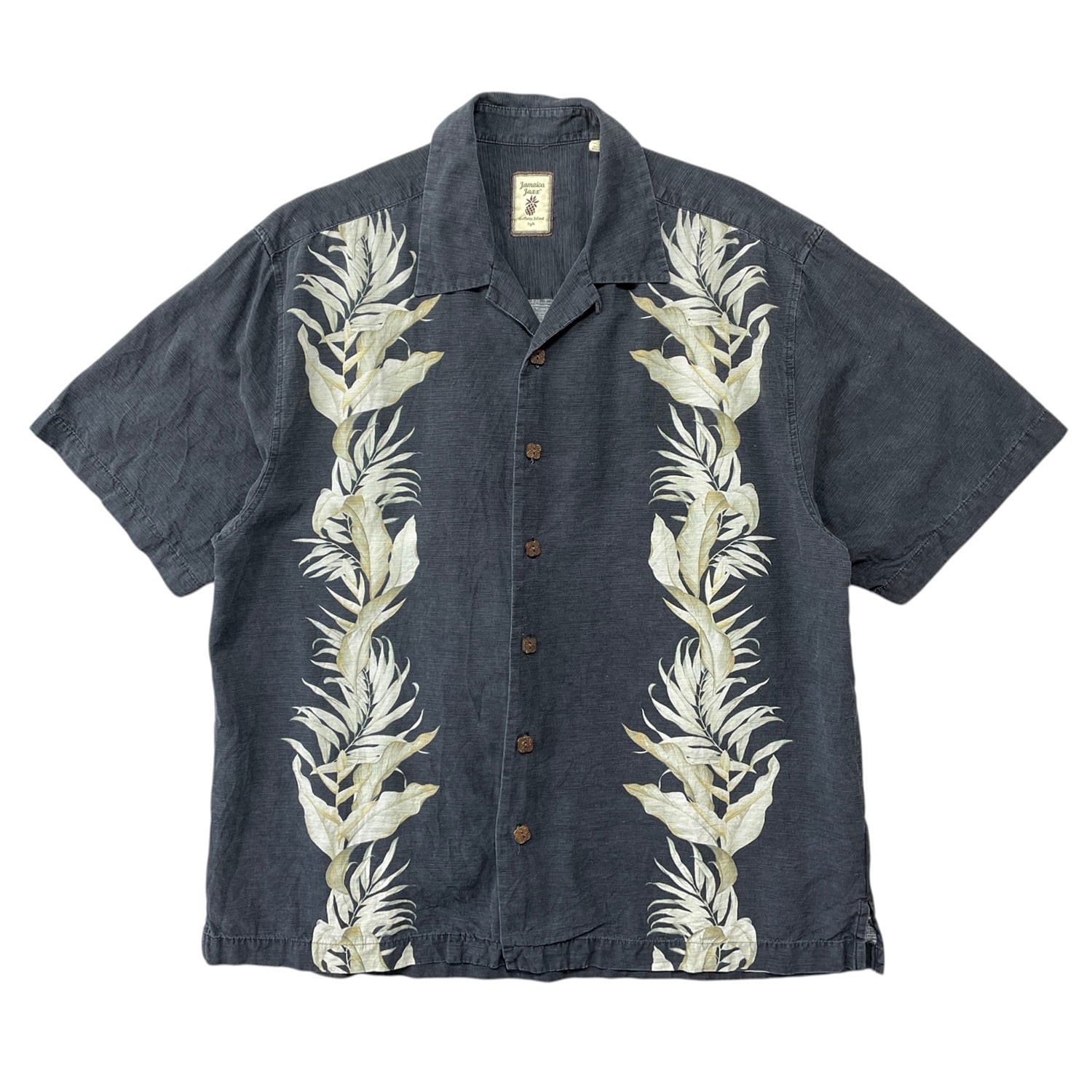 USA 古着 Jamaica Jaxx ジャマイカジャックス シルク 開襟 アロハシャツ ハワイアンシャツ ボタニカル 縦柄 リーフ柄 メンズL ブラック BF4177