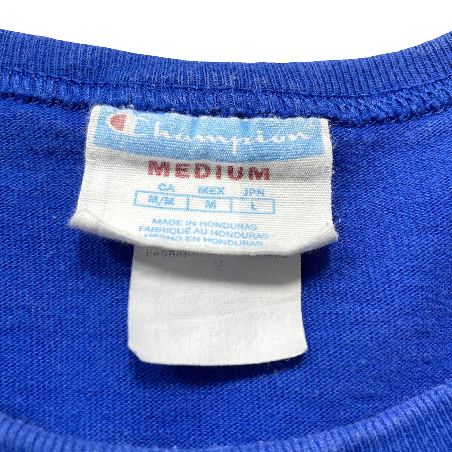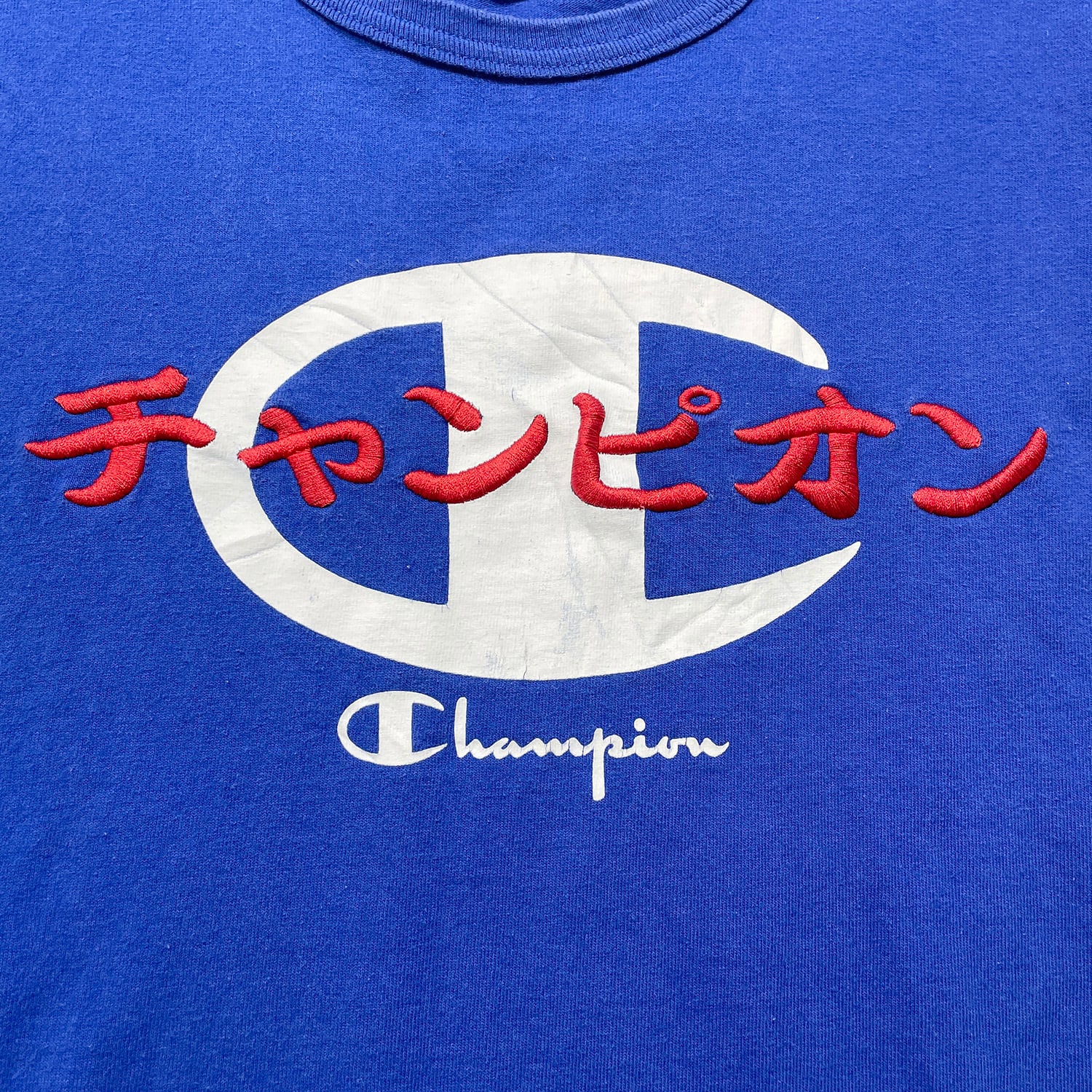 USA 古着 Champion チャンピオン カタカナロゴ クルーネック Tシャツ 刺繍 プリント メンズM ブルー BA5141