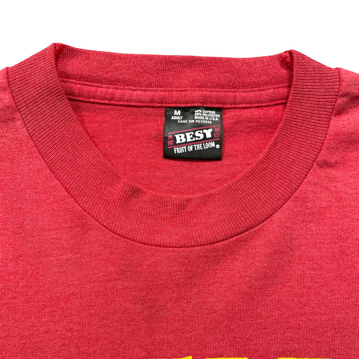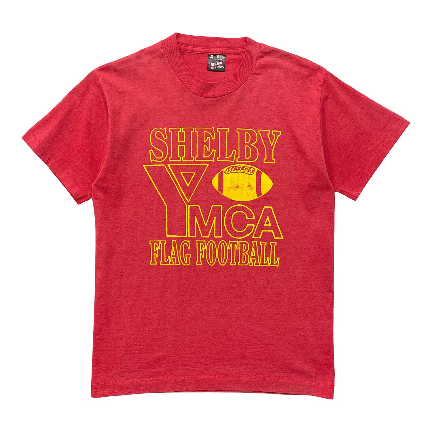 古着 USA製 90S フルーツオブザルーム YMCA フラッグフットボール ヴィンテージ Tシャツ プリント メンズM レッド シングルステッチ BA5144