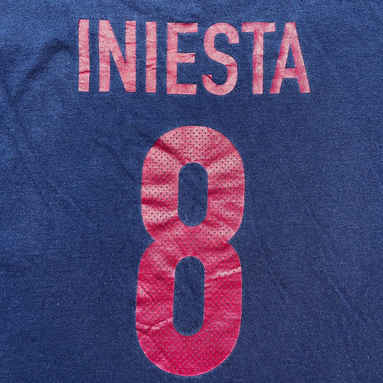 USA 古着 NIKE ナイキ FCバルセロナ アンドレス イニエスタ Tシャツ プリント メンズL ネイビー サッカー BA5150
