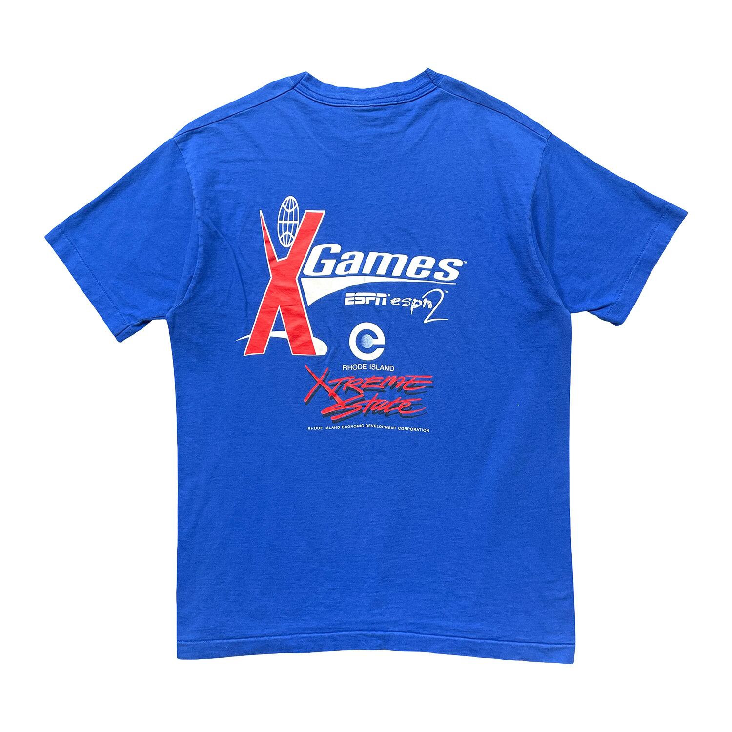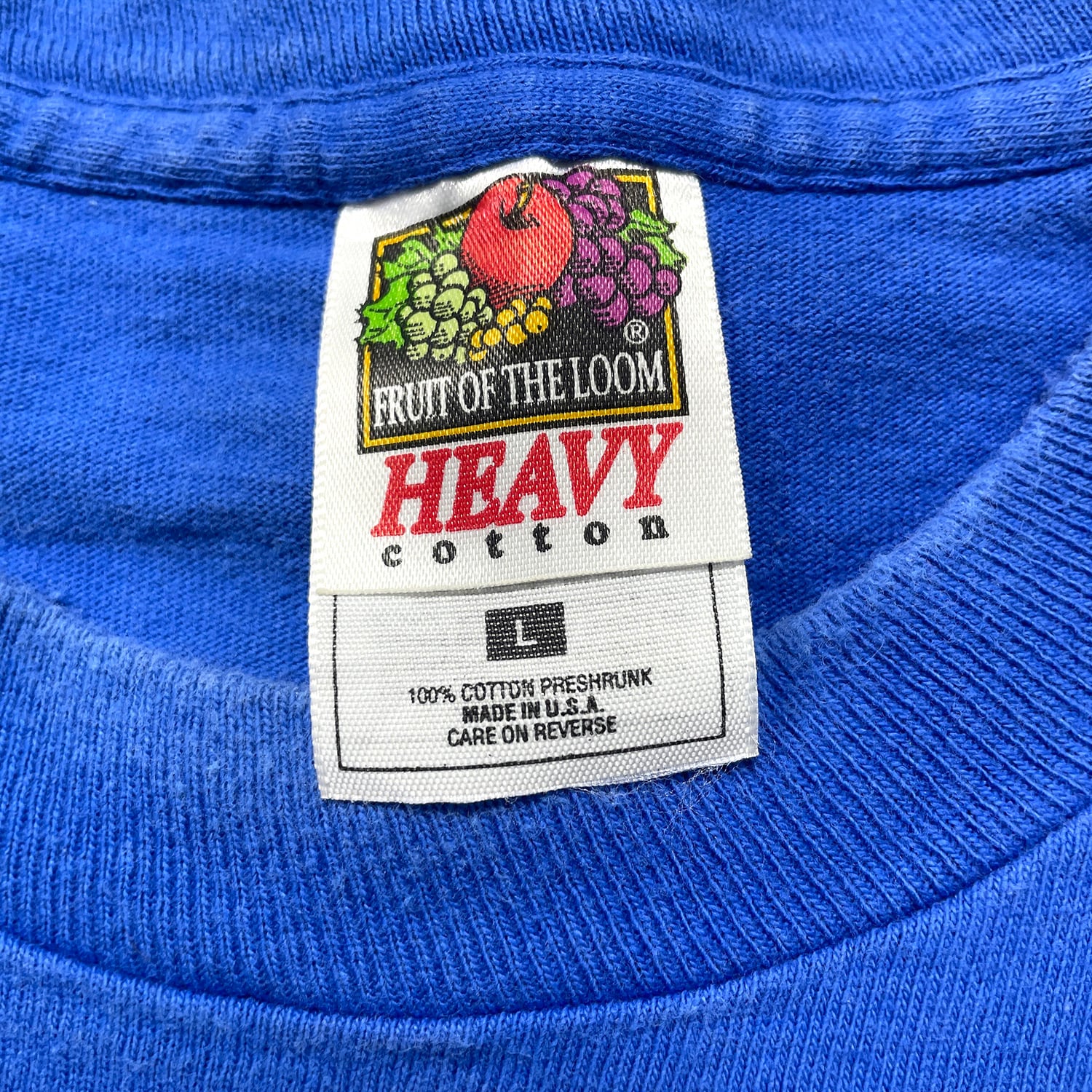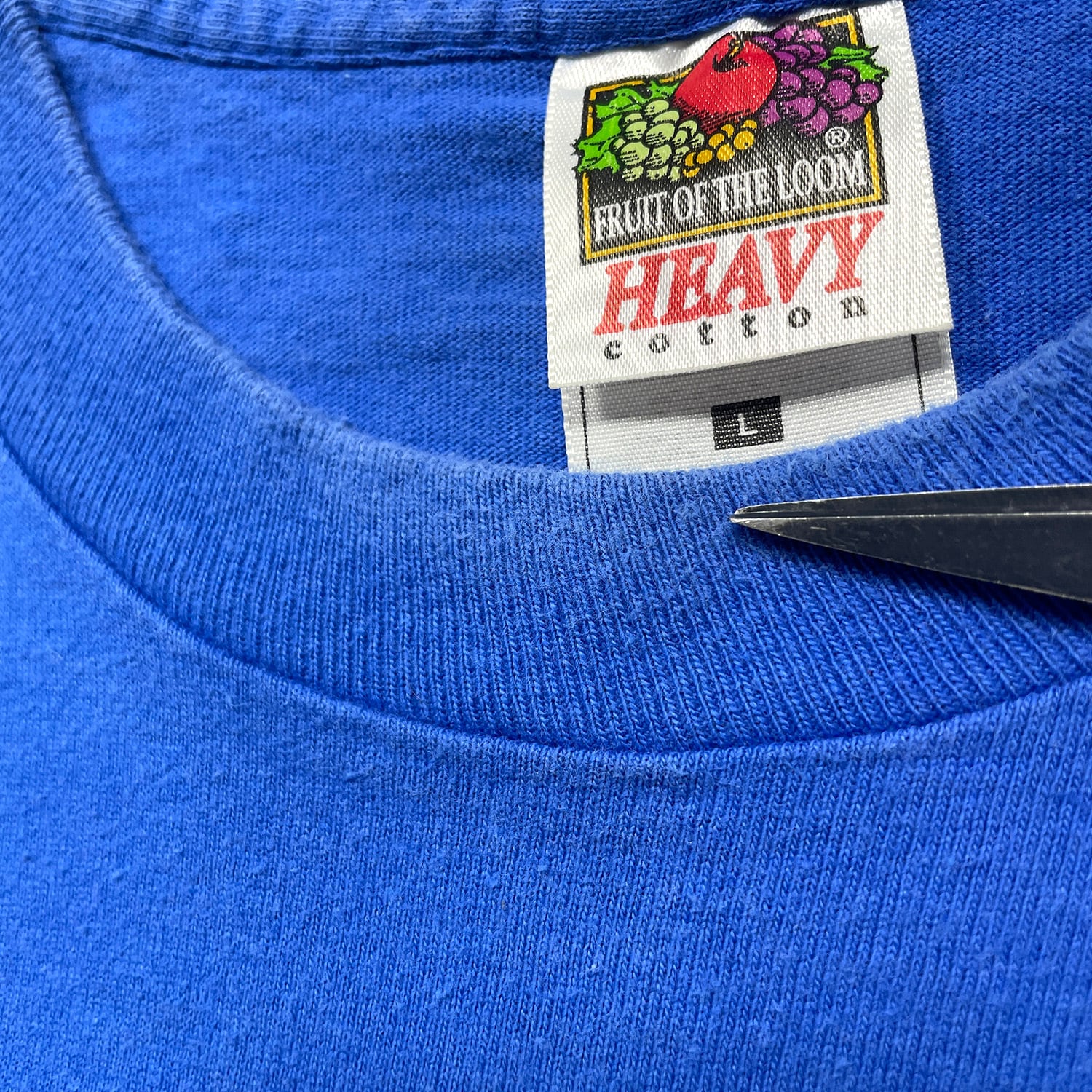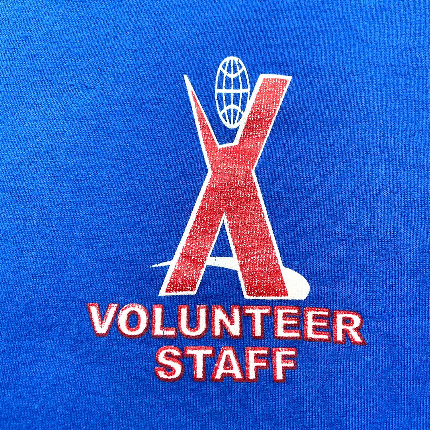 古着 USA製 FRUIT OF THE LOOM フルーツオブザルーム VOLUNTEER STAFF クルーネック Tシャツ プリント メンズL ブルー BA5151