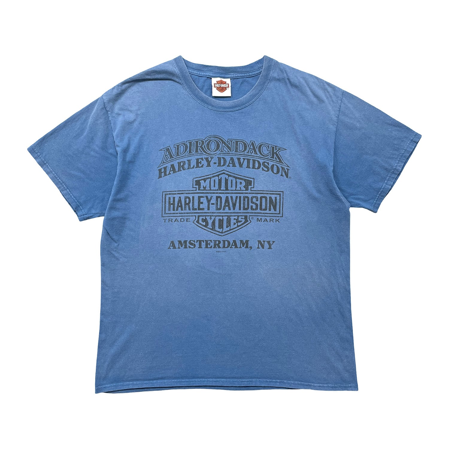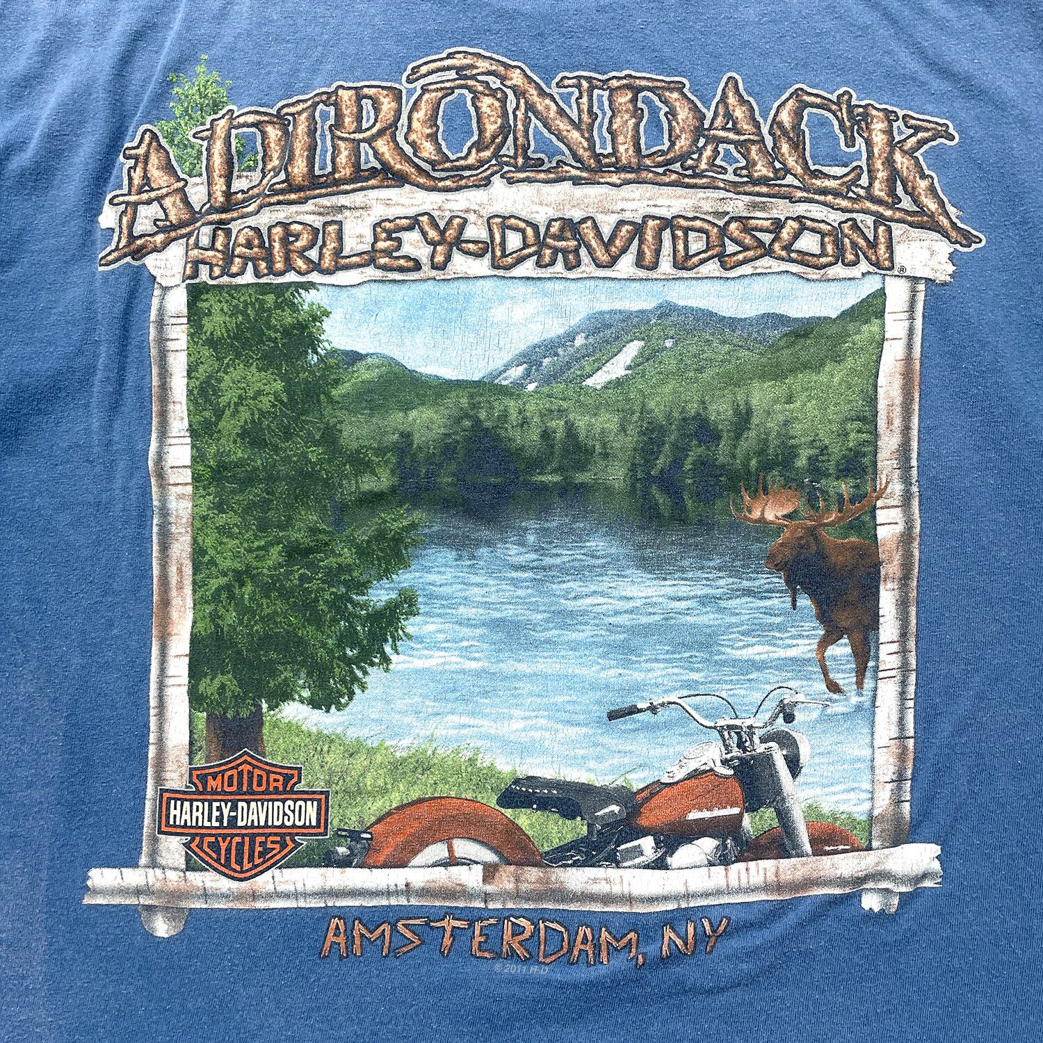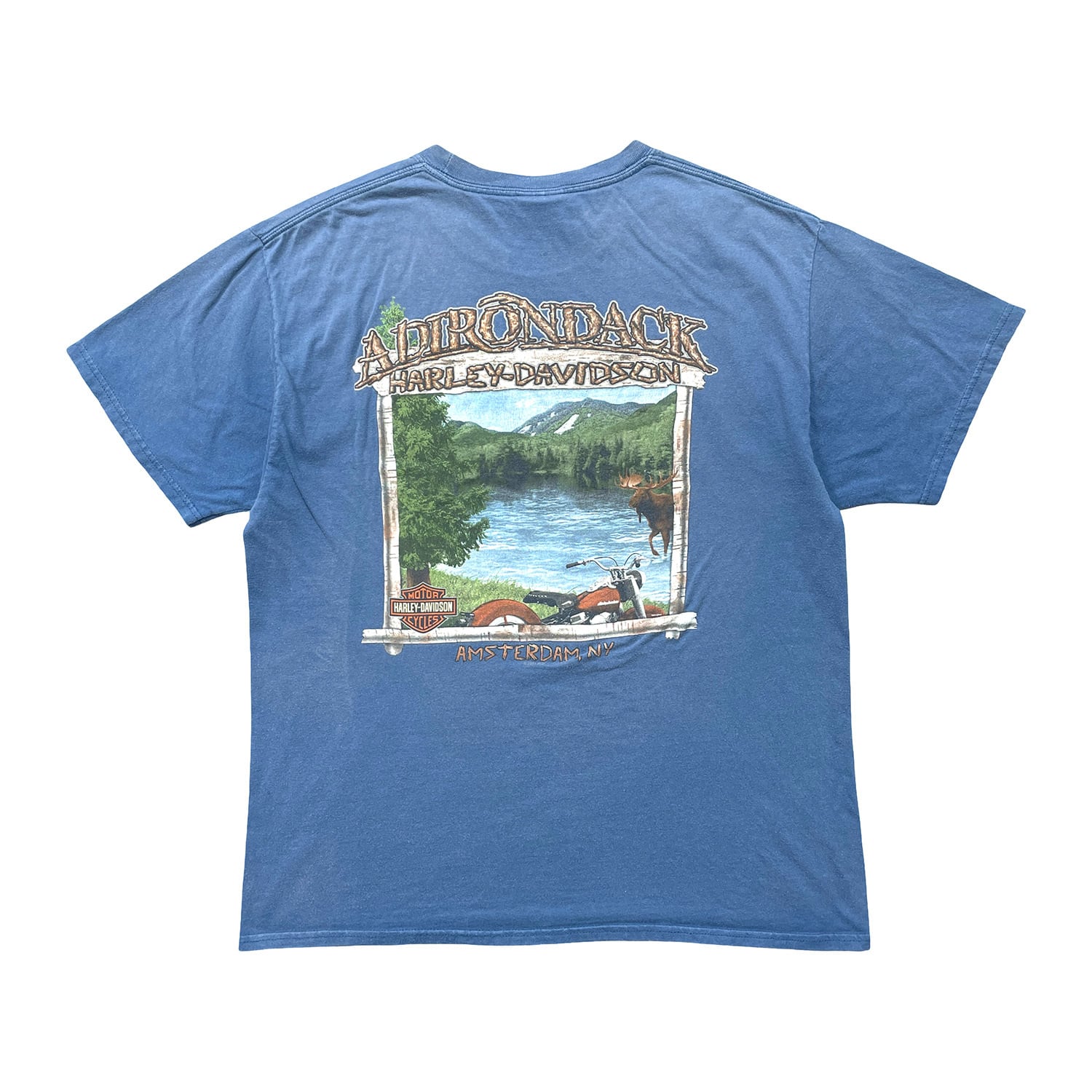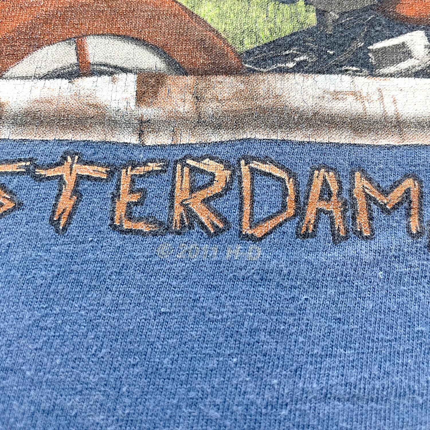 USA 古着 HARLEY-DAVIDSON ハーレーダビッドソン アムステルダム クルーネック Tシャツ バイク プリント メンズL ネイビー BA5153