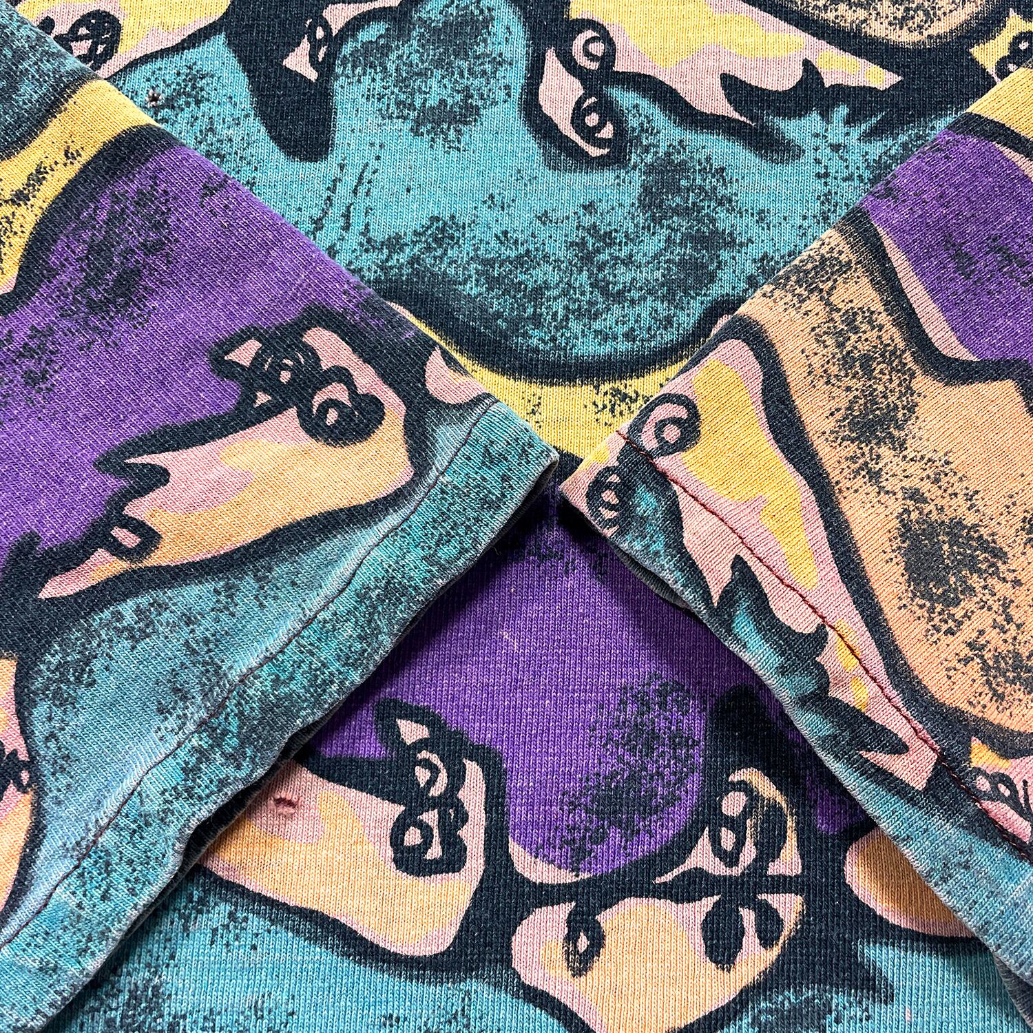 古着 USA製 90S 総柄 ヴィンテージ Tシャツ プリント メンズL 相当 パープル イエロー BA5154