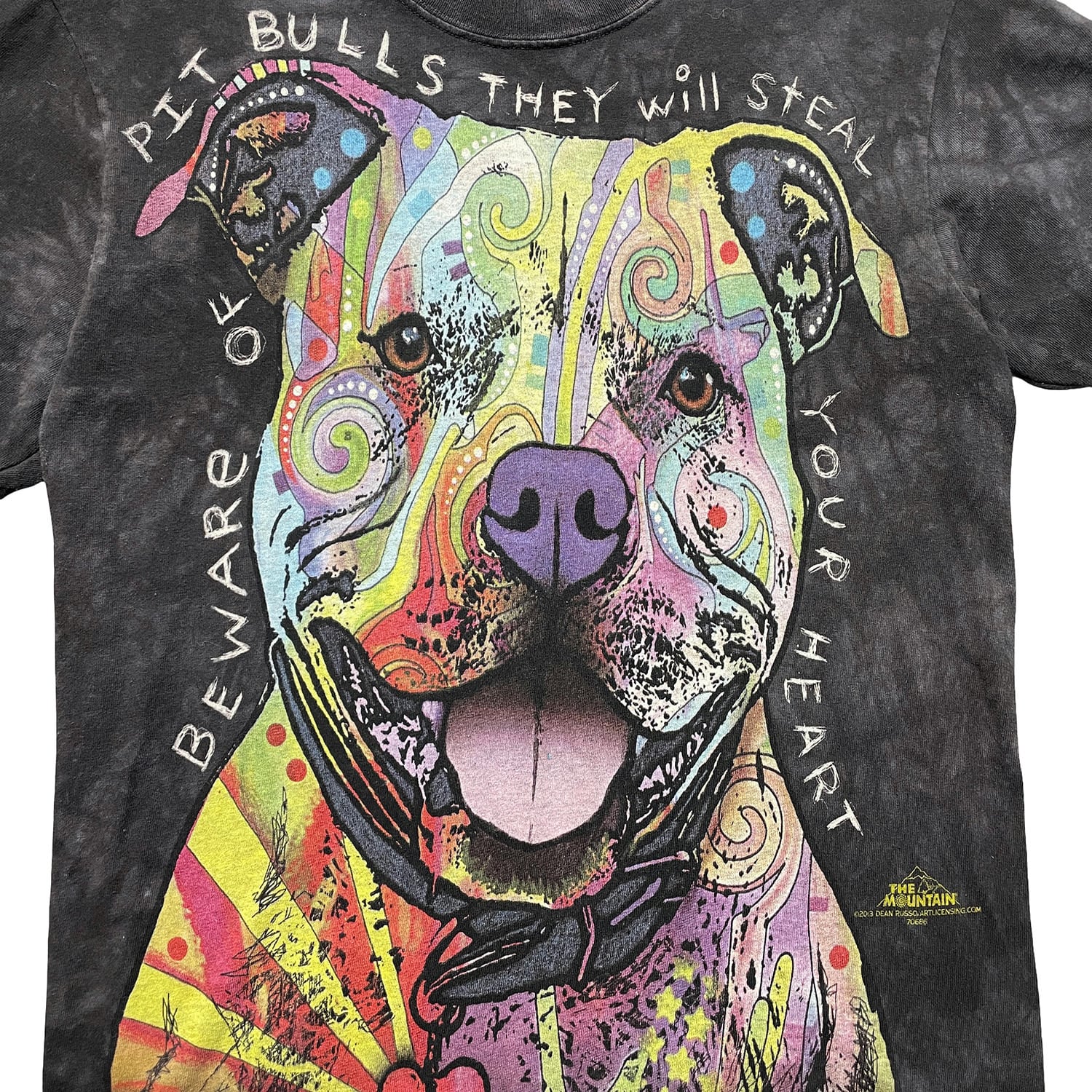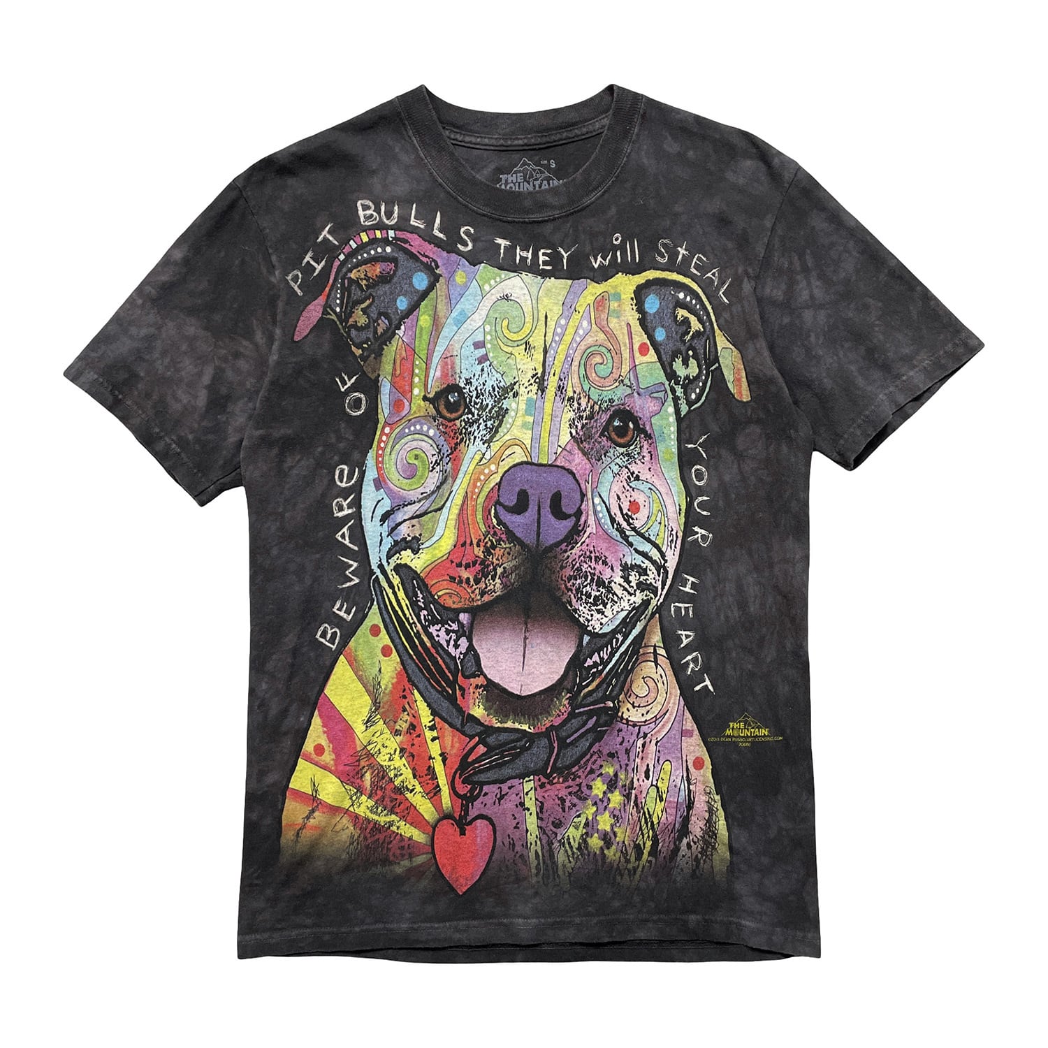 USA 古着 THE MOUNTAIN ザマウンテン サイケデリック ピットブル 犬 アニマル Tシャツ タイダイ プリント メンズS ブラック BA5161