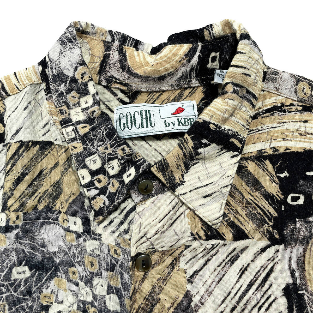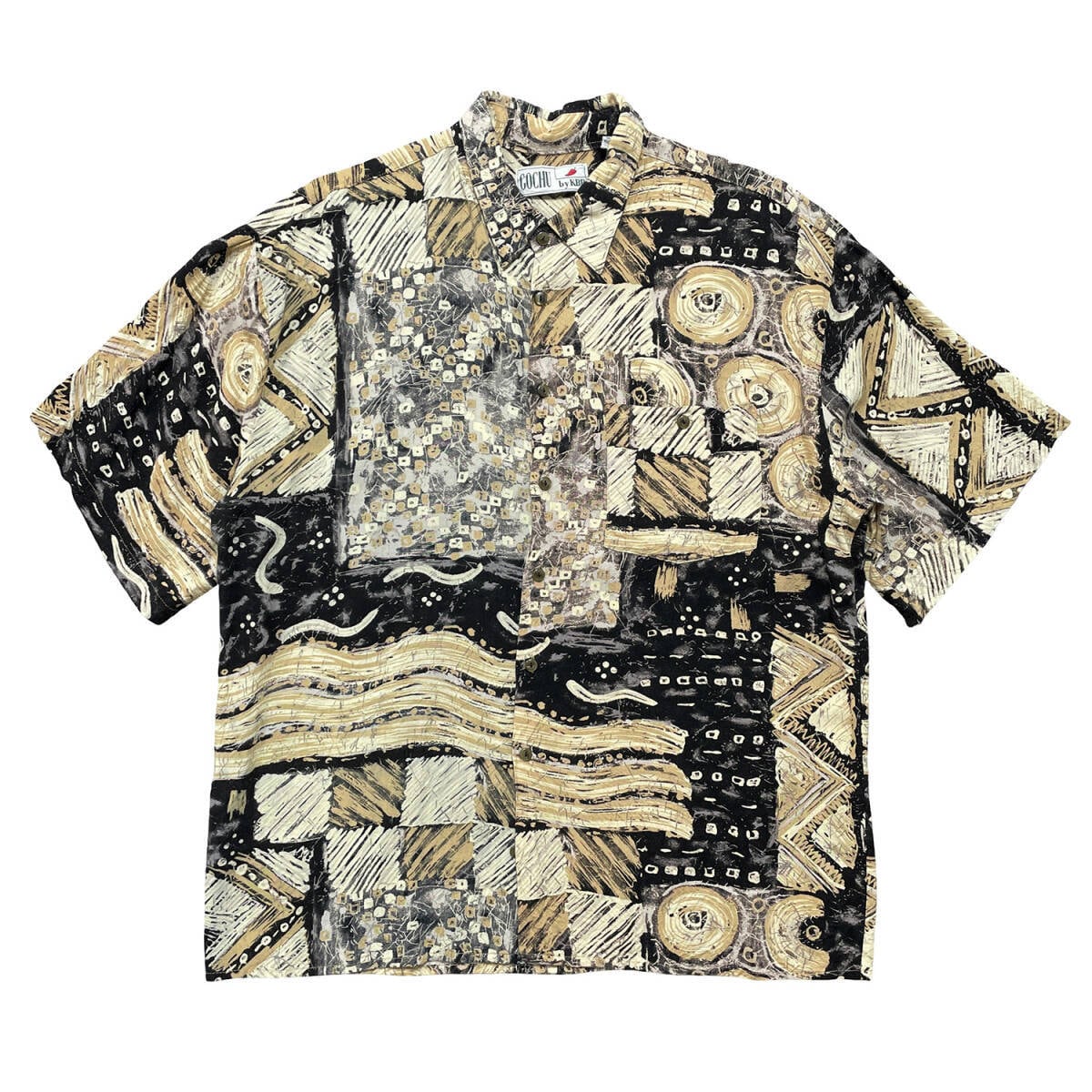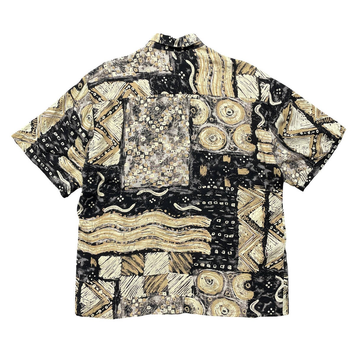 USA 古着 COCHU by KBP レーヨン 半袖シャツ 柄シャツ 幾何学 抽象柄 総柄 メンズL ブラック ベージュ BF4344