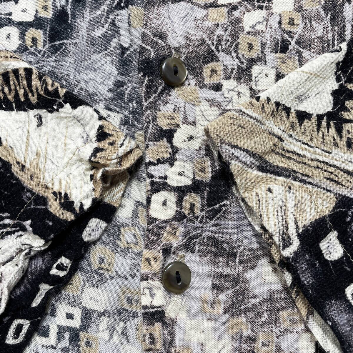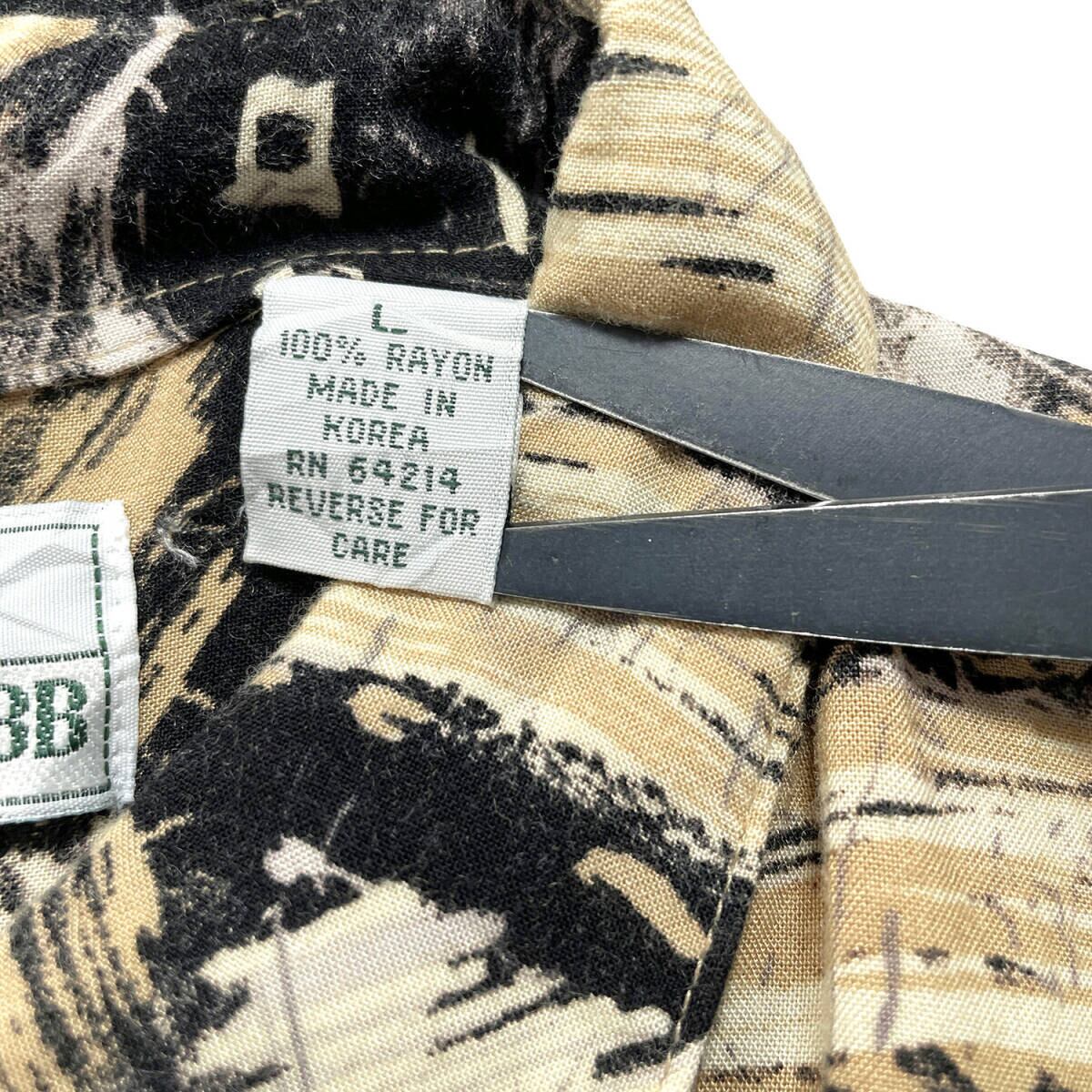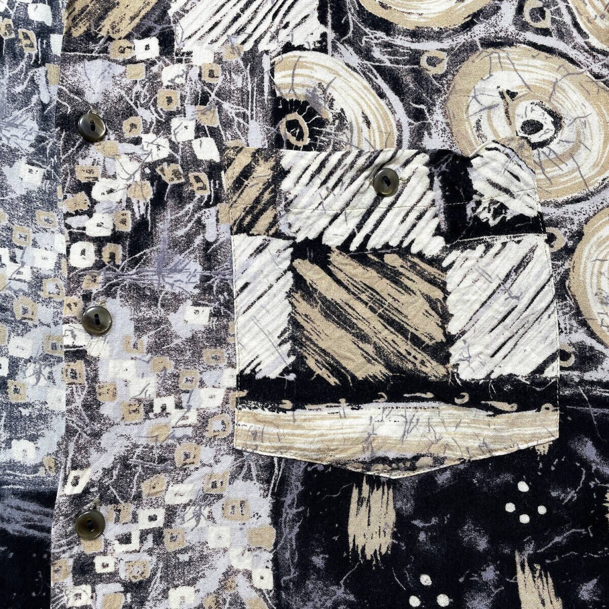 USA 古着 COCHU by KBP レーヨン 半袖シャツ 柄シャツ 幾何学 抽象柄 総柄 メンズL ブラック ベージュ BF4344