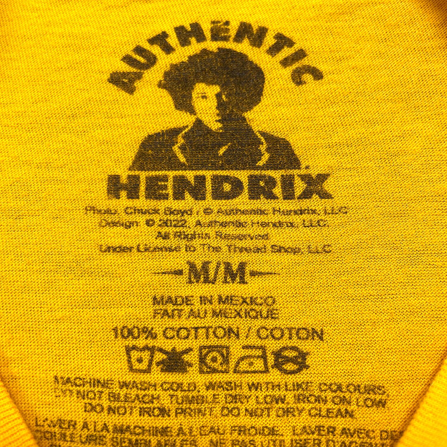 USA 古着 2022 メキシコ製 AUTHENTIC HENDRIX ジミヘンドリックス ミュージック ロックTシャツ バンドTシャツ メンズM イエロー BA5254