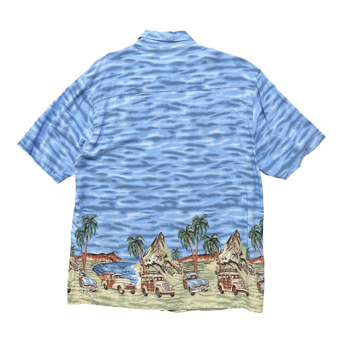 USA 古着 puritan ピューリタン 開襟 アロハシャツ ハワイアンシャツ 刺繍 パイナップル 総柄 メンズL ブルー BF4352